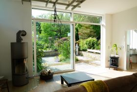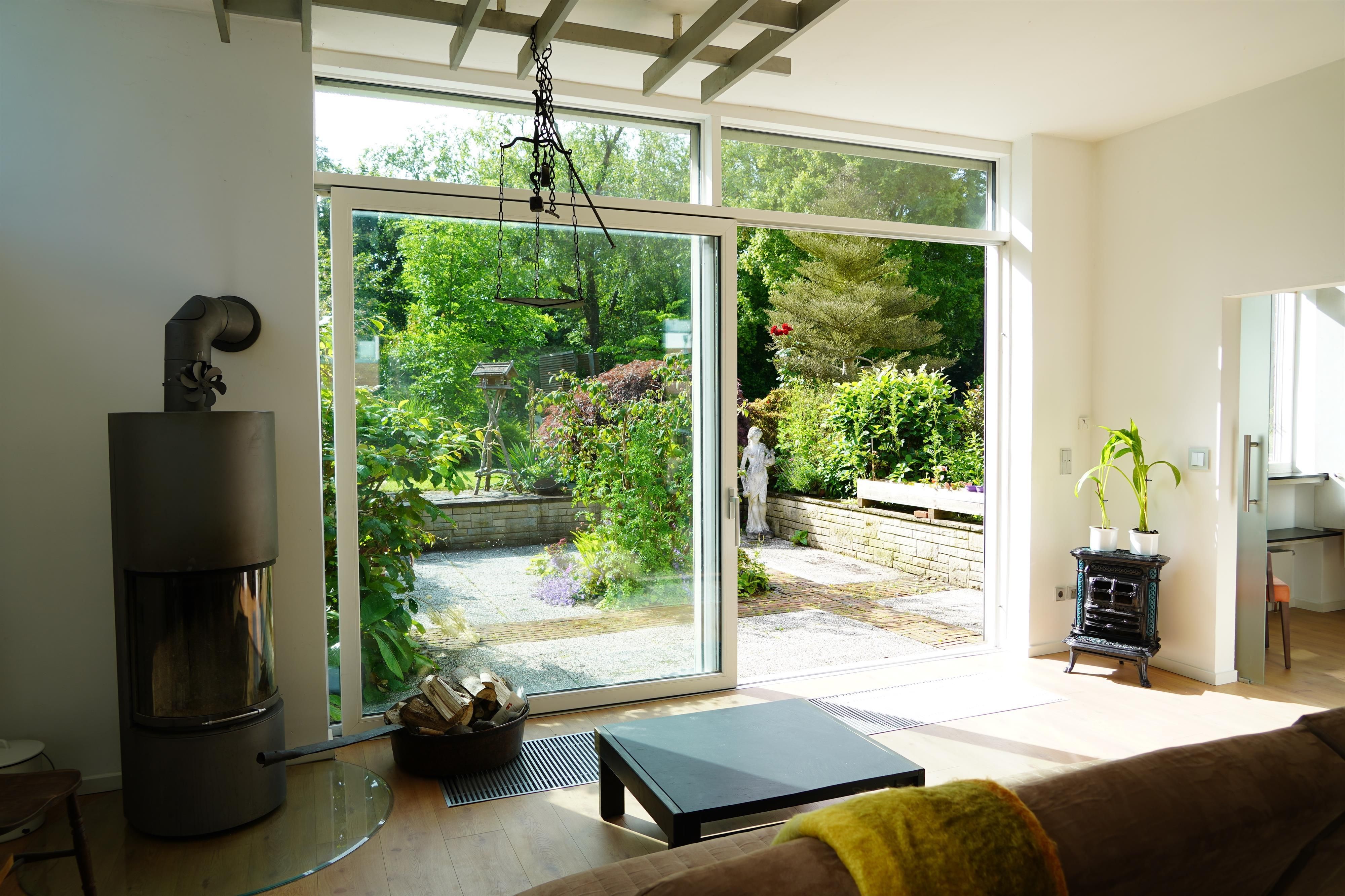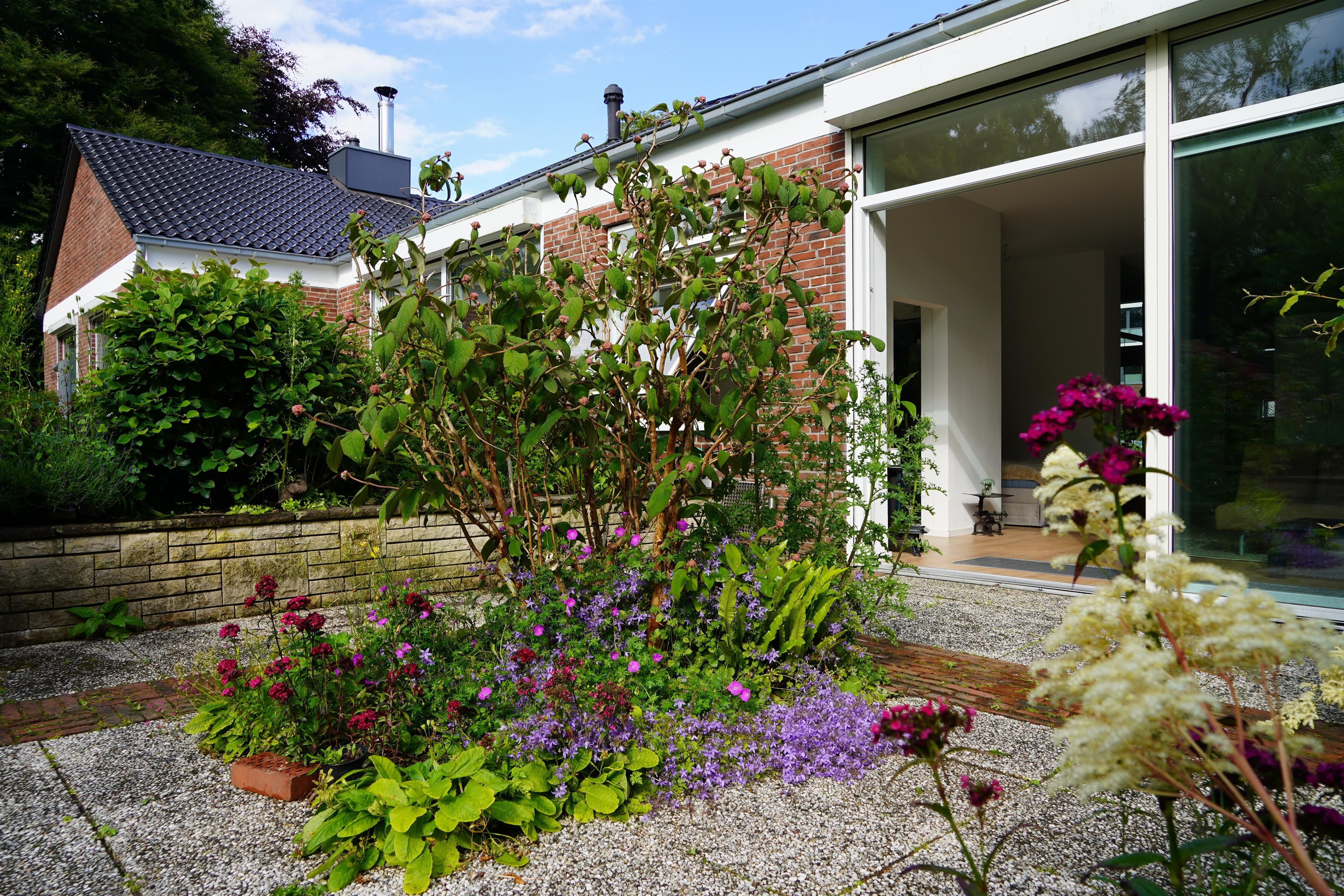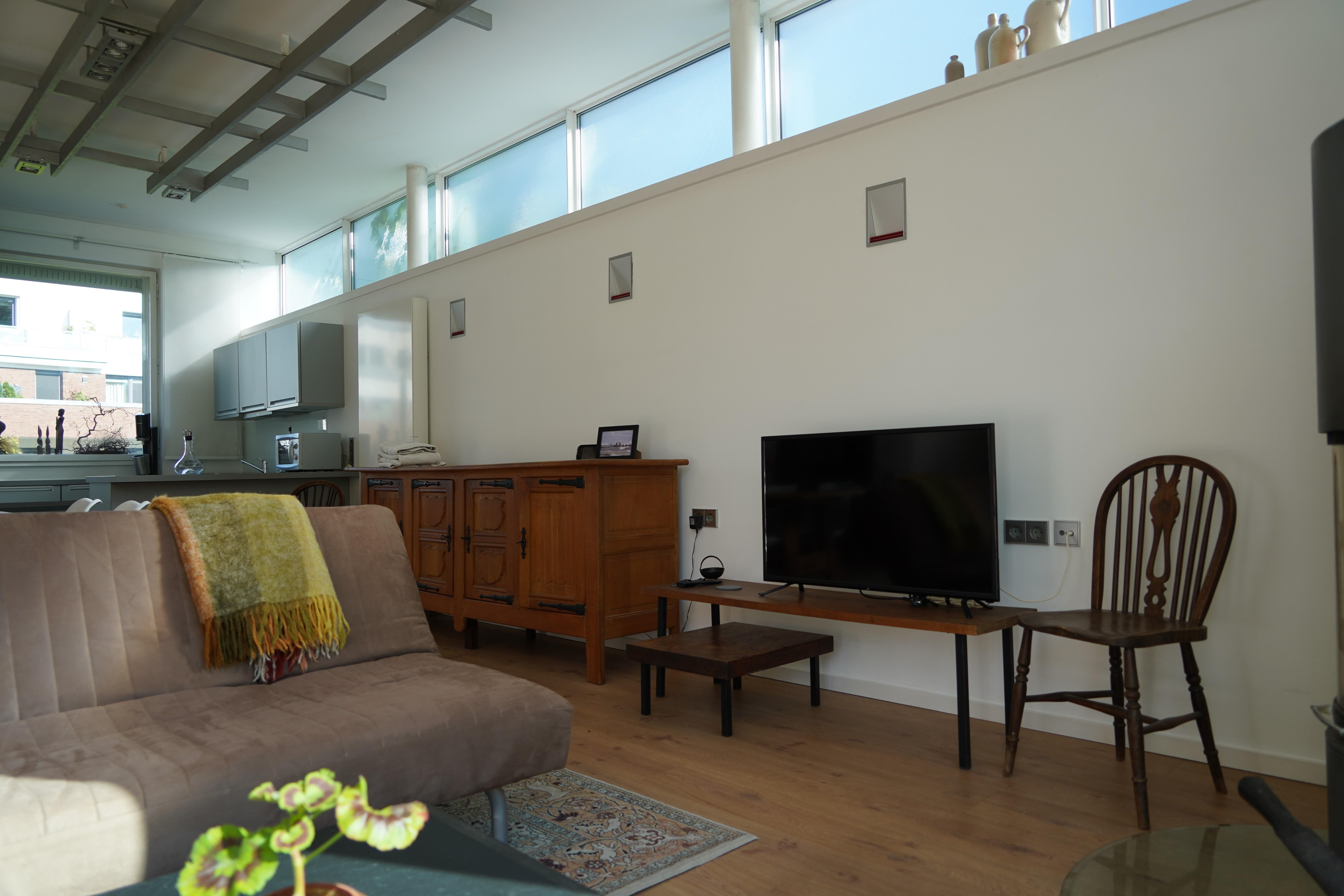 Eigene Haushälfte mit großzügiger, lichtdurchfluteter Ein-Zimmer Ferienwohnung, 70 Quadratmeter Wohnfläche, 3 Meter hohe Decken, Fenster in alle Richtungen, Sehr großzügig geschnitten, alles ebenerdig, gehbehindertengerecht jedoch nicht durchgehend rollstuhlgerecht, Kingsize-Bett 180 x 200 cm in Nische eingebettet, Offener Essbereich, Offene Küche mit Tresen, Duschbad, Toilette separat, Großzügige Garderobe, eigener großer Eingangsbereich,Terrasse in gepflegter Gartenanlage, Gartenmöbel, sehr ruhige Lage, Stellmöglichkeit für z.B. Golfcaddy, Fahrräder – auch E-Bikes, Gute Parkmöglichkeit direkt vor dem Haus - kostenfrei, ruhige Lage, reine Wohngegend