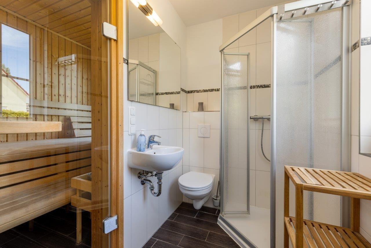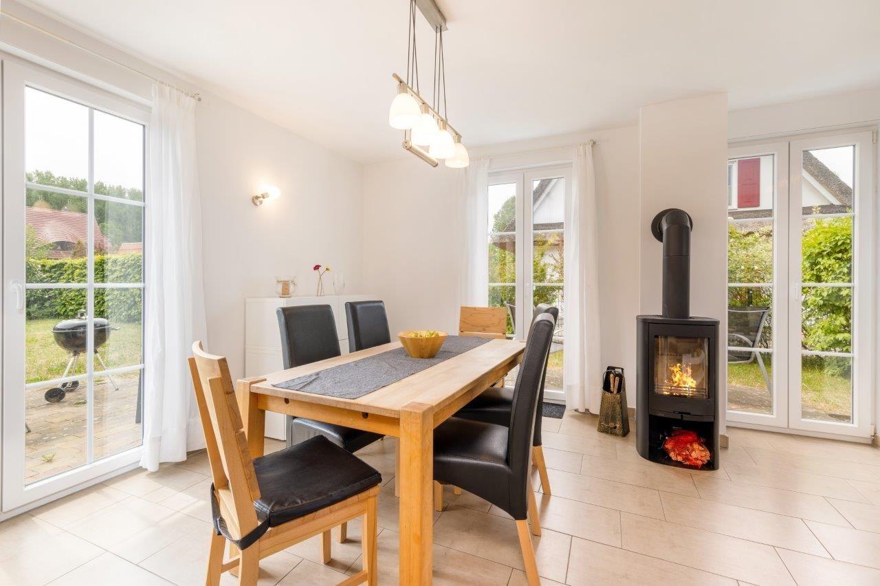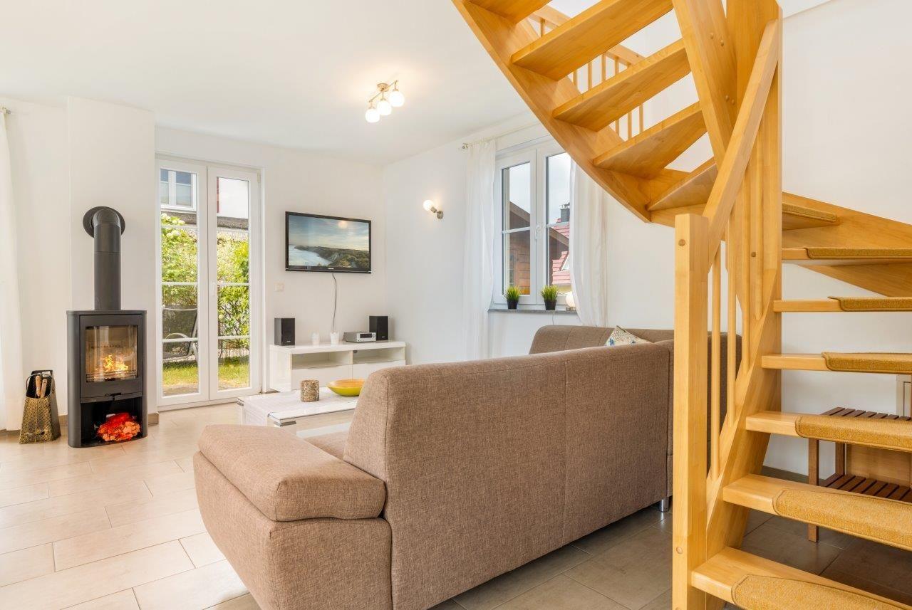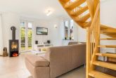 Im Erdgeschoss erwartet Sie ein gemütlicher Wohn- und Essbereich mit einer offenen Küche, einem einladenden Kamin und angrenzenden Terrassen, die nach Süden und Westen ausgerichtet sind. Im Obergeschoss bietet das Fischer-Hus vier Schlafzimmer, die Platz für bis zu 8 Personen bieten. Zwei erstklassige Badezimmer stehen Ihnen im Erd- und Dachgeschoss zur Verfügung, eines mit Dusche/WC und das andere mit einer ebenerdigen Dusche, WC und einer integrierten Sauna.