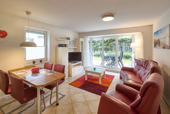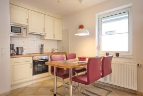Der einladende Wohn-, Ess- und Küchenbereich ist der perfekte Ort zum Entspannen und Beisammensein. Genießen Sie Ihre Mahlzeiten auf der überdachten Westterrasse, die zu lauen Sommerabenden einlädt. Mit nur 100 Metern Entfernung zum Strand ist die Wohnung der ideale Ausgangspunkt für Ihre Strandtage. Der herrliche Sandstrand ist fast in Sichtweite und lädt zu entspannten Tagen am Meer ein.