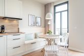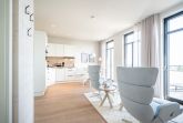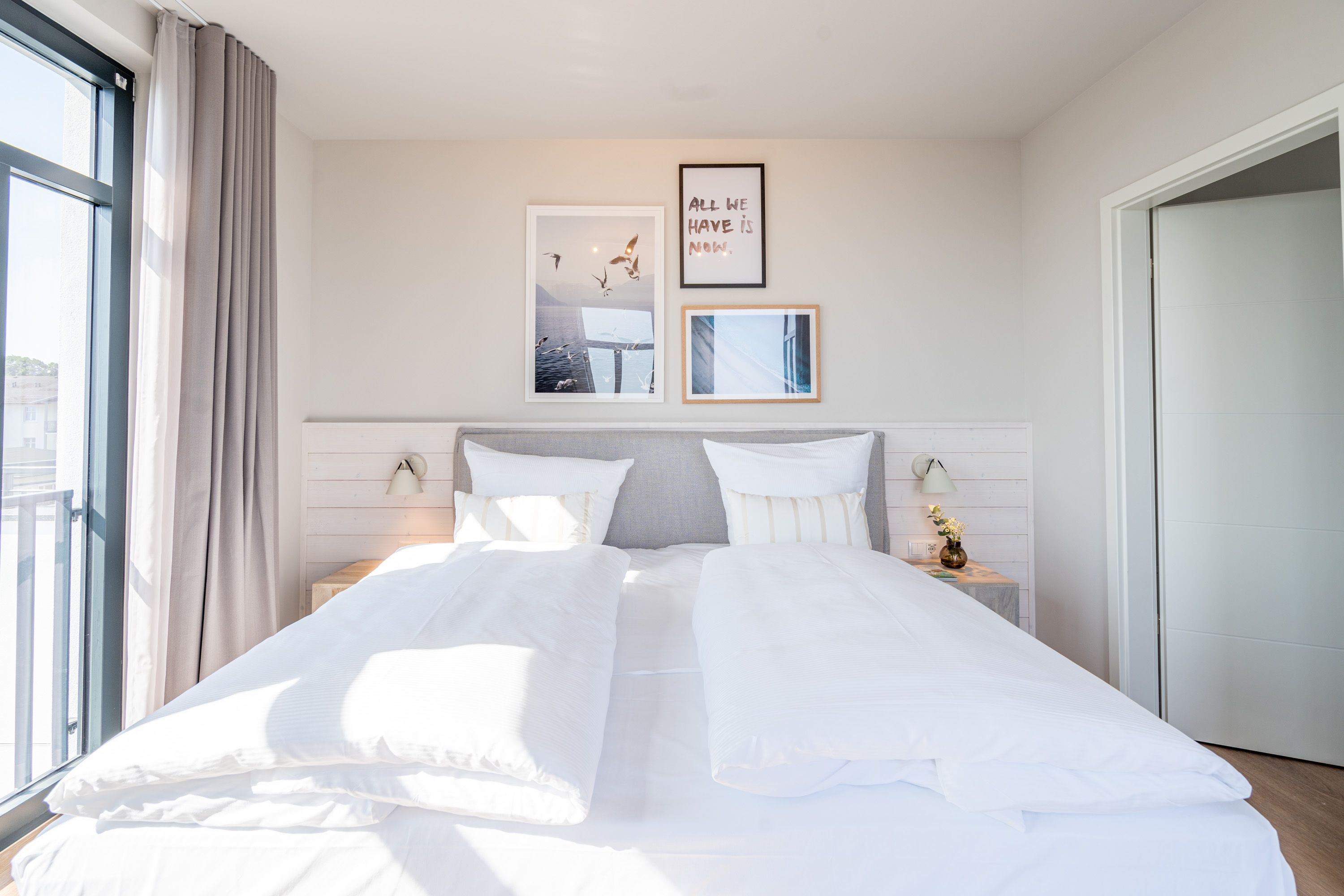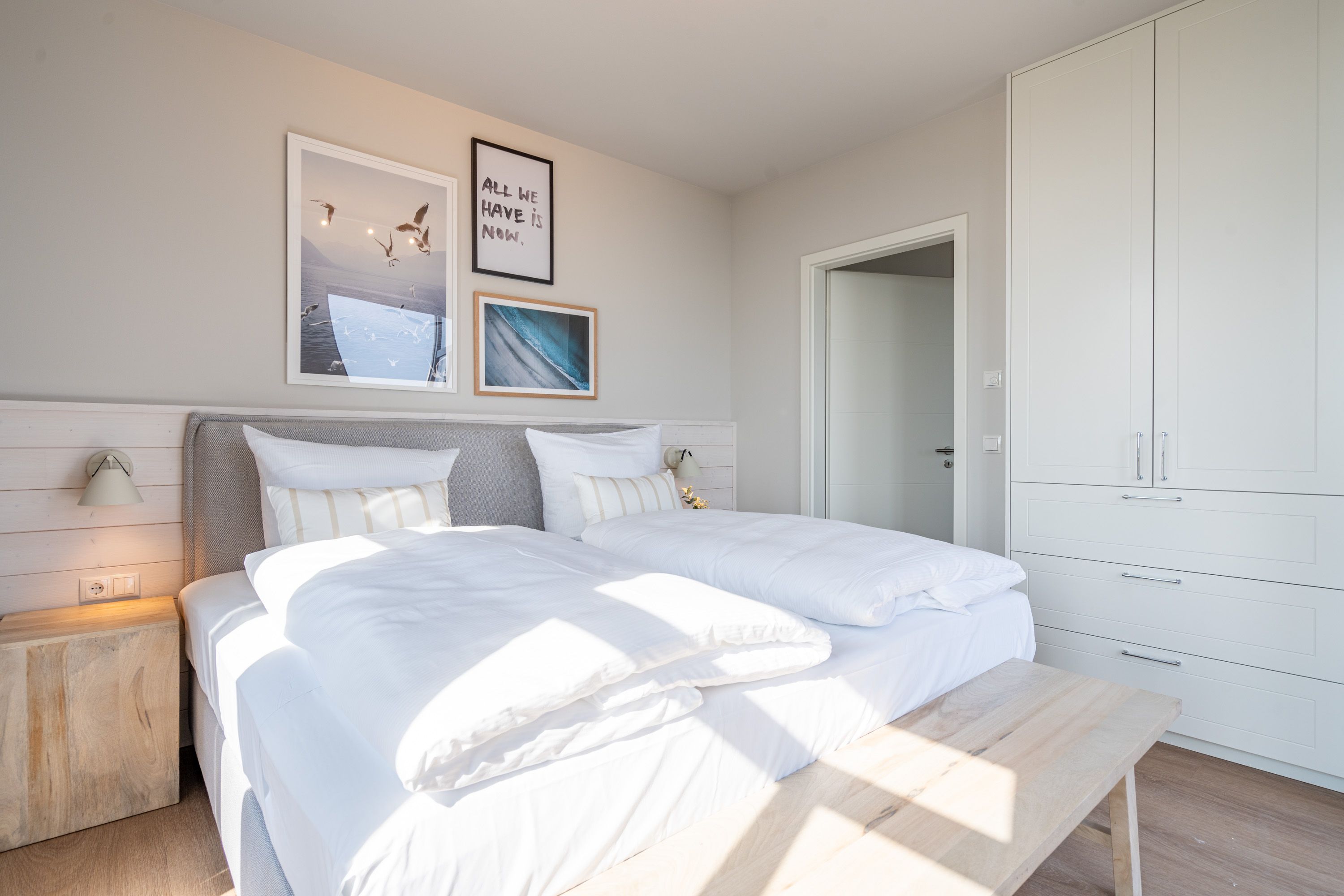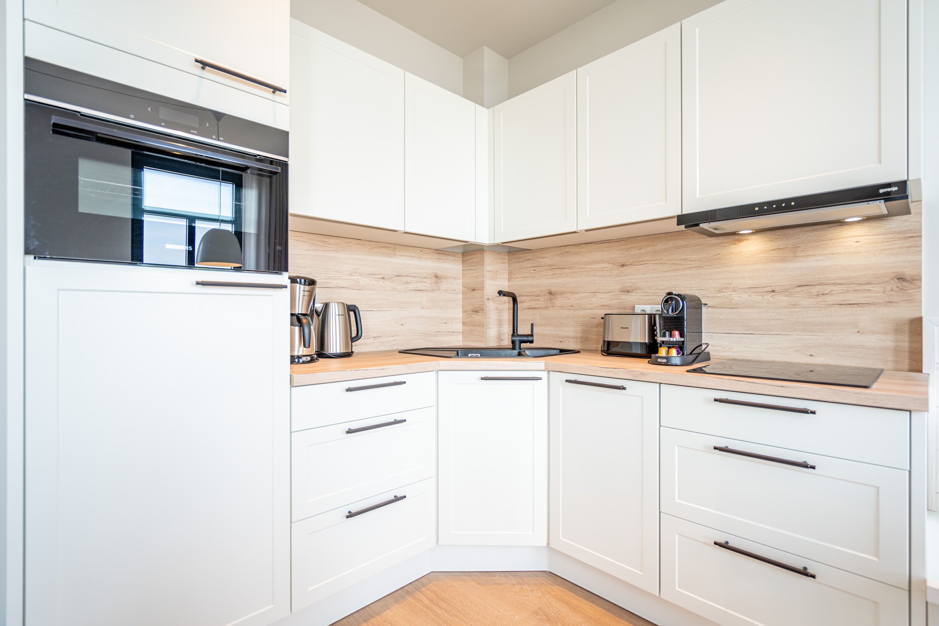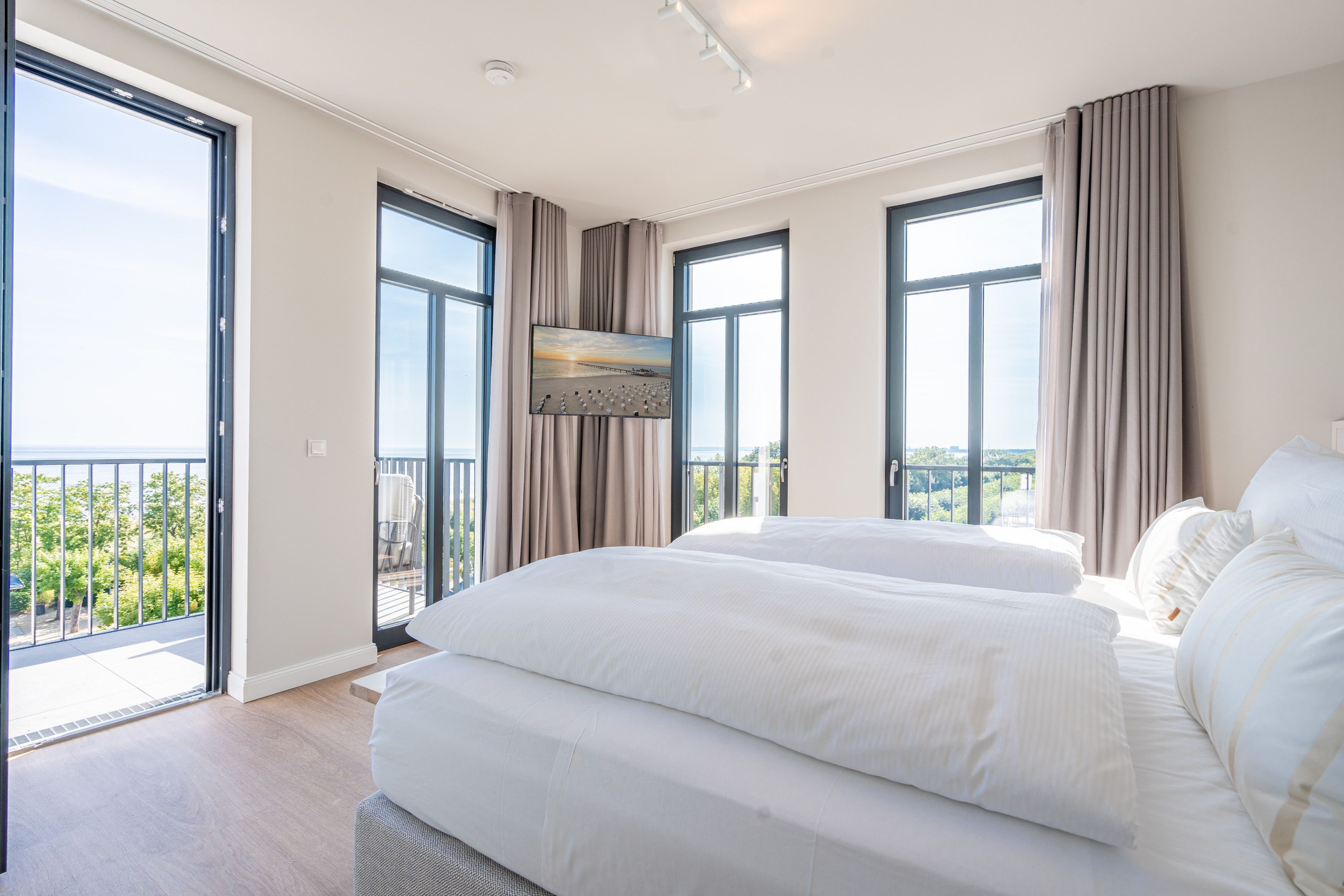 Visasvis der Seebrücke reicht der Blick aus dem exklusiven 2-Raum-Appartement A 3.4 (Haus A) in der 3. Etage von der Heringsdorfer Seebrücke bis nach Swinemünde. An Tagen mit klarer Seeluft sogar bis zu den weißen Klippen von Misdroy. Dieses kleine, aber feine Urlaubsdomizil wartet auf seinen 48 Quadratmetern mit viel Komfort und Finesse auf. Der offene Wohnbereich und das Schlafzimmer sind ideal für zwei Personen und sind ein Traum für alle Ostseeliebhaber. Denn von der werden Sie hier nicht genug bekommen. Nordisches Design gibt beim Interieur den Ton an. Modern und hyggelig zugleich. Genießen sie aus den stylischen, drehbaren Relaxsesseln die Füße auf bequeme Hocker ausgestreckt den fantastischen Blick aufs Meer. Ein Elektrokamin (ohne Wärmeabgabe) sorgt zudem für eine heimelige Atmosphäre. Sogar im Sommer. Ein 50-Zoll-Flachbildfernseher steht für Ihre Unterhaltung zur Verfügung. Die offene Küchenzeile ist mit einem Backofen, einem 3-Platten-Induktionskochfeld, einer Spülmaschine, einer Nespresso-Kapselmaschine und vielem mehr komplett ausgestattet. Hier fehlt es an nichts, um raffinierte Gerichte zu zaubern und sie anschließend am schönen Esstisch gemeinsam einzunehmen. Nur einen Schritt aus dem bodentiefen Fenster hinaus und Sie stehen auf dem ersten Ost-Balkon mit einem Beistelltisch, zwei Sesseln und einer Gartenliege. Entspannen Sie hier bei Sonnenschein und atmen die energieaufladende Brise, die direkt vom Wasser herüberweht, tief ein. Das Schlafzimmer verspricht im luxuriösen Boxspringdoppelbett (2,00m x 2,00m) wunderbare Stunden der Ruhe. Hier befindet sich ein großer Kleiderschrank und ein weiterer 43-Zoll-Flachbildfernseher. Mit Meerblick aufwachen, das ist doch purer Luxus. In diesem charmanten Appartement gehört er zur Grundausstattung dazu. Kaum aus dem Bett, können Sie vom Schlafzimmer aus auf dem zweiten Balkon (Richtung Ost) die aufgehende Sonne begrüßen. Denn auf Usedom entsteigt sie jeden Morgen der Ostsee. Das innenliegende Bad ist mit einer Dusche, einem Waschtisch und einer Toilette ausgestattet. Zur Wohnung gehört in der Tiefgarage ein PKW-Stellplatz. Genießen Sie in diesem wunderschönen Urlaubsparadies unvergessliche Tage am Meer.