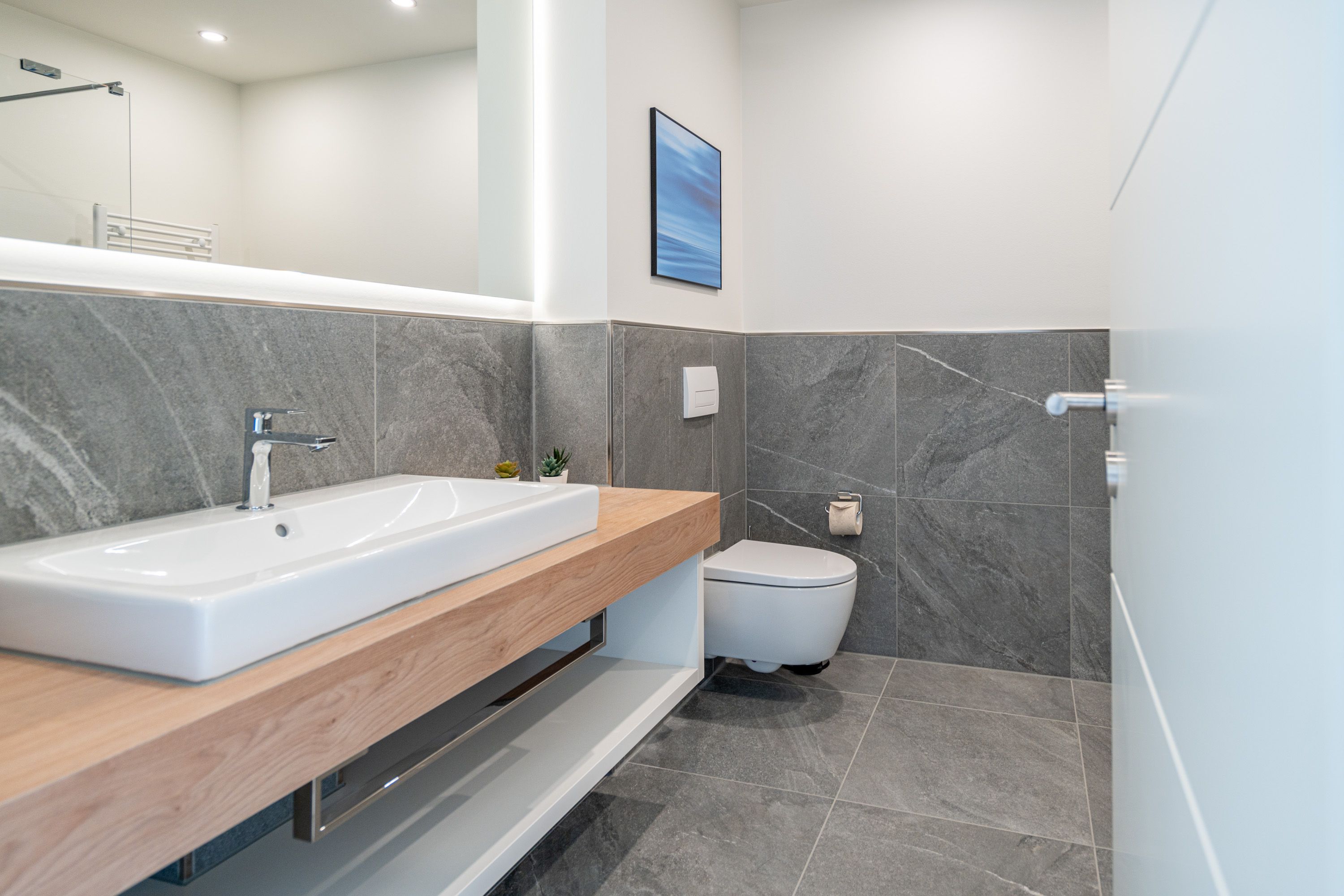 Die 2024 fertig gestellte Strandterrasse liegt direkt an der belebten Strandpromenade und bietet einen einzigartigen Ausblick auf die Grand Dame der historischen Seebrücken sowie die historische Konzertmuschel, einem beliebten Treffpunkt für Kunst und Kultur. Dahinter liegt die Ostsee ein Panorama, das zu den schönsten in den Kaiserbädern gehört. Es ist wie das Abtauchen in eine andere Zeit. In eine Zeit, in der man mit Stock, Sonnenschirm und Hut fürs Sehen und gesehen werden über die Promenade schlenderte; aber auch in eine Zeit, in der damals wie heute Zeit einmal für eine kurze Weile keine Rolle spielt. Weil man angekommen ist im Loslassen, Entspannen und Genießen. Es ist dieser besondere Geruch nach Meeresluft und Freiheit, der in Erinnerung bleibt. Dazu die Bilder, die man mitnimmt. Von langen Strandspaziergängen, vom Lachen in fröhlich schäumenden Ostseewellen, von der Zeit in einem wunderschönen Urlaubsdomizil. Denn genau das ist die Strandterrasse mit ihren 56 modernen und exklusiven Ferienappartements direkt gegenüber der Ahlbecker Seebrücke. Die Ein-, Zwei- oder Dreizimmerwohnungen zwischen 40 und 70 Quadratmeter groß sind von einer Innenarchitektin gemeinsam mit unserem Erfahrungsschatz an Gästewünschen mit viel Liebe zum Detail und ganz individuell konzipiert worden. Entspannung und Wohlfühlen stehen an erster Stelle. Alles ist aufeinander abgestimmt und sorgt für eine gemütliche Atmosphäre. Wählen Sie zwischen einem Domizil in einem hellen, sandfarbenen Designkonzept oder einem Appartement mit anthrazitfarbenen Farbakzenten. Alle Appartements verfügen gleichermaßen über eine stilvolle und komfortable Einrichtung, die passgenau angefertigt worden ist, sowie über moderne Küchen und Bäder. Jedem Schlafzimmer ist ein eigenes Bad mit Dusche zugeordnet (außer App. B4.5). Die Appartements besitzen fast alle einen Balkon viele schauen sogar zur Ostsee hinaus. Die meisten Feriendomizile haben einen Elektrokamin und Infrarotsaunen. Im Erdgeschoss befindet sich ein separater Gemeinschaftsraum für Fahrräder. Außerdem besteht die Möglichkeit, im Gemeinschaftswaschraum 2 Waschmaschinen & Trockner zu nutzen. Ergänzt wird das Angebot durch eine Gemeinschaftssauna, die täglich von 11:00 bis 22:00 Uhr nutzbar ist. In der Tiefgarage (Einfahrtshöhe 2,03 Meter) steht für jede Wohnung 1 Pkw-Stellplatz zur Verfügung. Ist alles zur Zufriedenheit untergebracht? Dann kann der Urlaub ja beginnen. Und beim Blick vom Balkon über die Ostsee treffen sich zum Sonnenaufgang das Heute und das Damals. Gelassenheit legt sich beim Gang hinunter an den Strand auf die Seele. Jetzt darf die Zeit stehenbleiben.
