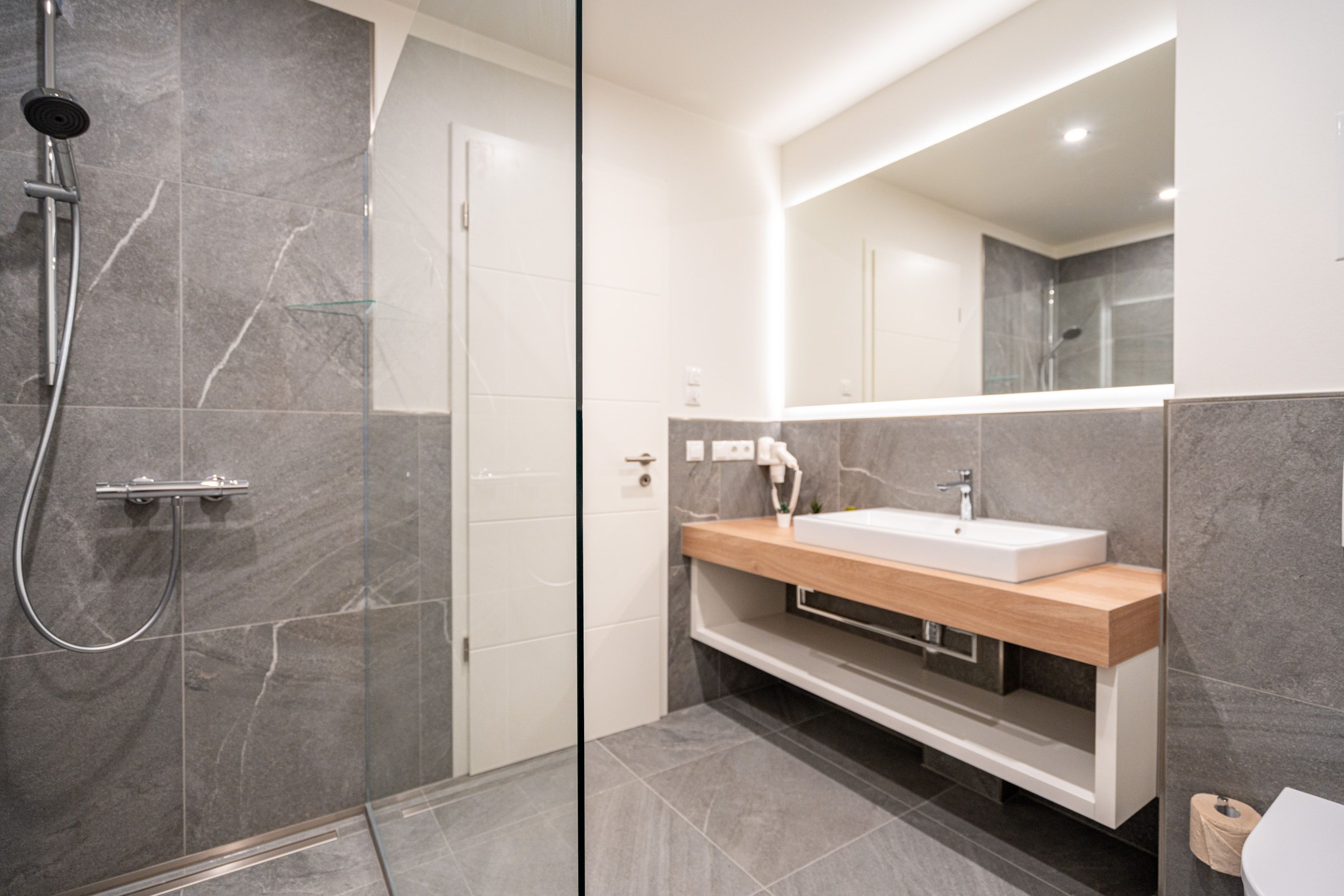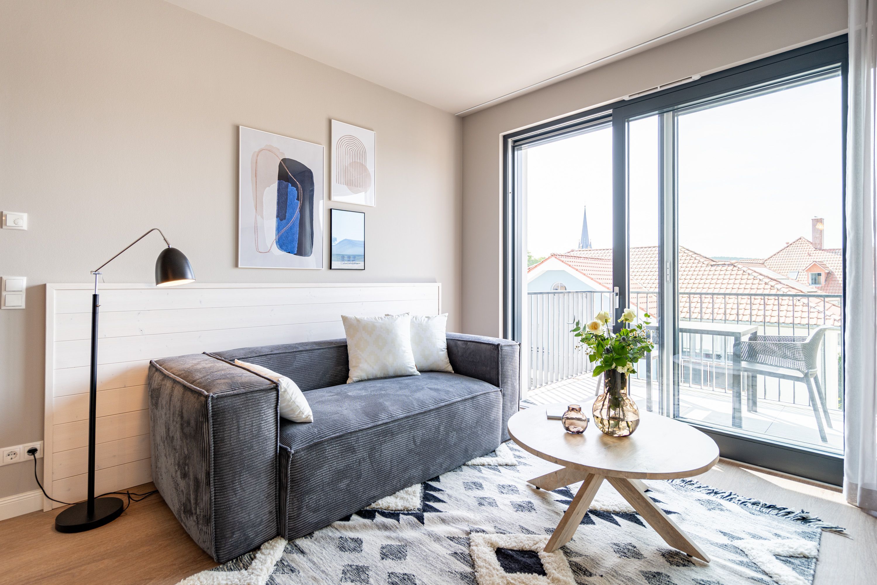Die 2024 fertig gestellte Strandterrasse liegt direkt an der belebten Strandpromenade und bietet einen einzigartigen Ausblick auf die Grand Dame der historischen Seebrücken sowie die historische Konzertmuschel, einem beliebten Treffpunkt für Kunst und Kultur. Dahinter liegt die Ostsee ein Panorama, das zu den schönsten in den Kaiserbädern gehört. Es ist wie das Abtauchen in eine andere Zeit. In eine Zeit, in der man mit Stock, Sonnenschirm und Hut fürs Sehen und gesehen werden über die Promenade schlenderte; aber auch in eine Zeit, in der damals wie heute Zeit einmal für eine kurze Weile keine Rolle spielt. Weil man angekommen ist im Loslassen, Entspannen und Genießen. Es ist dieser besondere Geruch nach Meeresluft und Freiheit, der in Erinnerung bleibt. Dazu die Bilder, die man mitnimmt. Von langen Strandspaziergängen, vom Lachen in fröhlich schäumenden Ostseewellen, von der Zeit in einem wunderschönen Urlaubsdomizil. Denn genau das ist die Strandterrasse mit ihren 56 modernen und exklusiven Ferienappartements direkt gegenüber der Ahlbecker Seebrücke. Die Ein-, Zwei- oder Dreizimmerwohnungen zwischen 40 und 70 Quadratmeter groß sind von einer Innenarchitektin gemeinsam mit unserem Erfahrungsschatz an Gästewünschen mit viel Liebe zum Detail und ganz individuell konzipiert worden. Entspannung und Wohlfühlen stehen an erster Stelle. Alles ist aufeinander abgestimmt und sorgt für eine gemütliche Atmosphäre. Wählen Sie zwischen einem Domizil in einem hellen, sandfarbenen Designkonzept oder einem Appartement mit anthrazitfarbenen Farbakzenten. Alle Appartements verfügen gleichermaßen über eine stilvolle und komfortable Einrichtung, die passgenau angefertigt worden ist, sowie über moderne Küchen und Bäder. Jedem Schlafzimmer ist ein eigenes Bad mit Dusche zugeordnet (außer App. B4.5). Die Appartements besitzen fast alle einen Balkon viele schauen sogar zur Ostsee hinaus. Die meisten Feriendomizile haben einen Elektrokamin und Infrarotsaunen. Im Erdgeschoss befindet sich ein separater Gemeinschaftsraum für Fahrräder. Außerdem besteht die Möglichkeit, im Gemeinschaftswaschraum 2 Waschmaschinen & Trockner zu nutzen. Ergänzt wird das Angebot durch eine Gemeinschaftssauna, die täglich von 11:00 bis 22:00 Uhr nutzbar ist. In der Tiefgarage (Einfahrtshöhe 2,03 Meter) steht für jede Wohnung 1 Pkw-Stellplatz zur Verfügung. Ist alles zur Zufriedenheit untergebracht? Dann kann der Urlaub ja beginnen. Und beim Blick vom Balkon über die Ostsee treffen sich zum Sonnenaufgang das Heute und das Damals. Gelassenheit legt sich beim Gang hinunter an den Strand auf die Seele. Jetzt darf die Zeit stehenbleiben.