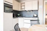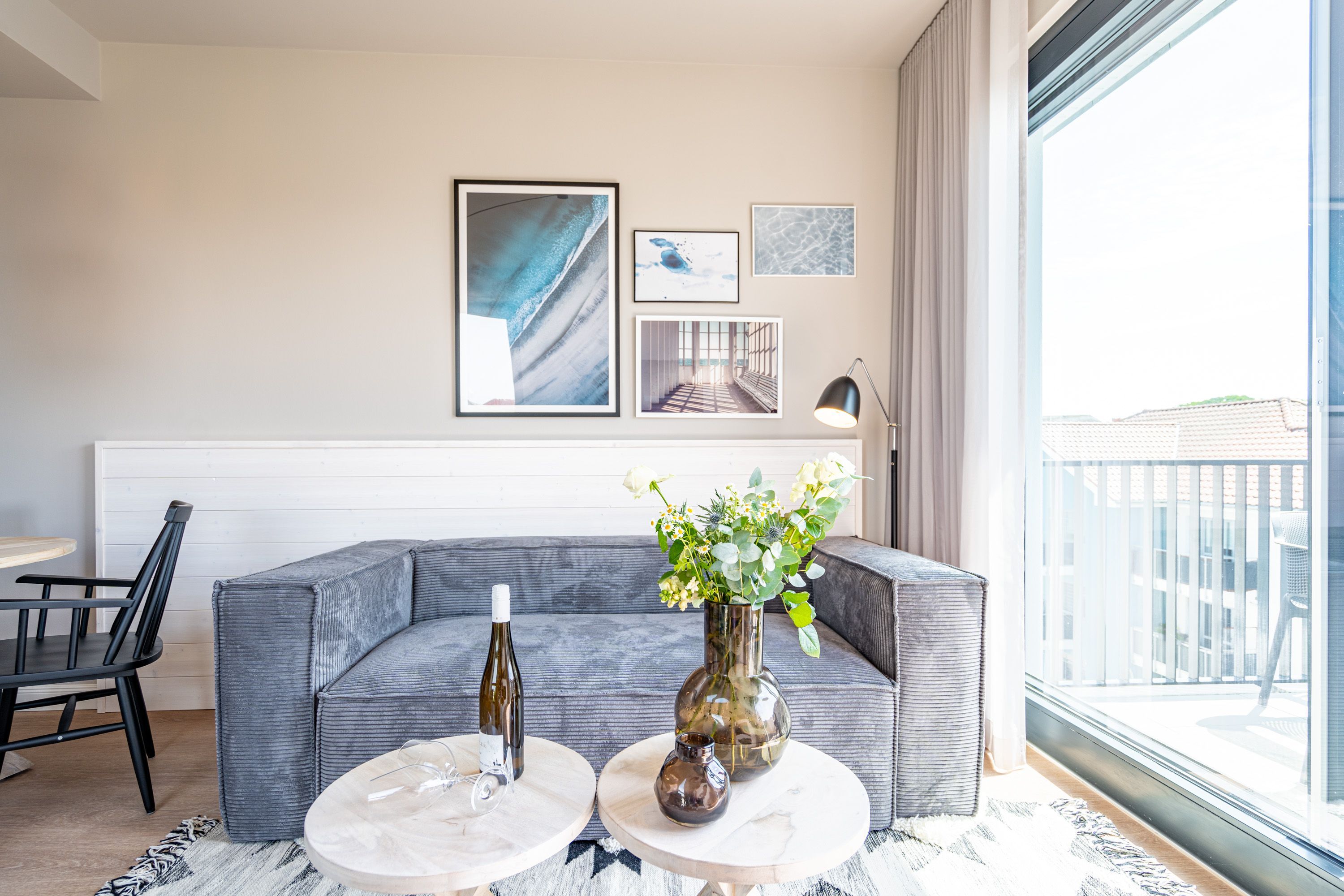 Die 2024 fertig gestellte Strandterrasse liegt direkt an der belebten Strandpromenade und bietet einen einzigartigen Ausblick auf die Grand Dame der historischen Seebrücken sowie die historische Konzertmuschel, einem beliebten Treffpunkt für Kunst und Kultur. Dahinter liegt die Ostsee ein Panorama, das zu den schönsten in den Kaiserbädern gehört. Es ist wie das Abtauchen in eine andere Zeit. In eine Zeit, in der man mit Stock, Sonnenschirm und Hut fürs „Sehen und gesehen werden“ über die Promenade schlenderte; aber auch in eine Zeit, in der damals wie heute Zeit einmal für eine kurze Weile keine Rolle spielt. Weil man angekommen ist im Loslassen, Entspannen und Genießen. Es ist dieser besondere Geruch nach Meeresluft und Freiheit, der in Erinnerung bleibt. Dazu die Bilder, die man mitnimmt. Von langen Strandspaziergängen, vom Lachen in fröhlich schäumenden Ostseewellen, von der Zeit in einem wunderschönen Urlaubsdomizil. Denn genau das ist die Strandterrasse mit ihren 56 modernen und exklusiven Ferienappartements direkt gegenüber der Ahlbecker Seebrücke. Die Ein-, Zwei- oder Dreizimmerwohnungen zwischen 40 und 70 Quadratmeter groß sind von einer Innenarchitektin gemeinsam mit unserem Erfahrungsschatz an Gästewünschen mit viel Liebe zum Detail und ganz individuell konzipiert worden. Entspannung und Wohlfühlen stehen an erster Stelle. Alles ist aufeinander abgestimmt und sorgt für eine gemütliche Atmosphäre. Wählen Sie zwischen einem Domizil in einem hellen, sandfarbenen Designkonzept oder einem Appartement mit anthrazitfarbenen Farbakzenten. Alle Appartements verfügen gleichermaßen über eine stilvolle und komfortable Einrichtung, die passgenau angefertigt worden ist, sowie über moderne Küchen und Bäder. Jedem Schlafzimmer ist ein eigenes Bad mit Dusche zugeordnet (außer App. B4.5). Die Appartements besitzen fast alle einen Balkon viele schauen sogar zur Ostsee hinaus. Die meisten Feriendomizile haben einen Elektrokamin und Infrarotsaunen. Im Erdgeschoss befindet sich ein separater Gemeinschaftsraum für Fahrräder. Außerdem besteht die Möglichkeit, im Gemeinschaftswaschraum 2 Waschmaschinen & Trockner zu nutzen. Ergänzt wird das Angebot durch eine Gemeinschaftssauna, die täglich von 11:00 bis 22:00 Uhr nutzbar ist. In der Tiefgarage (Einfahrtshöhe 2,03 Meter) steht für jede Wohnung 1 Pkw-Stellplatz zur Verfügung. Ist alles zur Zufriedenheit untergebracht? Dann kann der Urlaub ja beginnen. Und beim Blick vom Balkon über die Ostsee treffen sich zum Sonnenaufgang das Heute und das Damals. Gelassenheit legt sich beim Gang hinunter an den Strand auf die Seele. Jetzt darf die Zeit stehenbleiben.