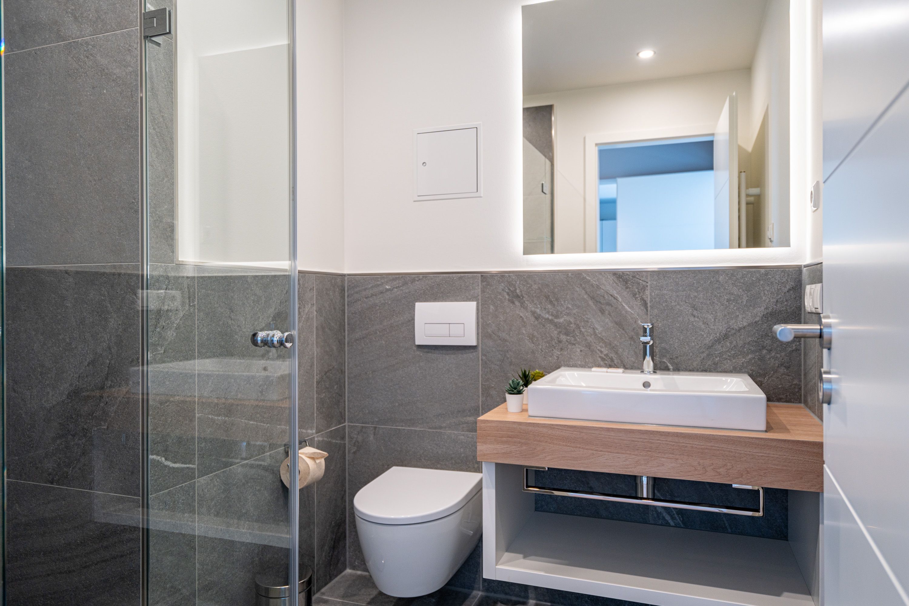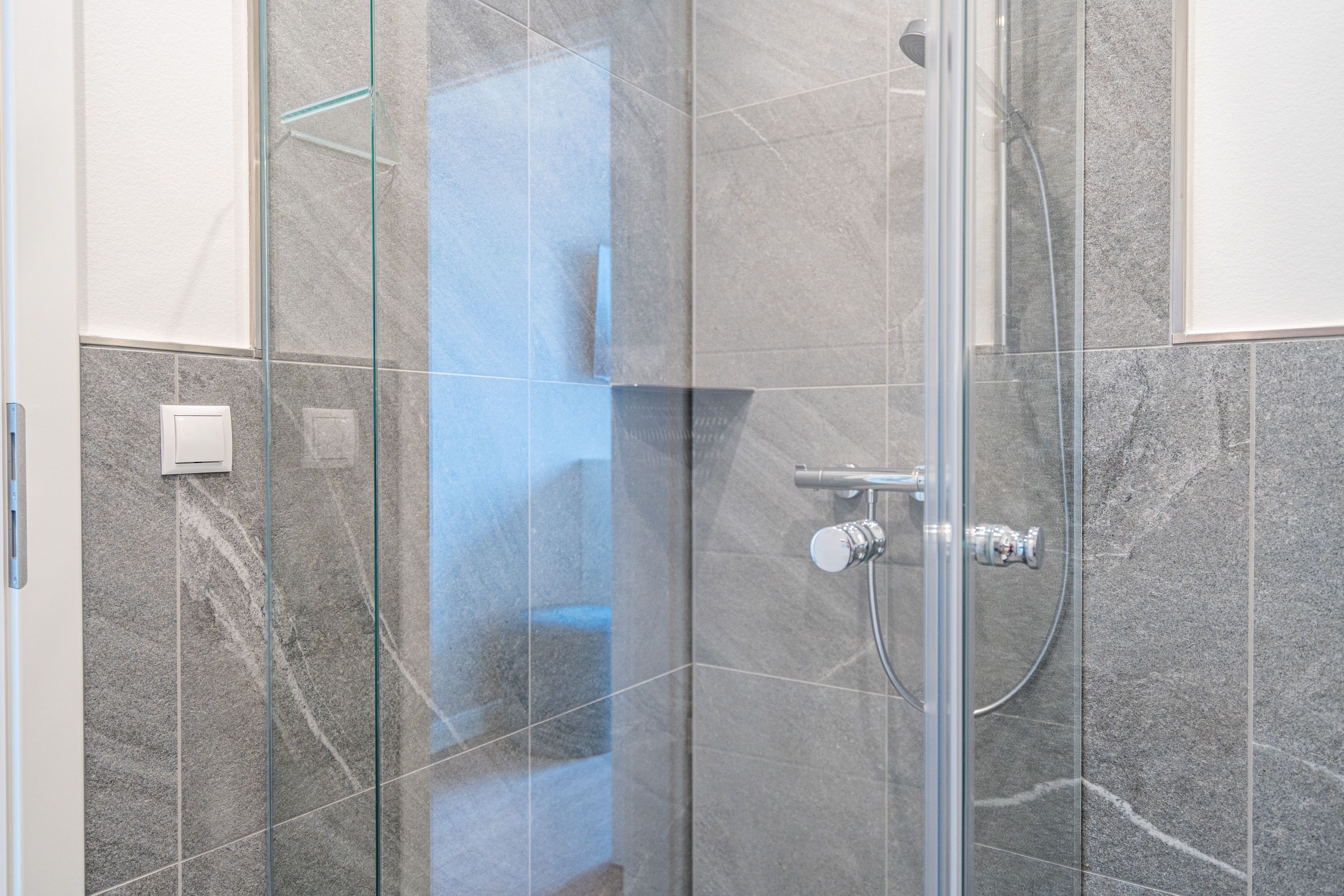 Die 2024 fertig gestellte Strandterrasse liegt direkt an der belebten Strandpromenade und bietet einen einzigartigen Ausblick auf die Grand Dame der historischen Seebrücken sowie die historische Konzertmuschel, einem beliebten Treffpunkt für Kunst und Kultur. Dahinter liegt die Ostsee ein Panorama, das zu den schönsten in den Kaiserbädern gehört. Es ist wie das Abtauchen in eine andere Zeit. In eine Zeit, in der man mit Stock, Sonnenschirm und Hut fürs Sehen und gesehen werden über die Promenade schlenderte; aber auch in eine Zeit, in der damals wie heute Zeit einmal für eine kurze Weile keine Rolle spielt. Weil man angekommen ist im Loslassen, Entspannen und Genießen. Es ist dieser besondere Geruch nach Meeresluft und Freiheit, der in Erinnerung bleibt. Dazu die Bilder, die man mitnimmt. Von langen Strandspaziergängen, vom Lachen in fröhlich schäumenden Ostseewellen, von der Zeit in einem wunderschönen Urlaubsdomizil. Denn genau das ist die Strandterrasse mit ihren 56 modernen und exklusiven Ferienappartements direkt gegenüber der Ahlbecker Seebrücke. Die Ein-, Zwei- oder Dreizimmerwohnungen zwischen 40 und 70 Quadratmeter groß sind von einer Innenarchitektin gemeinsam mit unserem Erfahrungsschatz an Gästewünschen mit viel Liebe zum Detail und ganz individuell konzipiert worden. Entspannung und Wohlfühlen stehen an erster Stelle. Alles ist aufeinander abgestimmt und sorgt für eine gemütliche Atmosphäre. Wählen Sie zwischen einem Domizil in einem hellen, sandfarbenen Designkonzept oder einem Appartement mit anthrazitfarbenen Farbakzenten. Alle Appartements verfügen gleichermaßen über eine stilvolle und komfortable Einrichtung, die passgenau angefertigt worden ist, sowie über moderne Küchen und Bäder. Jedem Schlafzimmer ist ein eigenes Bad mit Dusche zugeordnet (außer App. B4.5). Die Appartements besitzen fast alle einen Balkon viele schauen sogar zur Ostsee hinaus. Die meisten Feriendomizile haben einen Elektrokamin und Infrarotsaunen. Im Erdgeschoss befindet sich ein separater Gemeinschaftsraum für Fahrräder. Außerdem besteht die Möglichkeit, im Gemeinschaftswaschraum 2 Waschmaschinen & Trockner zu nutzen. Ergänzt wird das Angebot durch eine Gemeinschaftssauna, die täglich von 11:00 bis 22:00 Uhr nutzbar ist. In der Tiefgarage (Einfahrtshöhe 2,03 Meter) steht für jede Wohnung 1 Pkw-Stellplatz zur Verfügung. Ist alles zur Zufriedenheit untergebracht? Dann kann der Urlaub ja beginnen. Und beim Blick vom Balkon über die Ostsee treffen sich zum Sonnenaufgang das Heute und das Damals. Gelassenheit legt sich beim Gang hinunter an den Strand auf die Seele. Jetzt darf die Zeit stehenbleiben.
