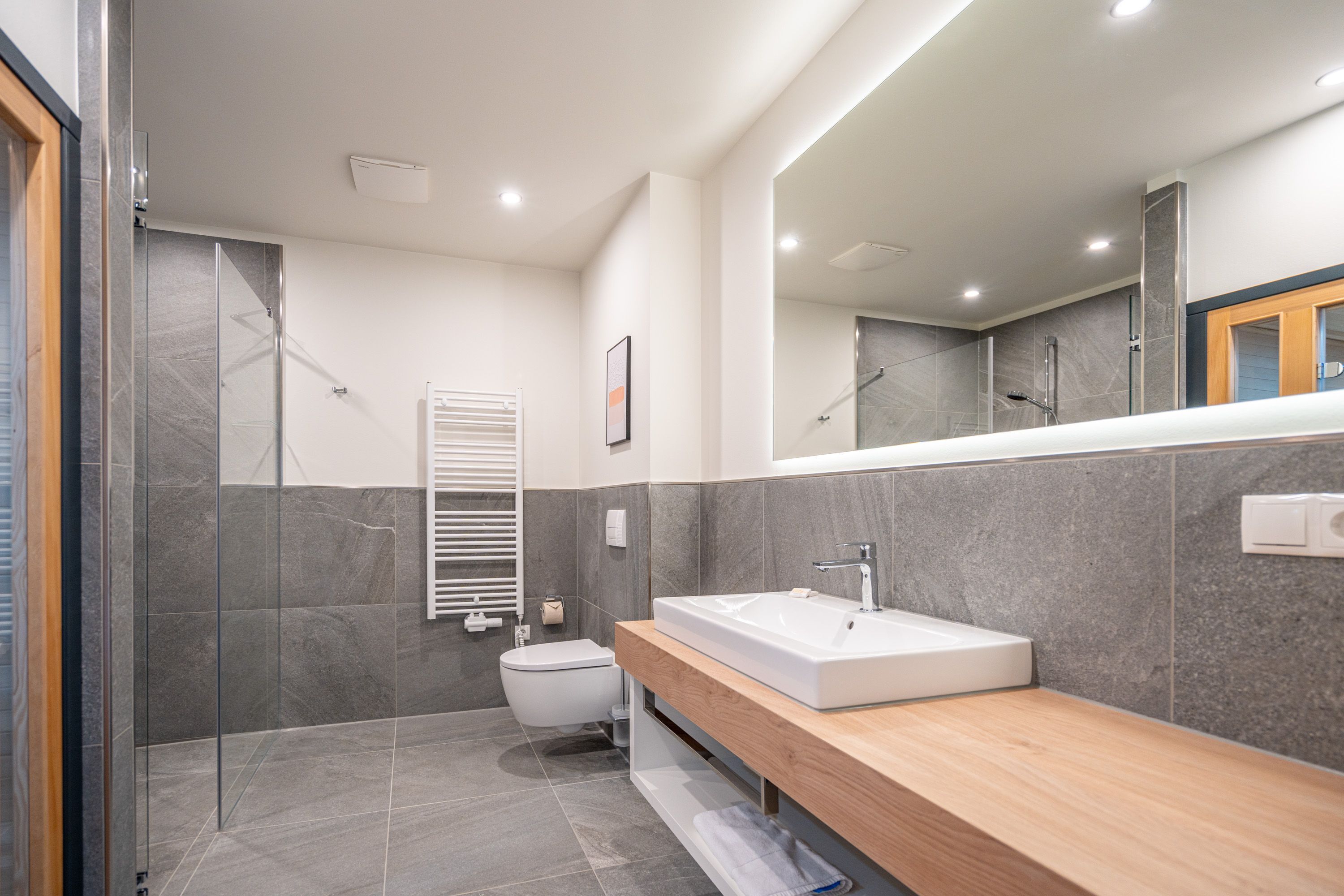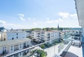 Die 2024 fertig gestellte Strandterrasse liegt direkt an der belebten Strandpromenade und bietet einen einzigartigen Ausblick auf die Grand Dame der historischen Seebrücken sowie die historische Konzertmuschel, einem beliebten Treffpunkt für Kunst und Kultur. Dahinter liegt die Ostsee ein Panorama, das zu den schönsten in den Kaiserbädern gehört. Es ist wie das Abtauchen in eine andere Zeit. In eine Zeit, in der man mit Stock, Sonnenschirm und Hut fürs Sehen und gesehen werden über die Promenade schlenderte; aber auch in eine Zeit, in der damals wie heute Zeit einmal für eine kurze Weile keine Rolle spielt. Weil man angekommen ist im Loslassen, Entspannen und Genießen. Es ist dieser besondere Geruch nach Meeresluft und Freiheit, der in Erinnerung bleibt. Dazu die Bilder, die man mitnimmt. Von langen Strandspaziergängen, vom Lachen in fröhlich schäumenden Ostseewellen, von der Zeit in einem wunderschönen Urlaubsdomizil. Denn genau das ist die Strandterrasse mit ihren 56 modernen und exklusiven Ferienappartements direkt gegenüber der Ahlbecker Seebrücke. Die Ein-, Zwei- oder Dreizimmerwohnungen zwischen 40 und 70 Quadratmeter groß sind von einer Innenarchitektin gemeinsam mit unserem Erfahrungsschatz an Gästewünschen mit viel Liebe zum Detail und ganz individuell konzipiert worden. Entspannung und Wohlfühlen stehen an erster Stelle. Alles ist aufeinander abgestimmt und sorgt für eine gemütliche Atmosphäre. Wählen Sie zwischen einem Domizil in einem hellen, sandfarbenen Designkonzept oder einem Appartement mit anthrazitfarbenen Farbakzenten. Alle Appartements verfügen gleichermaßen über eine stilvolle und komfortable Einrichtung, die passgenau angefertigt worden ist, sowie über moderne Küchen und Bäder. Jedem Schlafzimmer ist ein eigenes Bad mit Dusche zugeordnet (außer App. B4.5). Die Appartements besitzen fast alle einen Balkon viele schauen sogar zur Ostsee hinaus. Die meisten Feriendomizile haben einen Elektrokamin und Infrarotsaunen. Im Erdgeschoss befindet sich ein separater Gemeinschaftsraum für Fahrräder. Außerdem besteht die Möglichkeit, im Gemeinschaftswaschraum 2 Waschmaschinen & Trockner zu nutzen. Ergänzt wird das Angebot durch eine Gemeinschaftssauna, die täglich von 11:00 bis 22:00 Uhr nutzbar ist. In der Tiefgarage (Einfahrtshöhe 2,03 Meter) steht für jede Wohnung 1 Pkw-Stellplatz zur Verfügung. Ist alles zur Zufriedenheit untergebracht? Dann kann der Urlaub ja beginnen. Und beim Blick vom Balkon über die Ostsee treffen sich zum Sonnenaufgang das Heute und das Damals. Gelassenheit legt sich beim Gang hinunter an den Strand auf die Seele. Jetzt darf die Zeit stehenbleiben.