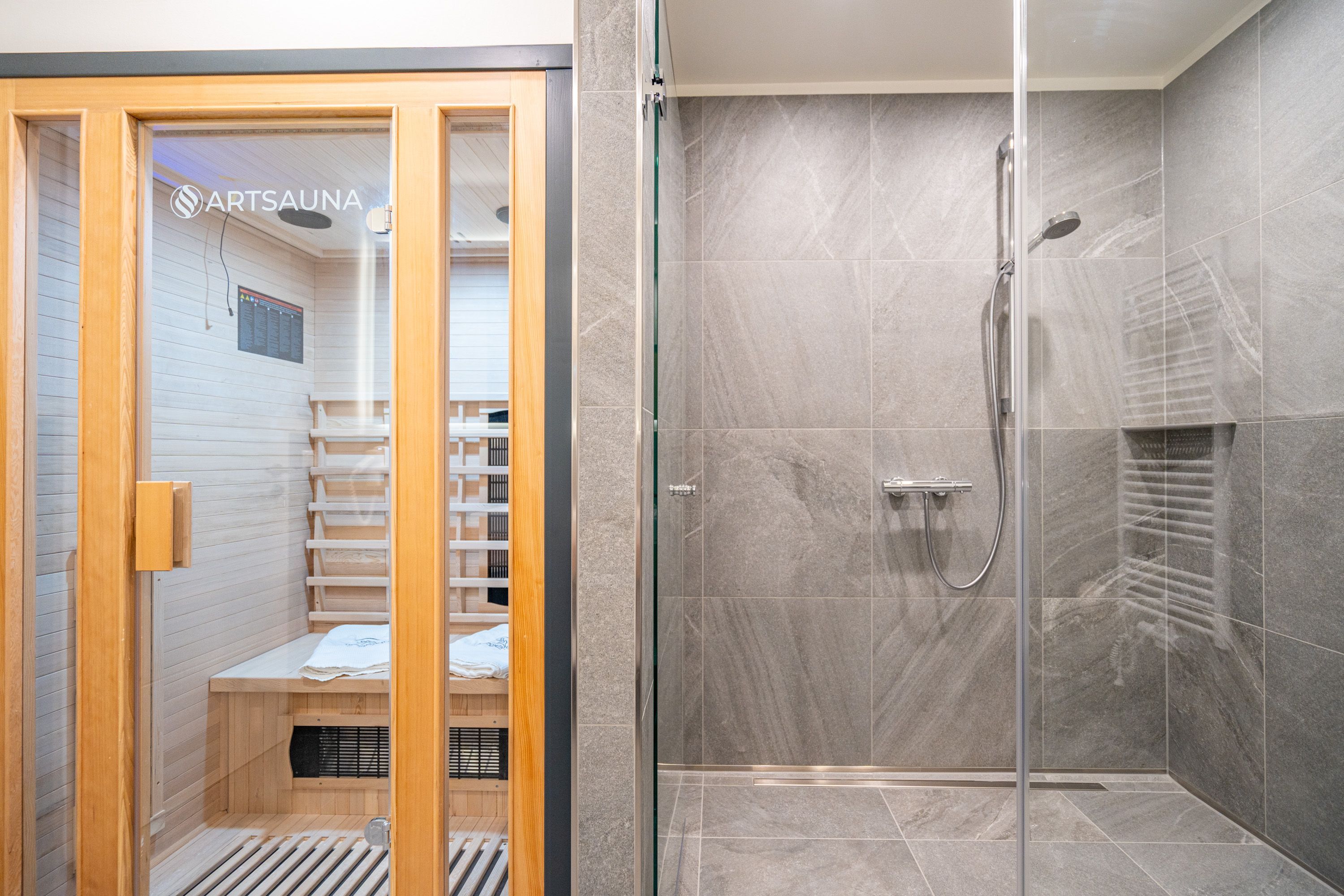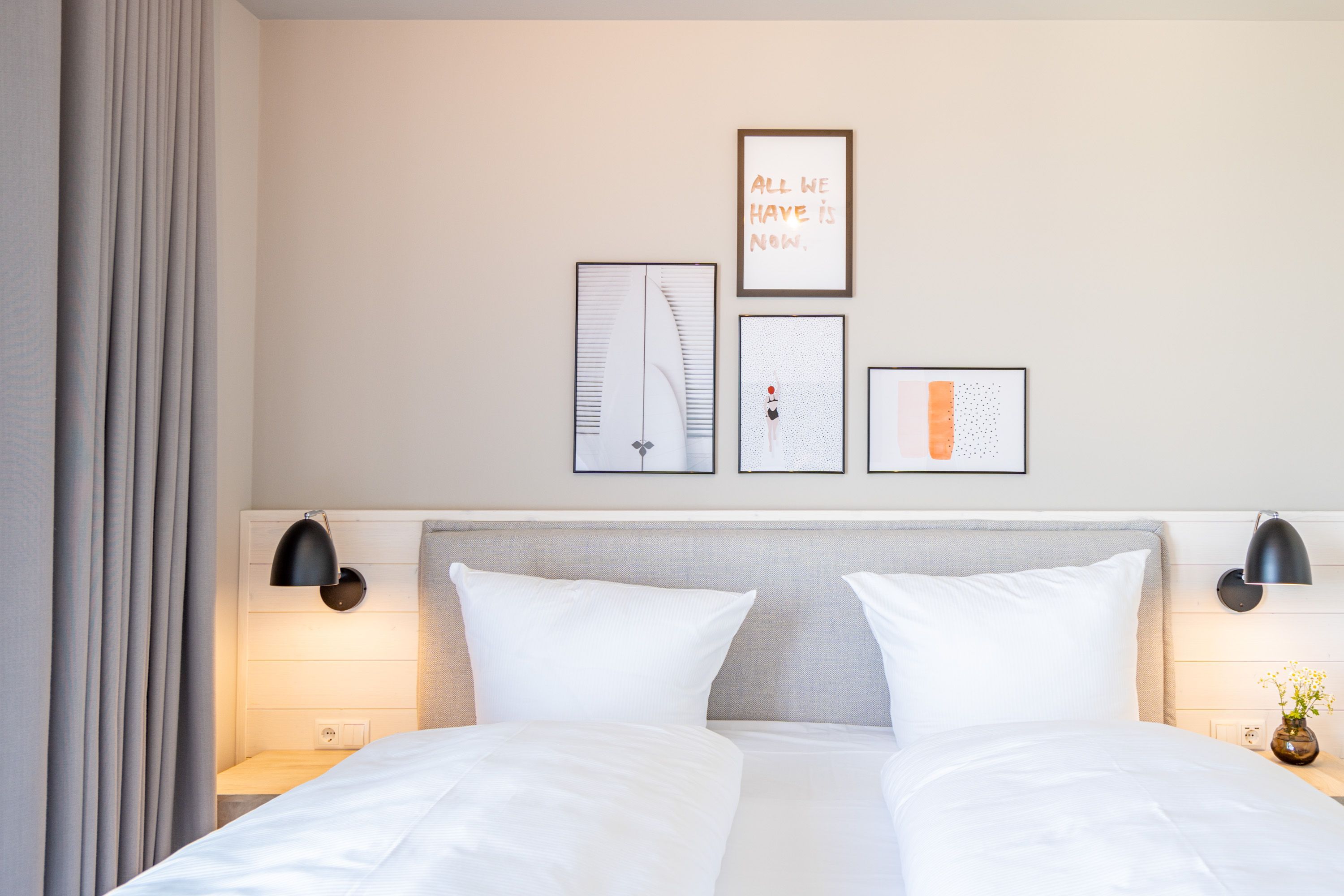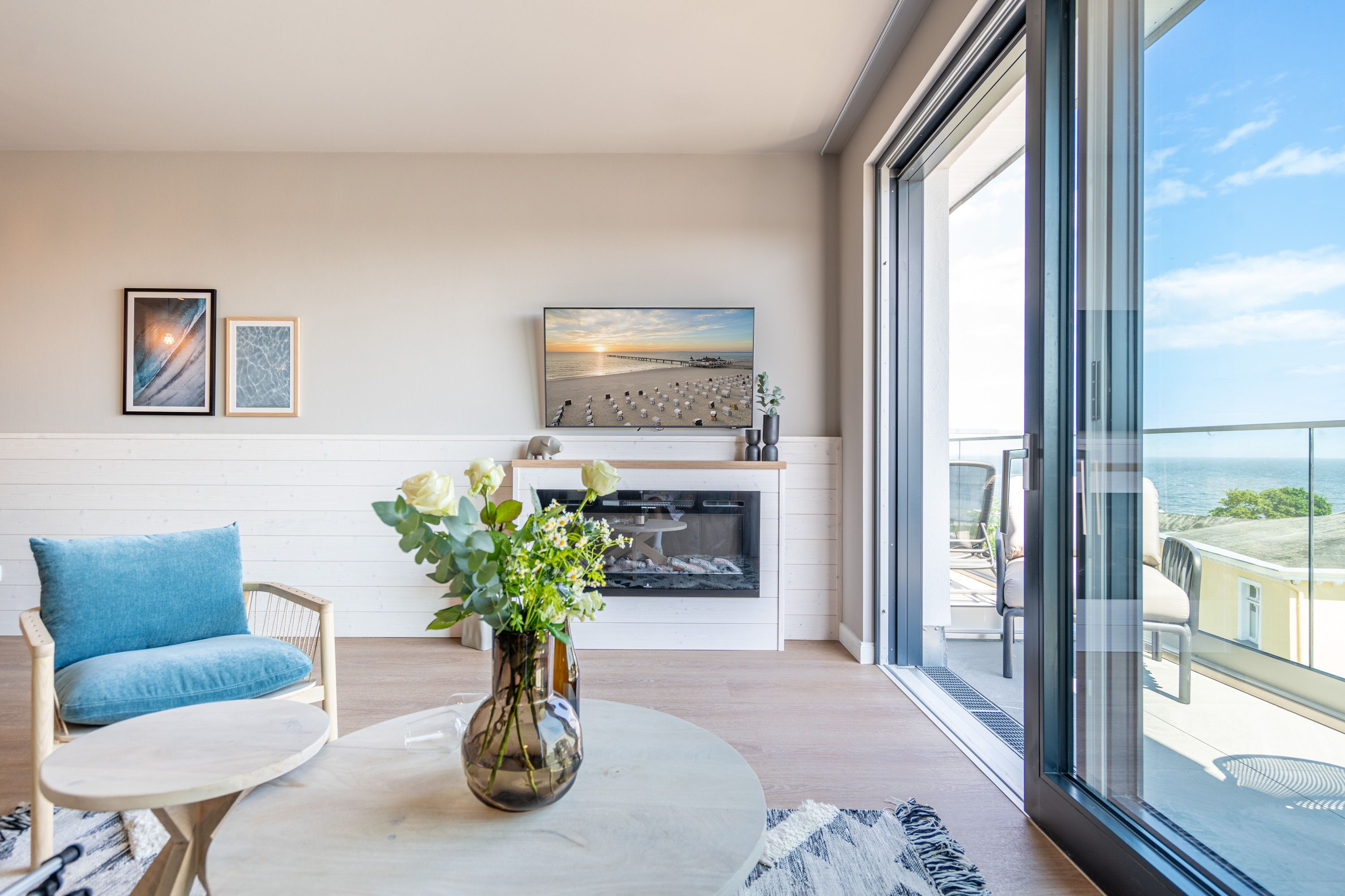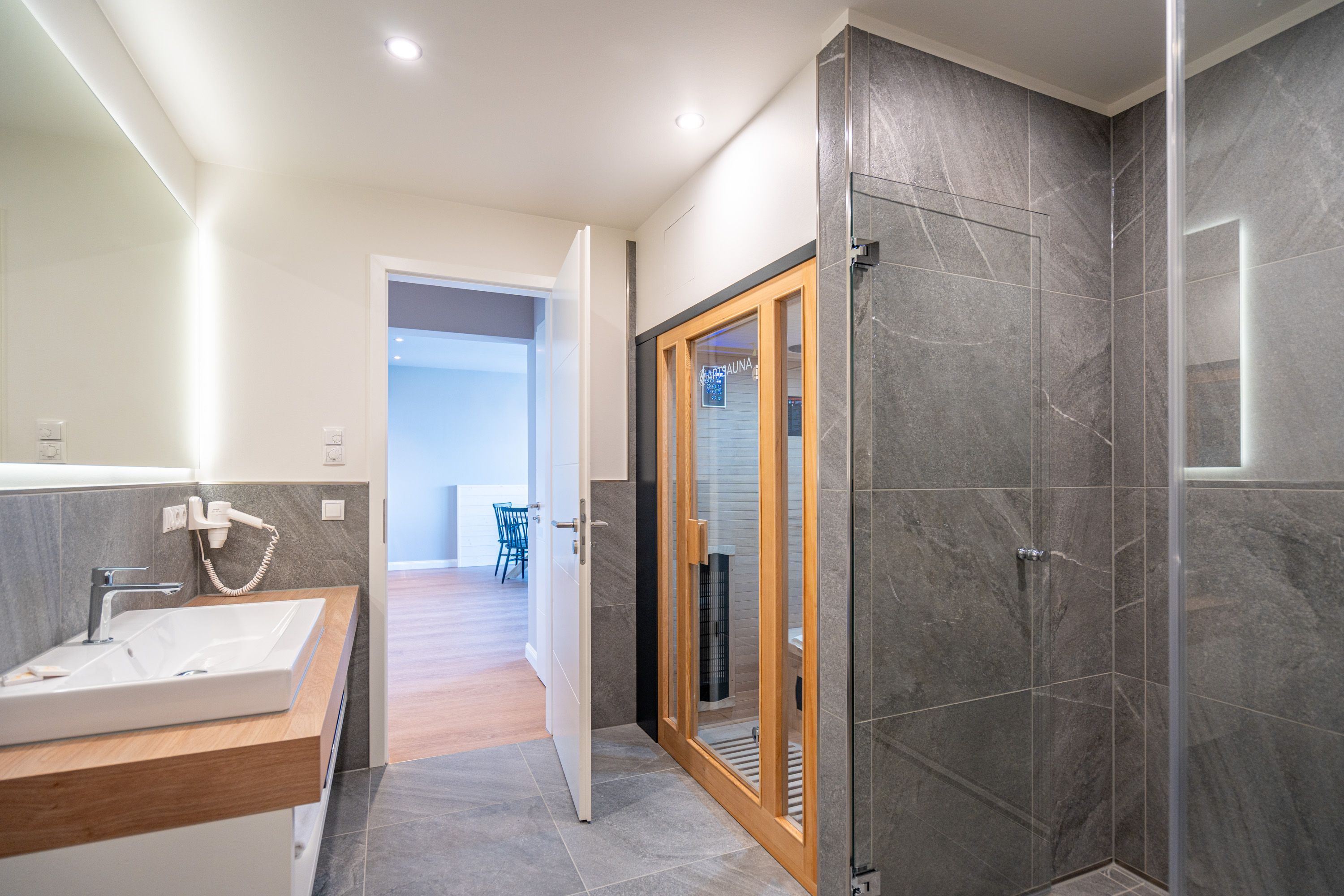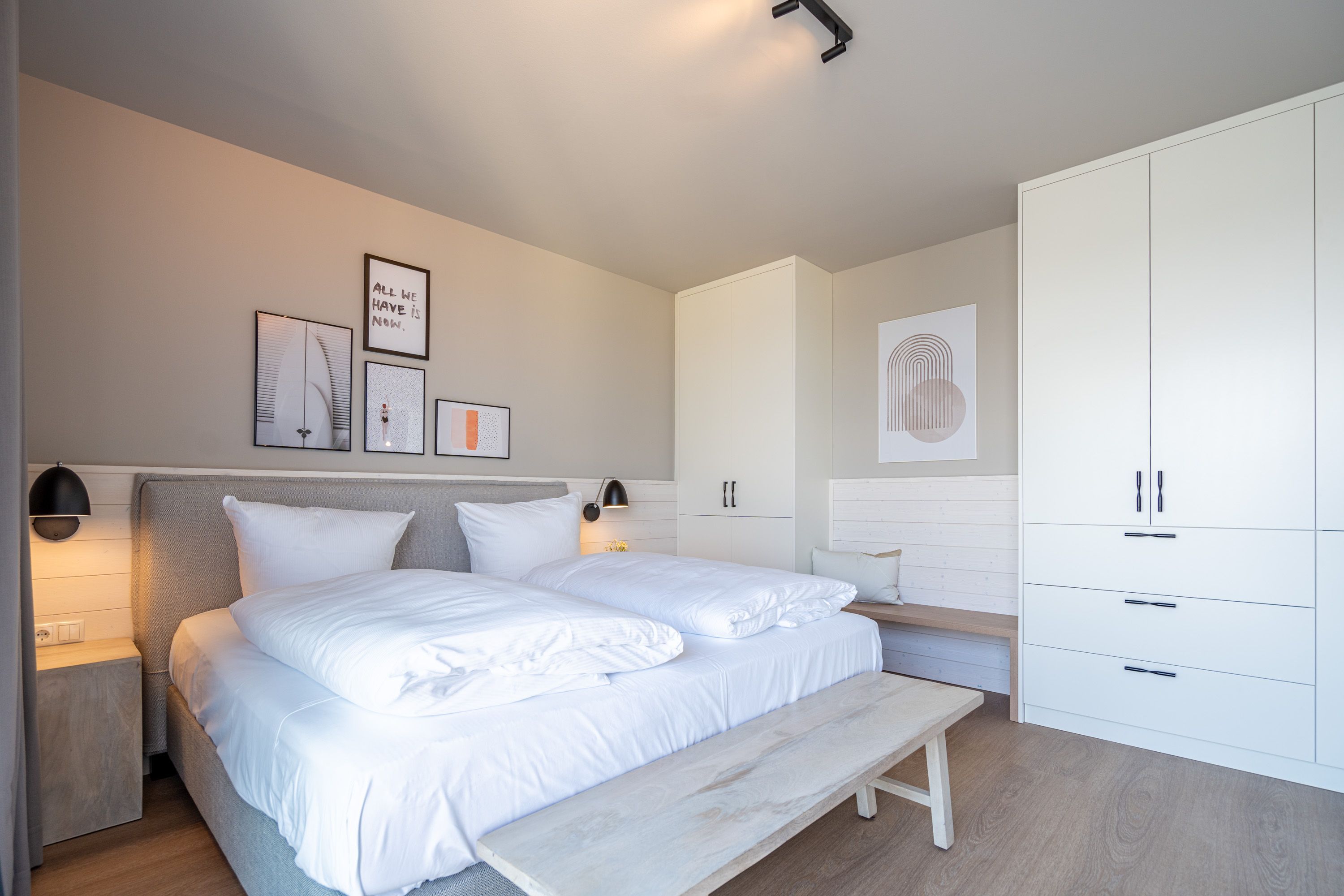 Willkommen in einem charmanten Rückzugsort an der Ostsee für bis zu 2 Personen. Das 2-Raum-Appartement B 4.3 (Haus B) im 4. Obergeschoss der Strandterrasse ist ein ganz besonderes Urlaubsdomizil. Denn es ist nicht nur unglaublich kuschelig und elegant eingerichtet, sondern bietet darüber hinaus einen atemberaubenden Blick über die Ostsee. Näher dran am Meer geht nur am Strand. Der liegt Ihnen übrigens direkt zu Füßen. Das 68 Quadratmeter große Appartement ist speziell für Paare konzipiert, die einen Faible für nordische Designmöbel haben und das gewisse Etwas lieben. Sie werden sich hier rundum wohlfühlen. Das großzügige Wohnzimmer ist mit einem schönen Sofa, einem Elektrokamin (ohne Wärmeabgabe) und einem großen Esstisch stilvoll eingerichtet. Ein aufeinander abgestimmtes Farbkonzept sorgt für eine beruhigende Atmosphäre. Der große Flat-TV (50 Zoll) ist Ihr ganz persönliches Heimkino. Machen Sie es sich hier gemütlich. Eine moderne Küchenzeile, die zum Wohnzimmer hin offen ist, bietet allen Technikkomfort, den Sie brauchen können, um köstliche Gerichte zu zaubern. Vom Backofen über einen 3-Platten-Induktionsherd, eine Geschirrspülmaschine, einen Toaster bis hin zum Wasserkocher es ist alles da. Wenn Sie guten Kaffee mögen, können Sie sich Ihren Morgenkaffee von der Nespresso-Kapselmaschine machen lassen. So starten Sie perfekt in den Tag an der Ostsee. Vom Süd-Ostbalkon aus haben Sie einen herrlichen Blick aufs Meer. Die Weite, die sich hier eröffnet, ist ein wundervoller Entschleuniger und schickt Ihre Gedanken auf Reisen. Essen bei Meeresluft, faulenzen auf der Sonnenliege auf dem großzügigen Freiluftbalkon können Sie entspannte Stunden verbringen. Auch vom Schlafzimmer aus können Sie auf den Balkon hinaustreten. Für einen erholsamen Schlaf sorgt das komfortable Boxspringdoppelbett (1,80m x 2,00m). Das Schlafzimmer ist zudem mit einem geräumigen Kleiderschrank, einem weiteren 50 Zoll Flat-TV und einem Arbeitsplatz ausgestattet. Das moderne Badezimmer verfügt über eine Dusche, einen Waschtisch, ein WC und sogar eine Infrarotsaunakabine. Die bietet wohlig warme Entspannung an kühlen Tagen. Ihr Auto steht sicher und trocken auf dem PKW-Stellplatz in der Tiefgarage. Wir wünschen Ihnen viel Freude in diesem charmanten und stilvollen Ferienappartement und einen unvergesslich schönen Ostseeaufenthalt.