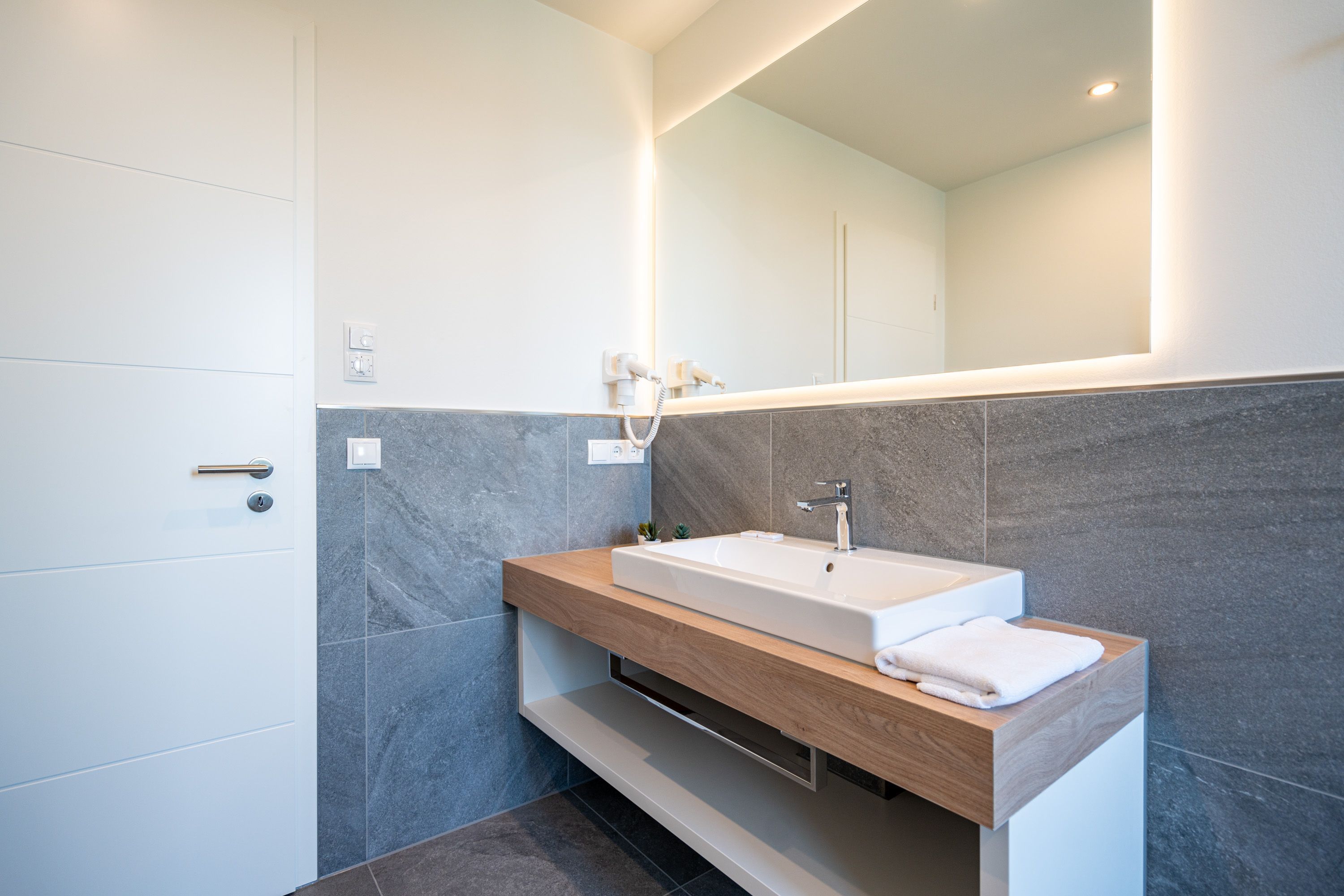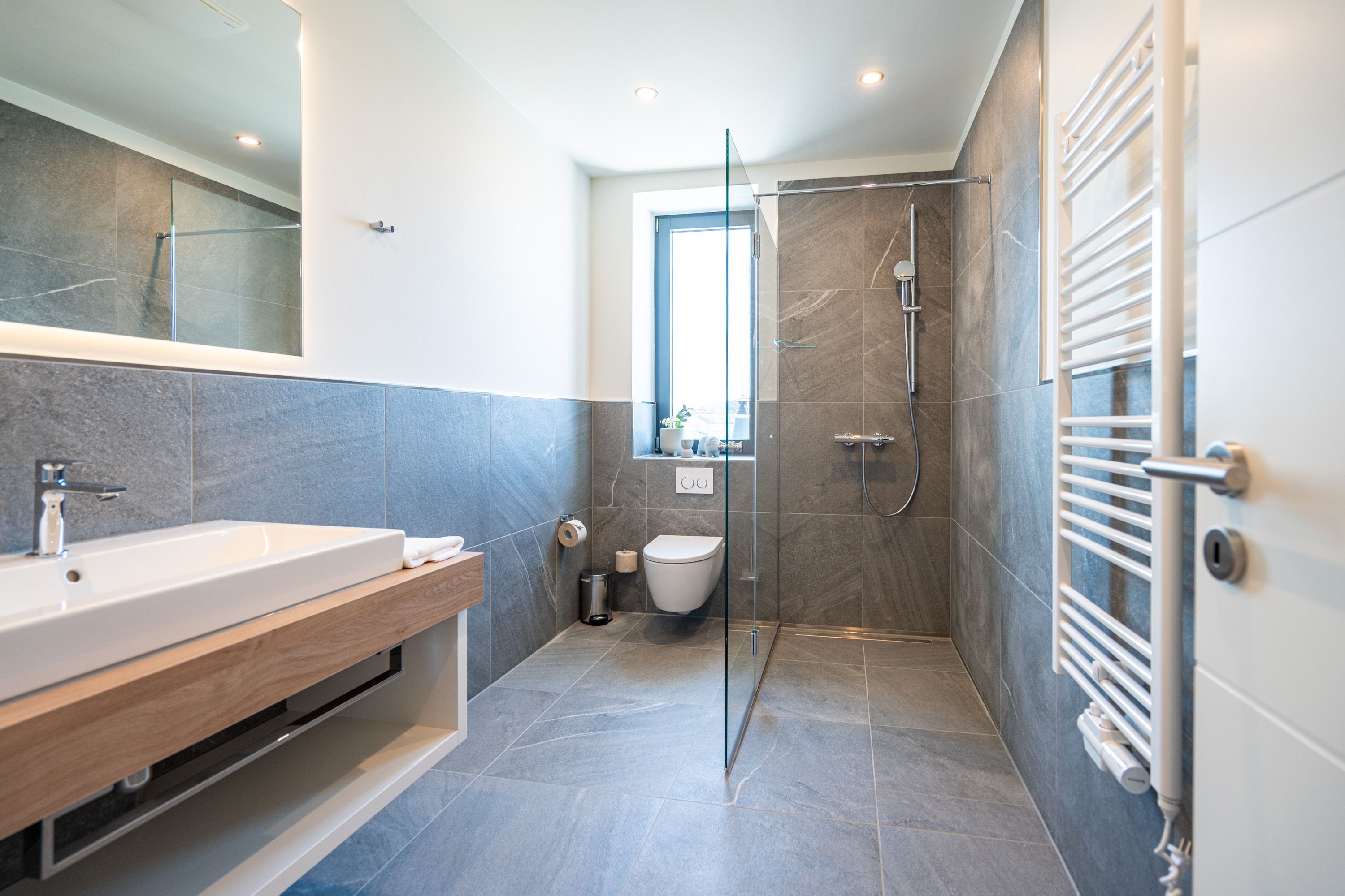 Die 2024 fertig gestellte Strandterrasse liegt direkt an der belebten Strandpromenade und bietet einen einzigartigen Ausblick auf die Grand Dame der historischen Seebrücken sowie die historische Konzertmuschel, einem beliebten Treffpunkt für Kunst und Kultur. Dahinter liegt die Ostsee ein Panorama, das zu den schönsten in den Kaiserbädern gehört. Es ist wie das Abtauchen in eine andere Zeit. In eine Zeit, in der man mit Stock, Sonnenschirm und Hut fürs Sehen und gesehen werden über die Promenade schlenderte; aber auch in eine Zeit, in der damals wie heute Zeit einmal für eine kurze Weile keine Rolle spielt. Weil man angekommen ist im Loslassen, Entspannen und Genießen. Es ist dieser besondere Geruch nach Meeresluft und Freiheit, der in Erinnerung bleibt. Dazu die Bilder, die man mitnimmt. Von langen Strandspaziergängen, vom Lachen in fröhlich schäumenden Ostseewellen, von der Zeit in einem wunderschönen Urlaubsdomizil. Denn genau das ist die Strandterrasse mit ihren 56 modernen und exklusiven Ferienappartements direkt gegenüber der Ahlbecker Seebrücke. Die Ein-, Zwei- oder Dreizimmerwohnungen zwischen 40 und 70 Quadratmeter groß sind von einer Innenarchitektin gemeinsam mit unserem Erfahrungsschatz an Gästewünschen mit viel Liebe zum Detail und ganz individuell konzipiert worden. Entspannung und Wohlfühlen stehen an erster Stelle. Alles ist aufeinander abgestimmt und sorgt für eine gemütliche Atmosphäre. Wählen Sie zwischen einem Domizil in einem hellen, sandfarbenen Designkonzept oder einem Appartement mit anthrazitfarbenen Farbakzenten. Alle Appartements verfügen gleichermaßen über eine stilvolle und komfortable Einrichtung, die passgenau angefertigt worden ist, sowie über moderne Küchen und Bäder. Jedem Schlafzimmer ist ein eigenes Bad mit Dusche zugeordnet (außer App. B4.5). Die Appartements besitzen fast alle einen Balkon viele schauen sogar zur Ostsee hinaus. Die meisten Feriendomizile haben einen Elektrokamin und Infrarotsaunen. Im Erdgeschoss befindet sich ein separater Gemeinschaftsraum für Fahrräder. Außerdem besteht die Möglichkeit, im Gemeinschaftswaschraum 2 Waschmaschinen & Trockner zu nutzen. Ergänzt wird das Angebot durch eine Gemeinschaftssauna, die täglich von 11:00 bis 22:00 Uhr nutzbar ist. In der Tiefgarage (Einfahrtshöhe 2,03 Meter) steht für jede Wohnung 1 Pkw-Stellplatz zur Verfügung. Ist alles zur Zufriedenheit untergebracht? Dann kann der Urlaub ja beginnen. Und beim Blick vom Balkon über die Ostsee treffen sich zum Sonnenaufgang das Heute und das Damals. Gelassenheit legt sich beim Gang hinunter an den Strand auf die Seele. Jetzt darf die Zeit stehenbleiben.