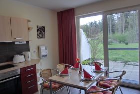 - Küche inkl. Herd mit Backofen, Mikrowelle, Geschirrspülmaschine, Kühlschrank, Kaffeemaschine, Toaster und Wasserkocher, Mikrowellengeschirr