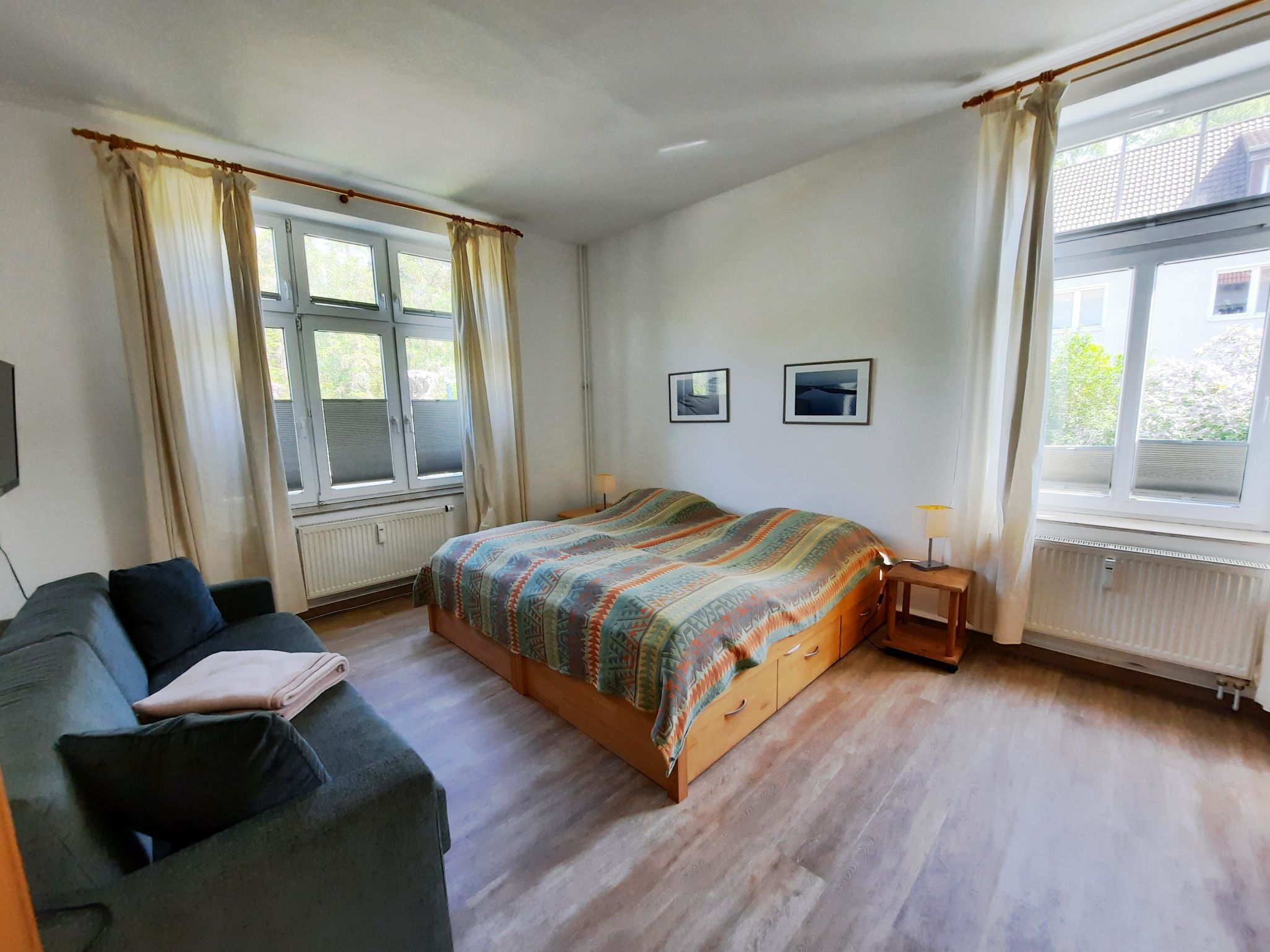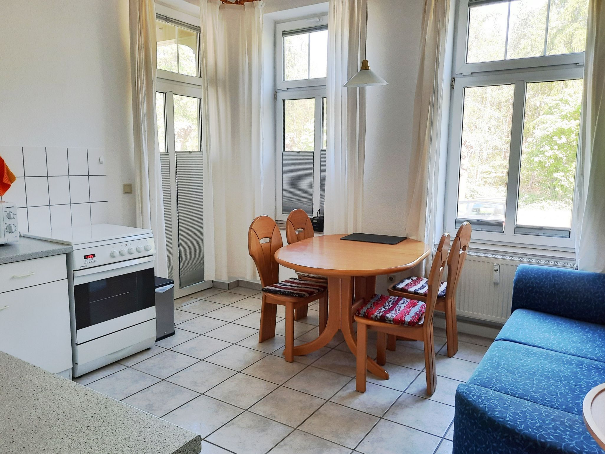 Die Ferienwohnung ist bestens für 2 bis 3 Personen geeignet und erwartet Sie mit einem gemütlichen Wohn- und Schlafbereich mit Doppelbett und Flachbild-Fernseher. Die separate Küche verfügt unter anderem über einen Herd, eine Kaffeemaschine und einen Wasserkocher und ist mit 4 Stühlen ausgestattet. Im Bad befindet sich das WC, ein Waschbecken und eine Badewanne. Der schöne Balkon mit Blick auf den Küstenwald ist von der Küche aus begehbar. Um das Haus Reinhild herum befindet sich eine Grünfläche, welche Sie mitbenutzen dürfen. Im Schuppen auf dem Gelände finden Sie Gartenmöbel für den Balkon. Ihren PKW parken Sie bequem auf dem Grundstück.
