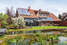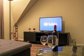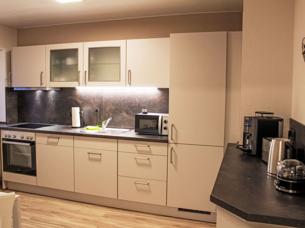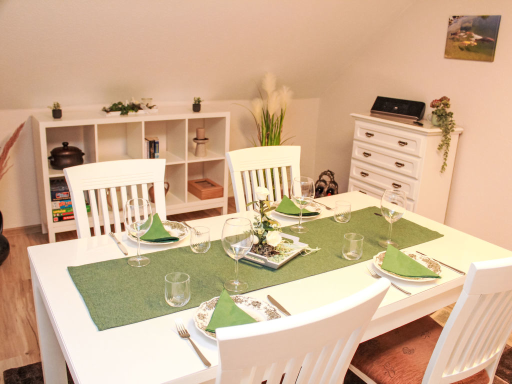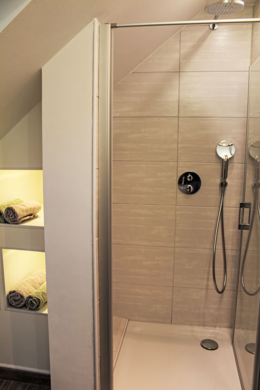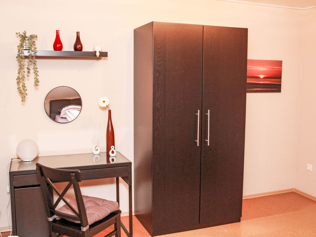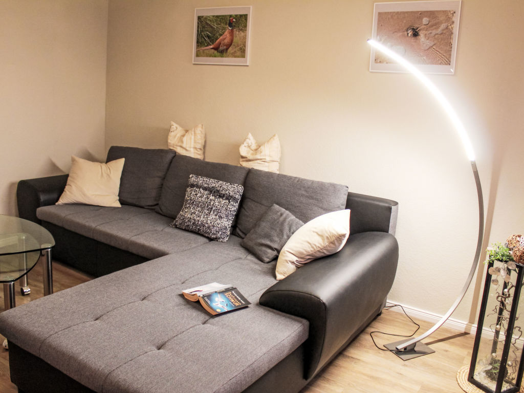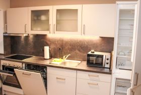 Teichblick, 3-Zimmer-Wohnung 85 m2, im Obergeschoss. Komfortabel und geschmackvoll eingerichtet: Wohnzimmer mit Kabel-TV (Flachbildschirm). Esszimmer. 1 Zimmer mit 1 Doppelbett. Grosse Küche (Backofen, Geschirrspüler, 4 Glaskeramikplatten, Toaster, Wasserkocher, Mikrowelle, Tiefkühler, elektrische Kaffeemaschine) mit Esstisch. Dusche, sep. WC. Heizung. Terrasse. Terrassenmöbel, Gartengrill, Abstellkammer. Schöne Sicht auf Gartenteich. Zur Verfügung: Fliegengitter. Internet (Wireless LAN, gratis). Parkplatz (1 Auto) beim Haus. Bitte beachten: Nichtraucher-Unterkunft. Eigener Eingang, Rauchmelder. Alle Zimmer verfügen über Außenjalousien.