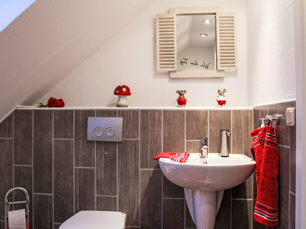 Schönes Landhaus auf 2 Stockwerken. Im Ortszentrum von Upgant-Schott, 2 km vom Zentrum von Marienhafe, 13 km vom Zentrum von Norden, 22 km vom Zentrum von Emden, ruhige Lage, 18 km vom Meer, 18 km vom Strand. Zur Mitbenutzung: Grundstück, schöner Garten mit Rasen und Pflanzen, Teich. Im Hause: Einstellraum für Fahrräder. Parkplatz. Supermarkt 2 km, Restaurant 2 km, Bäckerei 2 km, Café 2 km, Bushaltestelle Marienhafe ZOB 1.9 km, Bahnstation Marienhafe 1.7 km, Freibad 15 km, Hallenbad 2 km, Badesee Tannenhausen 25 km, See Grosses Meer 12 km. Golfplatz (18 Loch) 12 km, Surfschule 18 km. Nahe gelegene Sehenswürdigkeiten: Pilsumer Leuchtturm 15 km, Seehafenstadt Emden 20 km, Stadt Aurich 18 km, Hafen Greetsiel 15 km. Bitte beachten: Der Besitzer wohnt im selben Haus.