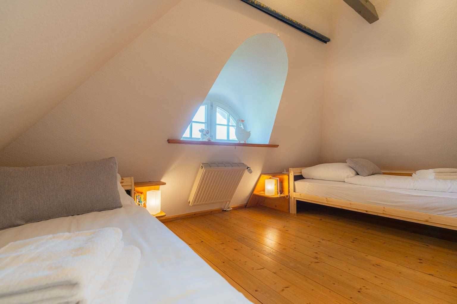 Außergewöhnliche Haushälfte Pigead's Cove unter Reet mit 2 Zimmern und ca. 79m² auf 1 Ebene (EG) für bis zu 2 Personen. Das ehemalige Künstler-Atelier, erbaut um 1850, bietet eine einmalig ruhige, naturnahe Lage direkt hinter dem Deich in Tönning. Absolute Ruhe und Entspannung finden Sie in diesem geschmackvollen, hochwertigen Wohnambiente. Zum nächsten Deichübergang sind es weniger als 100m. Genießen Sie einen herrlichen Ausblick von der Deichkrone über die Landschaft und den Fluss Eider. Gut erreichbar sind auch der Eider-Badestrand und das Meerwasser-Freibad. Die weiten Strände von St. Peter-Ording sind nur 20 Minuten mit dem Pkw entfernt.