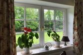 Im Wohnzimmer empfängt Sie eine bequeme Ledergarnitur im Bestzustand. Eine Tischgruppe lädt ein, um Urlaubsgrüße zu schreiben oder den Nachmittagskaffee im Sonnenlicht zu genießen. Dabei blicken Sie auf den parkähnlichen Garten. Es ist ebenso ein ansprechender Platz zum Arbeiten. Ein WLAN-Gastzugang ist nutzbar.