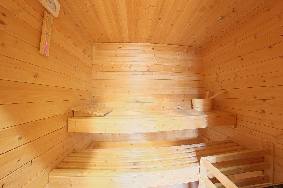 Im EG befindet sich ein Schlafzimmer mit Doppelbett und Internetradio und ein Bad mit Sauna mit Münzeinwurf. Alle Schlafzimmer und die Terrassentür haben Insektenschutz.