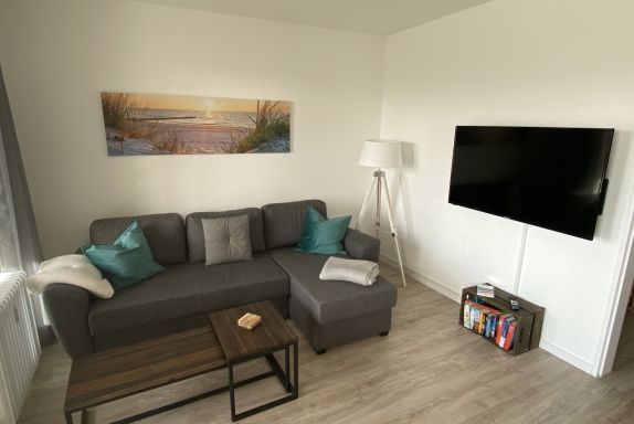 In der Wohnung Wellness-Ferienwohnung Meeresrauschen stehen Ihnen unter anderem ein großes Wohn-/Esszimmer (inkl. Schlafsofa) mit einer modern und komplett ausgestatteten Küche, 2 separate Schlafzimmer, ein TV-Gerät mit ausziehbarem TV-Arm, eine kleine Stereoanlage, ein hochwertiges Badezimmer, ein kleiner Abstellraum sowie ein möblierter Balkon zur Verfügung.