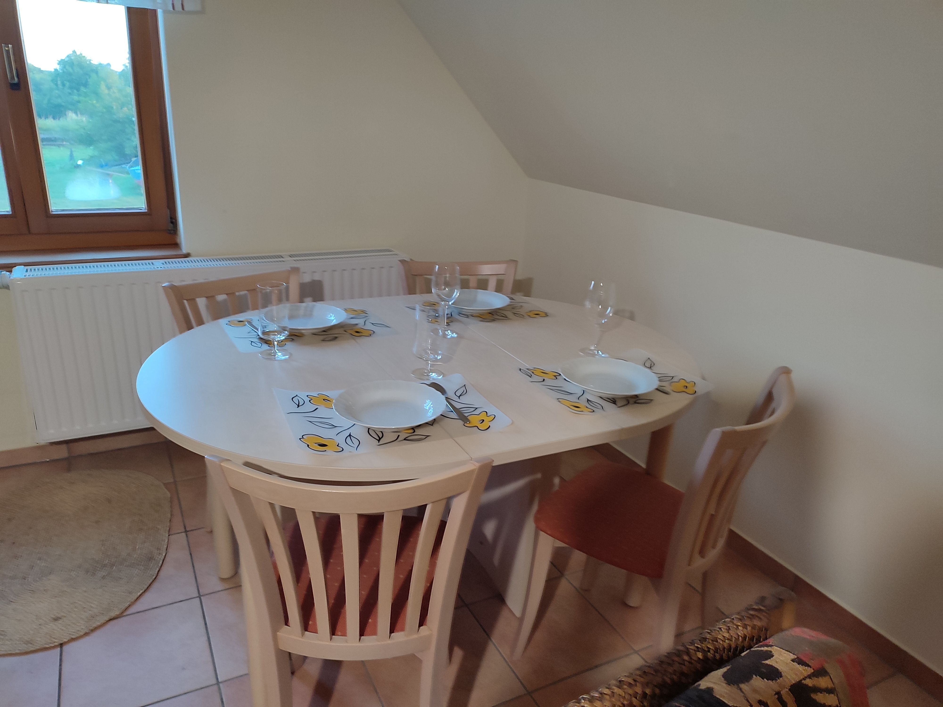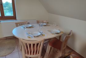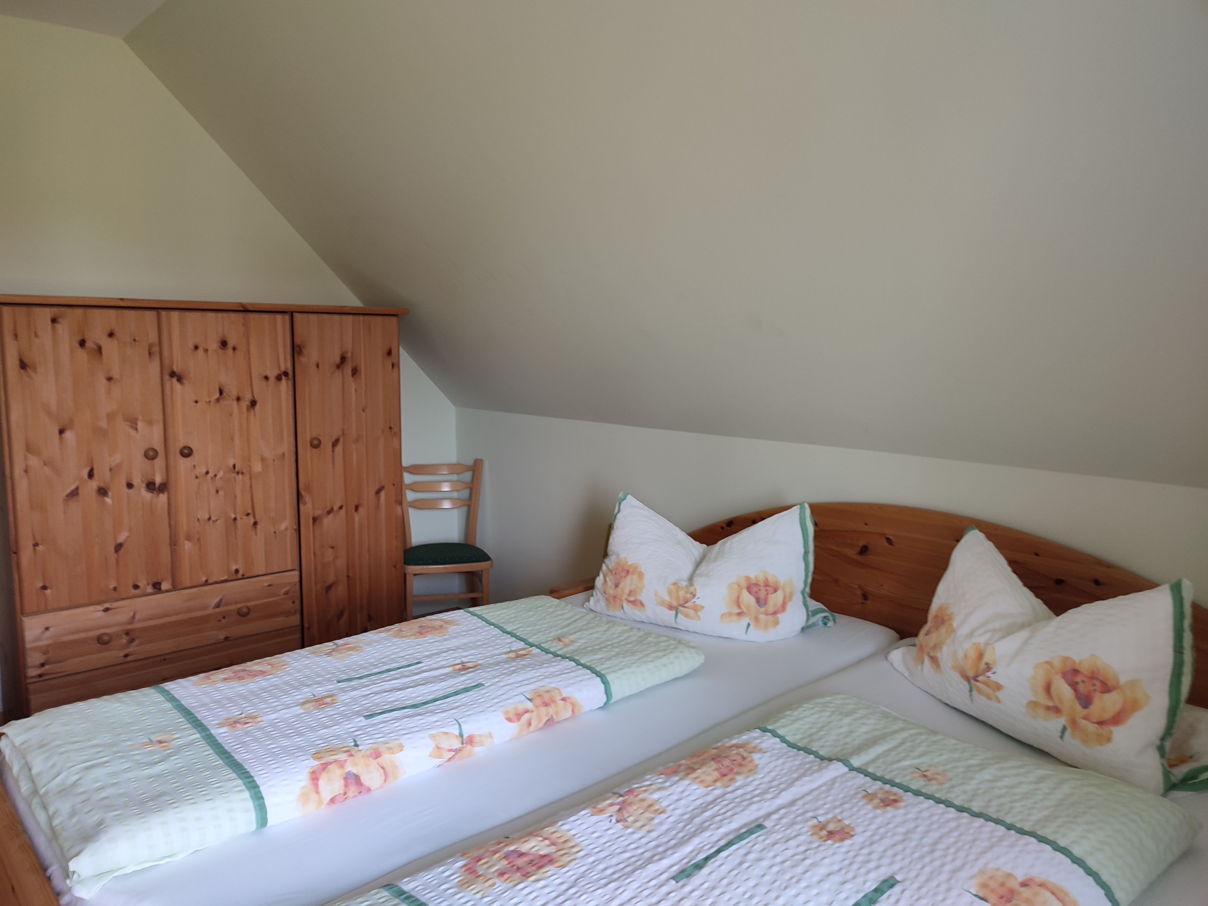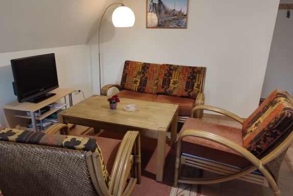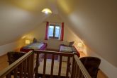 Diese 3 Raum Ferienwohnung im 1.OG verteilt sich auf 2 Etagen. Wohnzimmer mit integrierter Küchenzeile und TV. Schlafzimmer mit Doppelbett, ein Schlafzimmer mit 2 Einzelliegen ist über eine Treppe im ausgebauten Dachgeschoß zu erreichen. Eine Sitzgelegenheit im Garten mit Grillmöglichkeit ist vorhanden. PKW Stellplatz auf dem Grundstück. Handtücher bitte selbster mitbringen. Alle Nebenkosten sind im Preis inklusive!