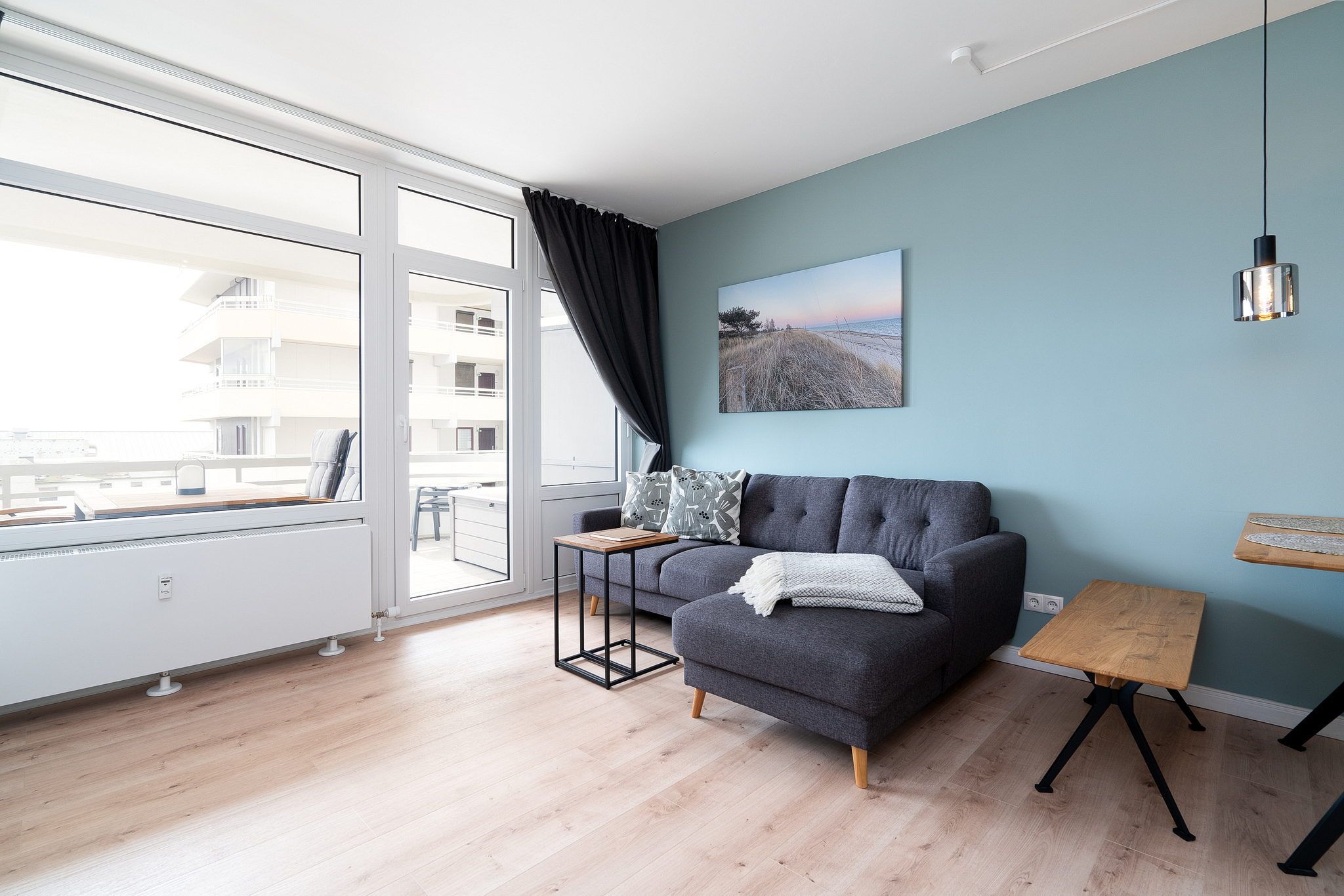 Die Wohnung befindet sich im 4. Stock im Grömitz-Center 2 (Fahrstuhl vorhanden, es führen 4 Stufen zur Wohnung)