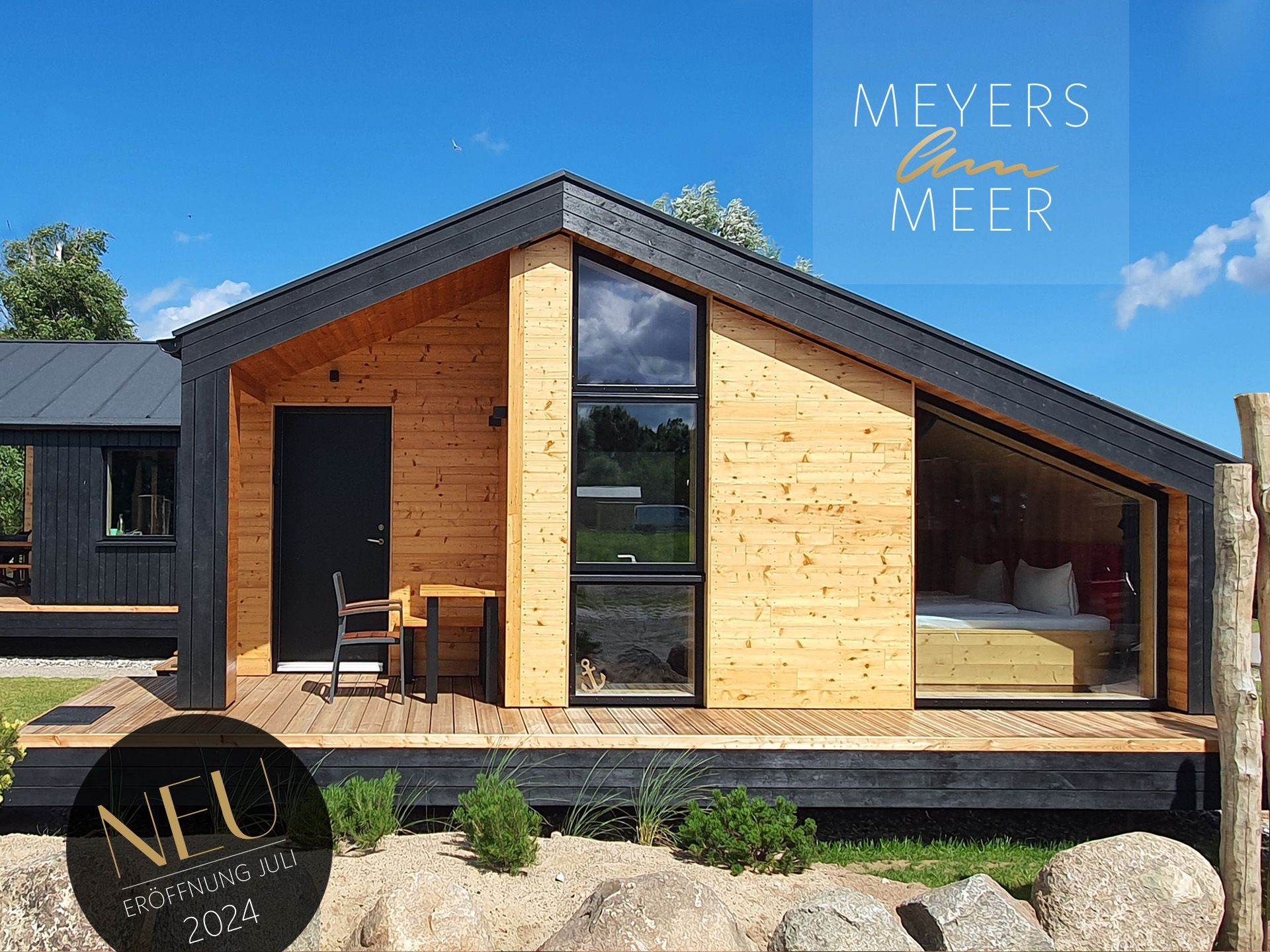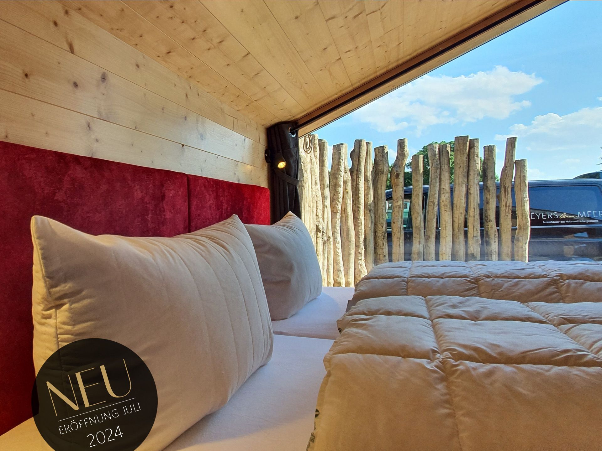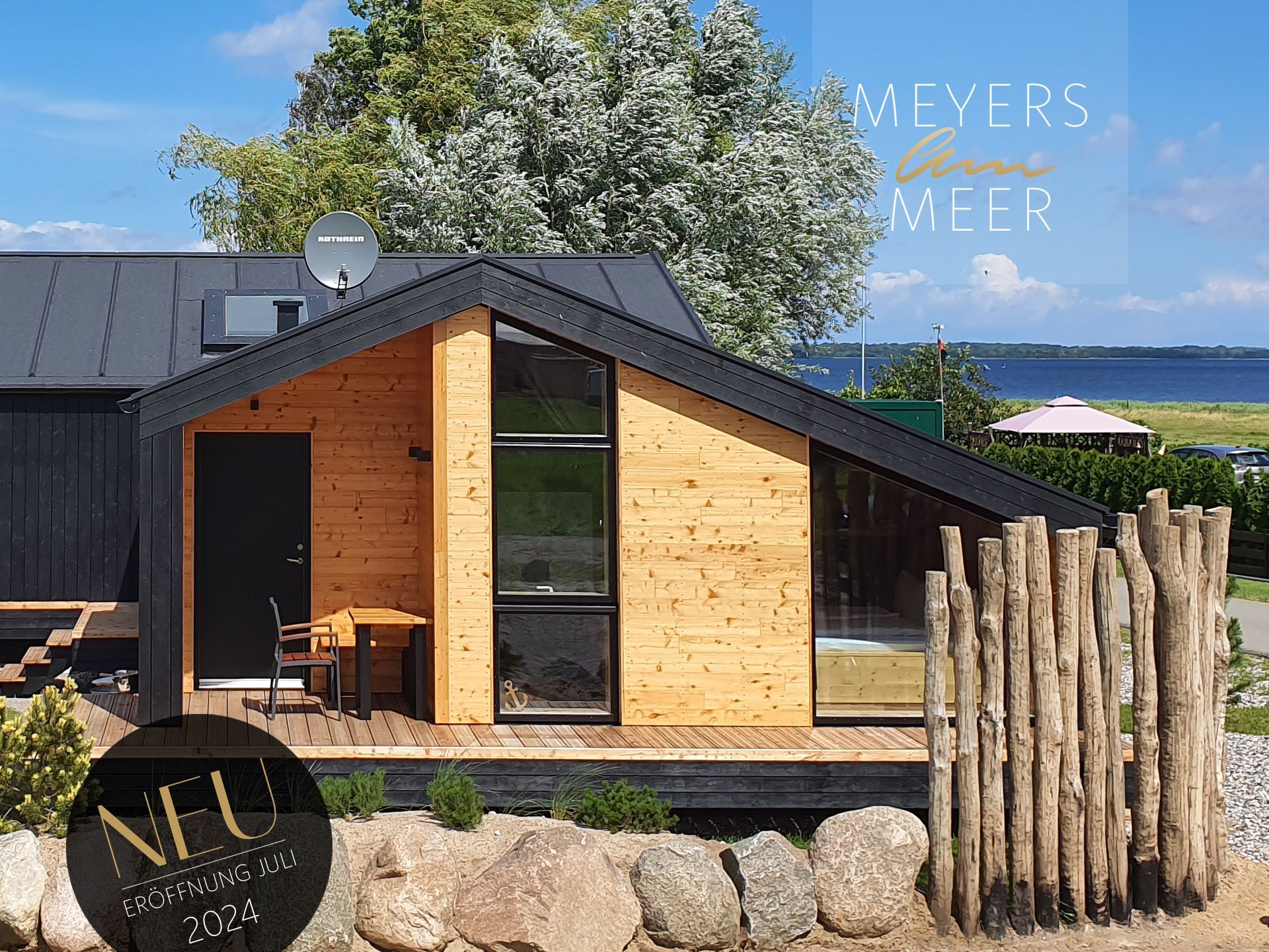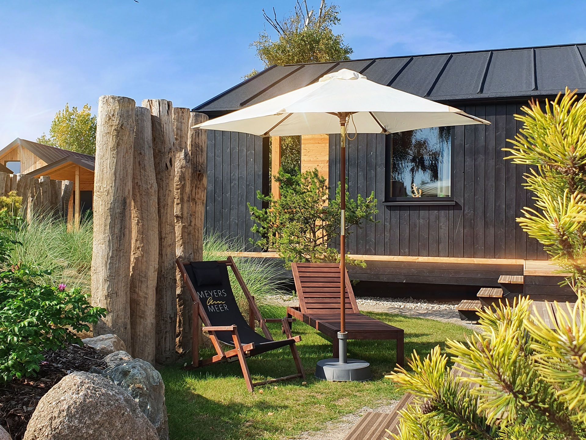 Unser neues Werder Chalet WOLKE 7 ist ein modernes 1-Raum-Holzferienhaus ideal für 2 Personen (+Kleinkind). Hier erwartet Sie eine Wohlfühl-Insel mit großem KingSize-Bett, eine umfangreich ausgestattete Küchenzeile zum Selbstversorgen, ein Wohn- und Essbereich mit Polstersitzecke und Blick auf den Elektrokamin + TV, eine freistehende Badewanne, ein kleines Duschbad mit separatem WC, sowie eine sonnige SüdOst-Terrasse umgeben von einem dünenartigen Garten.