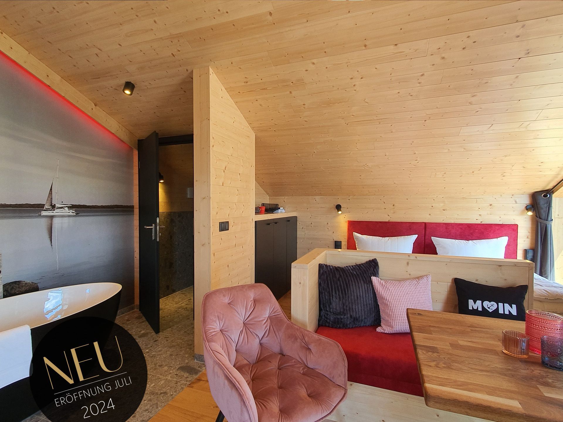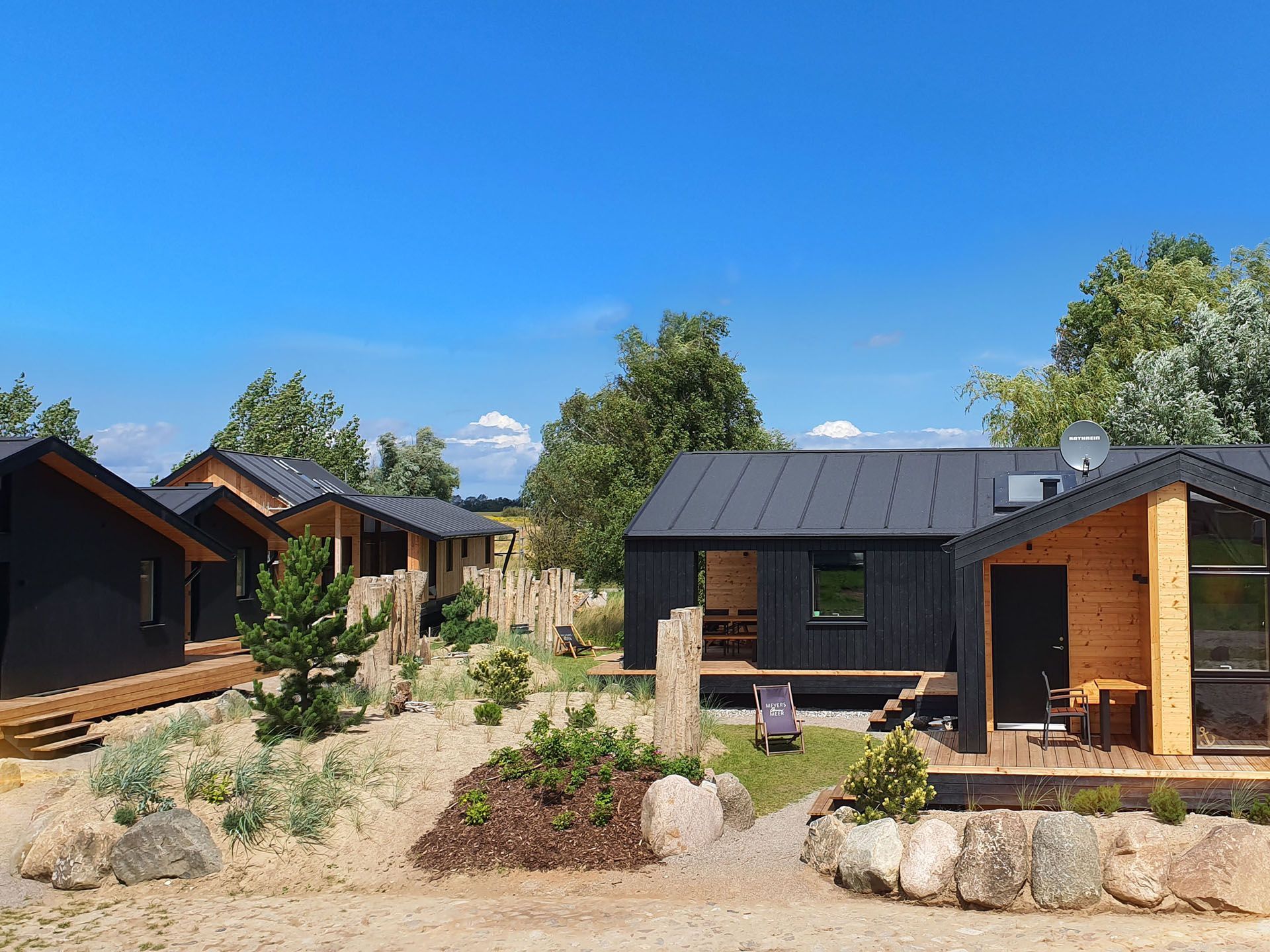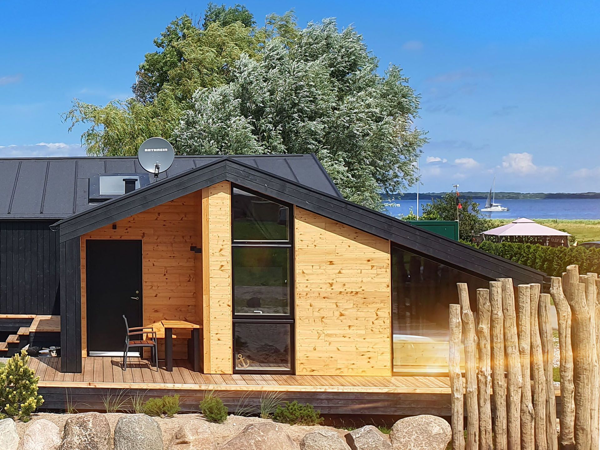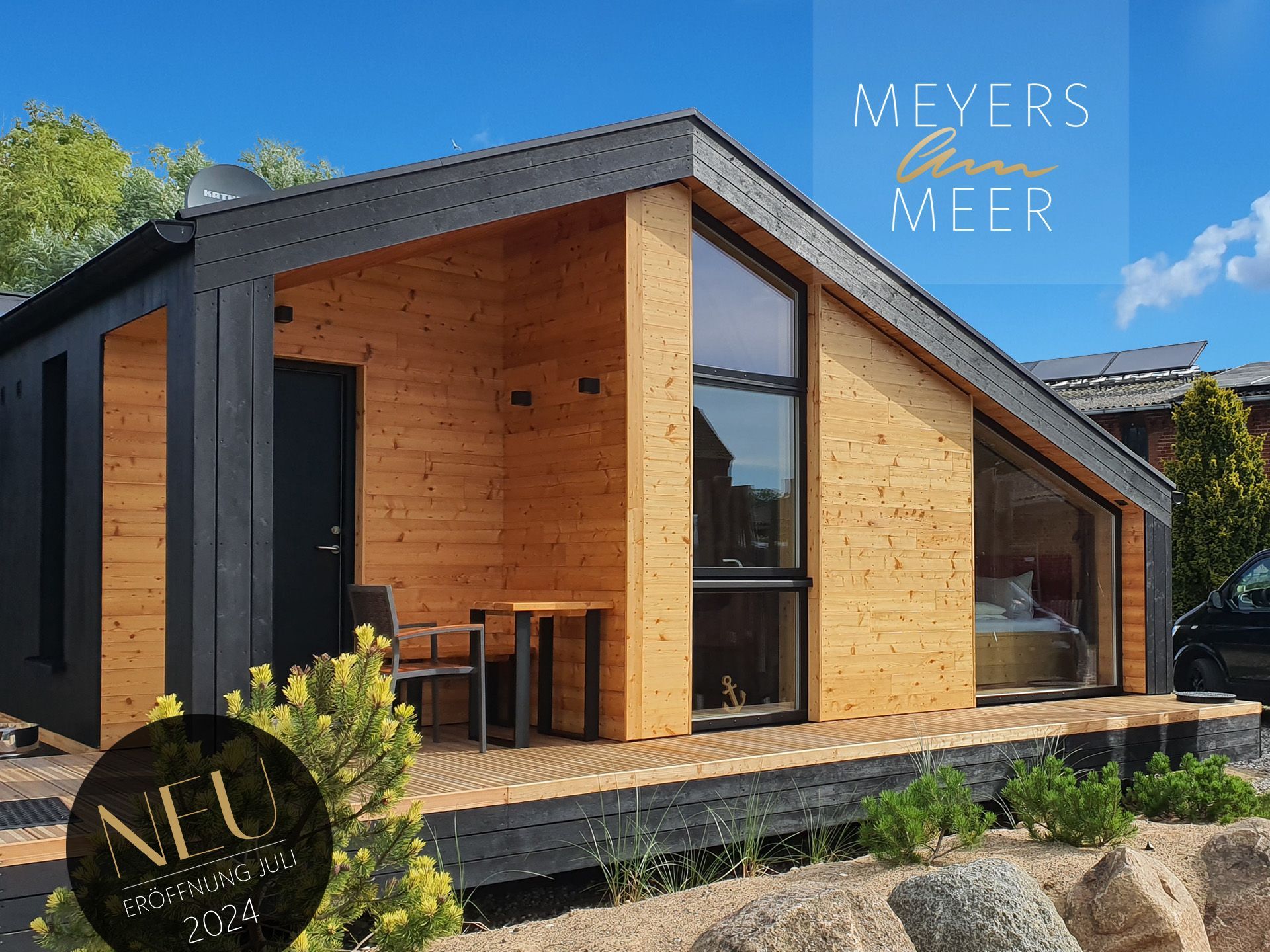 Unser neues Werder Chalet WOLKE 7 ist ein modernes 1-Raum-Holzferienhaus ideal für 2 Personen (+Kleinkind). Hier erwartet Sie eine Wohlfühl-Insel mit großem KingSize-Bett, eine umfangreich ausgestattete Küchenzeile zum Selbstversorgen, ein Wohn- und Essbereich mit Polstersitzecke und Blick auf den Elektrokamin + TV, eine freistehende Badewanne, ein kleines Duschbad mit separatem WC, sowie eine sonnige SüdOst-Terrasse umgeben von einem dünenartigen Garten.