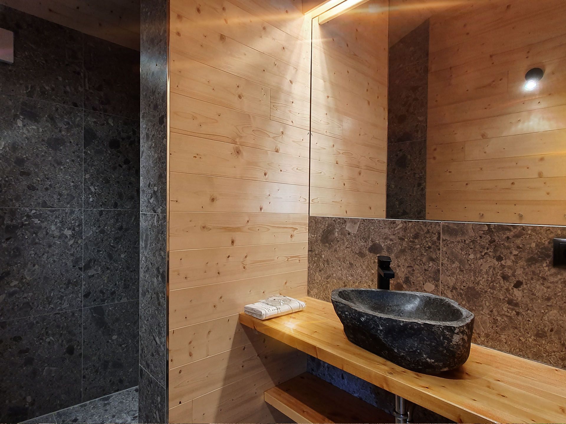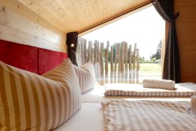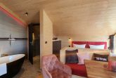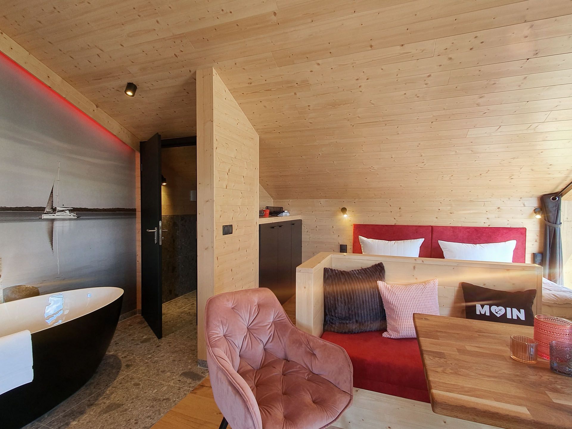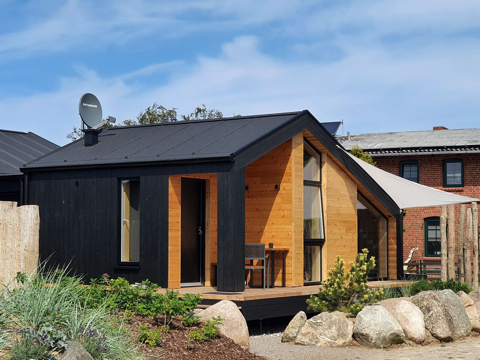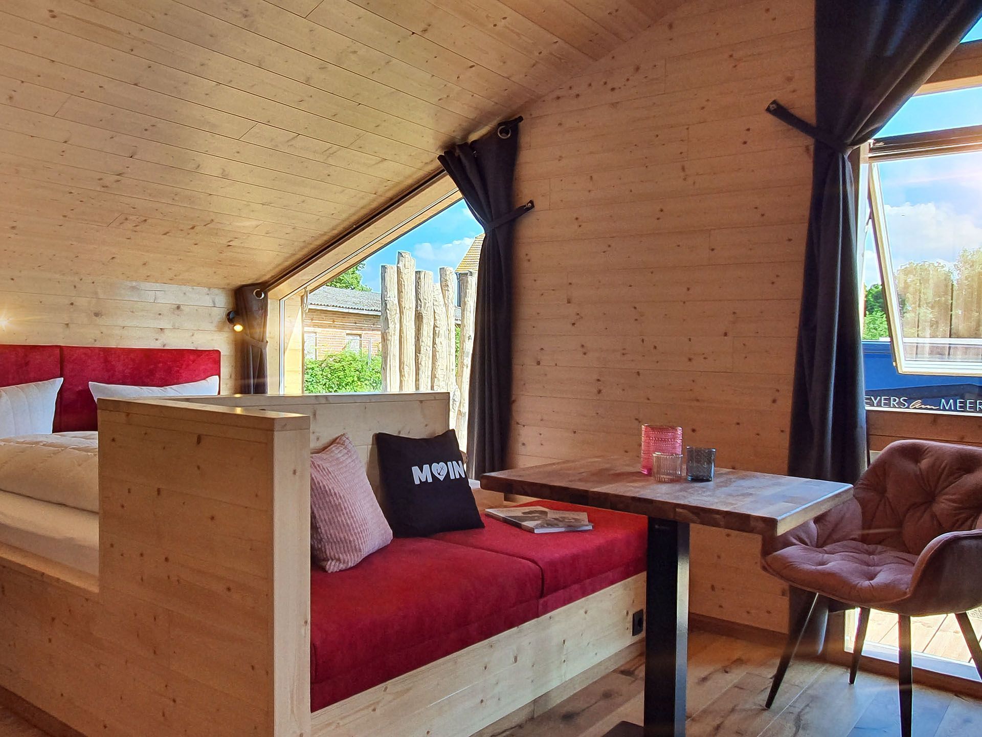 Unser neues Werder Chalet WOLKE 7 ist ein modernes 1-Raum-Holzferienhaus ideal für 2 Personen (+Kleinkind). Hier erwartet Sie eine Wohlfühl-Insel mit großem KingSize-Bett, eine umfangreich ausgestattete Küchenzeile zum Selbstversorgen, ein Wohn- und Essbereich mit Polstersitzecke und Blick auf den Elektrokamin + TV, eine freistehende Badewanne, ein kleines Duschbad mit separatem WC, sowie eine sonnige SüdOst-Terrasse umgeben von einem dünenartigen Garten.