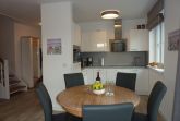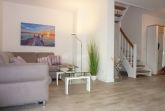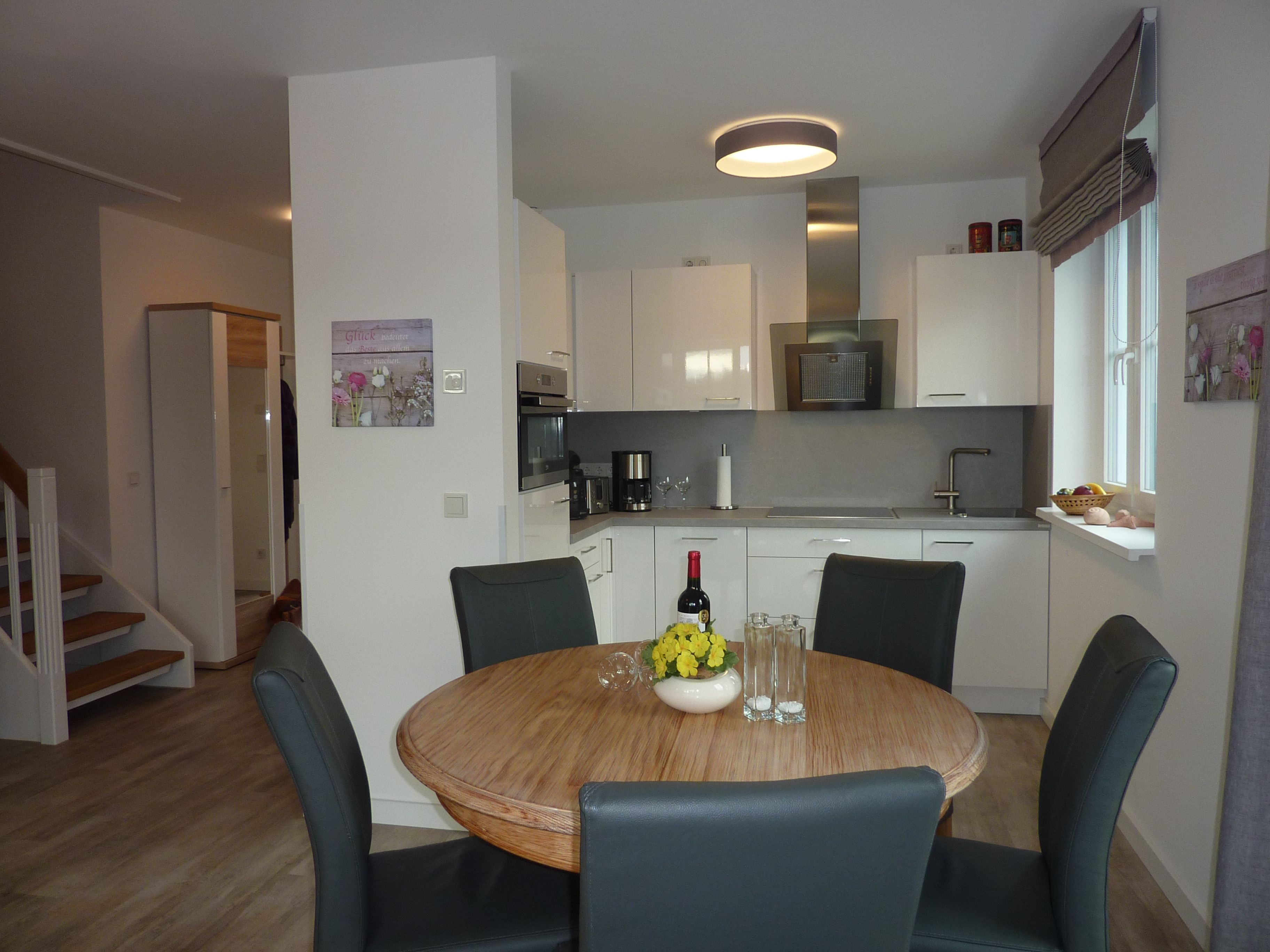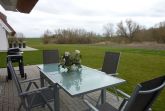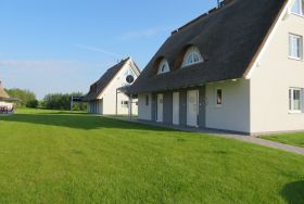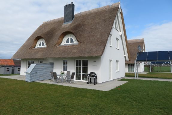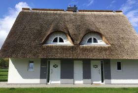 neu erbaute Reetdoppelhaushälfte (Baujahr 2020, Erstvermietung 2021) mit Flair auf großzügigem Grundstück in idyllischem Ort für Naturliebhaber, Ruhe- und Entspannungssuchende, modern eingerichtet, beide Schlafzimmer mit Doppelbetten und hochwertigen, bequemen Federkernmatratzen, Badezimmer (EG, OG) mit ebenerdiger Dusche und Tageslichtfenstern, großer Kicker und Sitzsäcke im Spitzboden, freier Blick in die Natur auf der Süd-West-Terrasse mit ausziehbarem Tisch, Premium Weber-Außengrill (Elektro) steht zur Verfügung, große Rasenfläche lädt zum Spielen ein, abschließbarer Schuppen mit Strom zum Aufladen von E-Bikes vorhanden, Waschmaschine mit integriertem Trockner kann ohne Zusatzkosten genutzt werden, Naturstrand ist fußläufig in ca. 10-15 min zu erreichen, zwei Surfschulen (auch Kitesurfen) in der Nähe