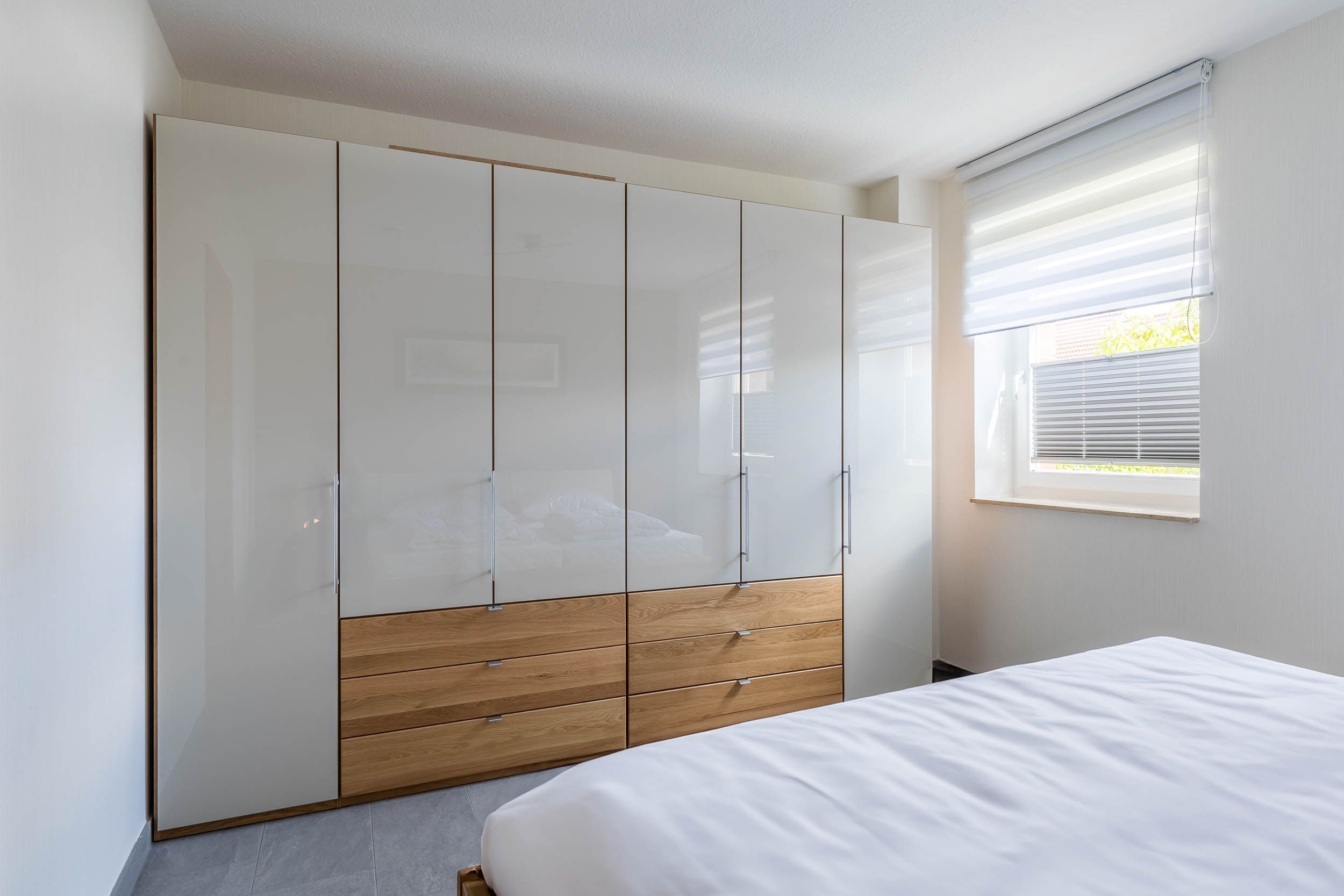 In der Wohnung gibt es ein separates Schlafzimmer. Hier befindet sich das bequemes Doppelbett (180x200m )und ein großer Kleiderschrank.