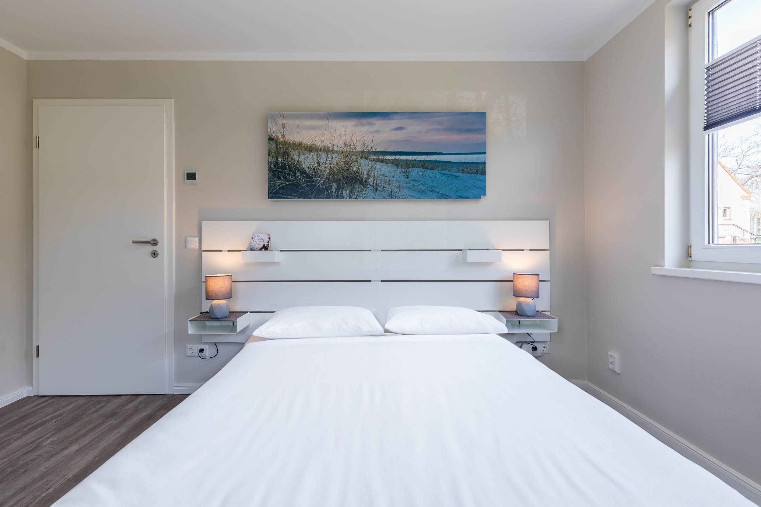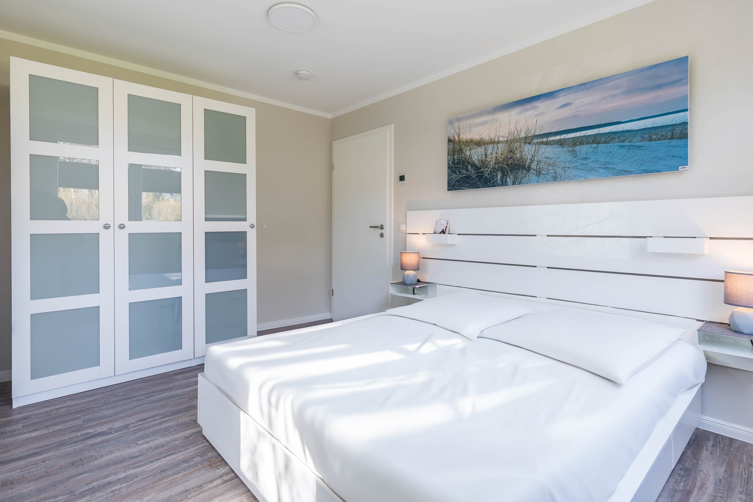 Im Schlafzimmer erwartet Sie ein bequemes Doppelbett für erholsame Nächte und ein großer Kleiderschrank bietet ausreichend Platz für Ihre Urlaubsgarderobe.