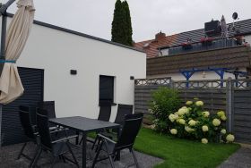 Unser modern gestaltetes Ferienhaus verfügt über 2 Schlafzimmer mit Doppelbett, ein gemütliches Wohnzimmer mit integrierter Küchenzeile, ein Badezimmer mit Dusche und WC und eine gemütliche Terrasse. In Kürze wird die Garage nutzbar sein. Ein Stellplatz befindet sich auf dem eingezäunten Grundstück.