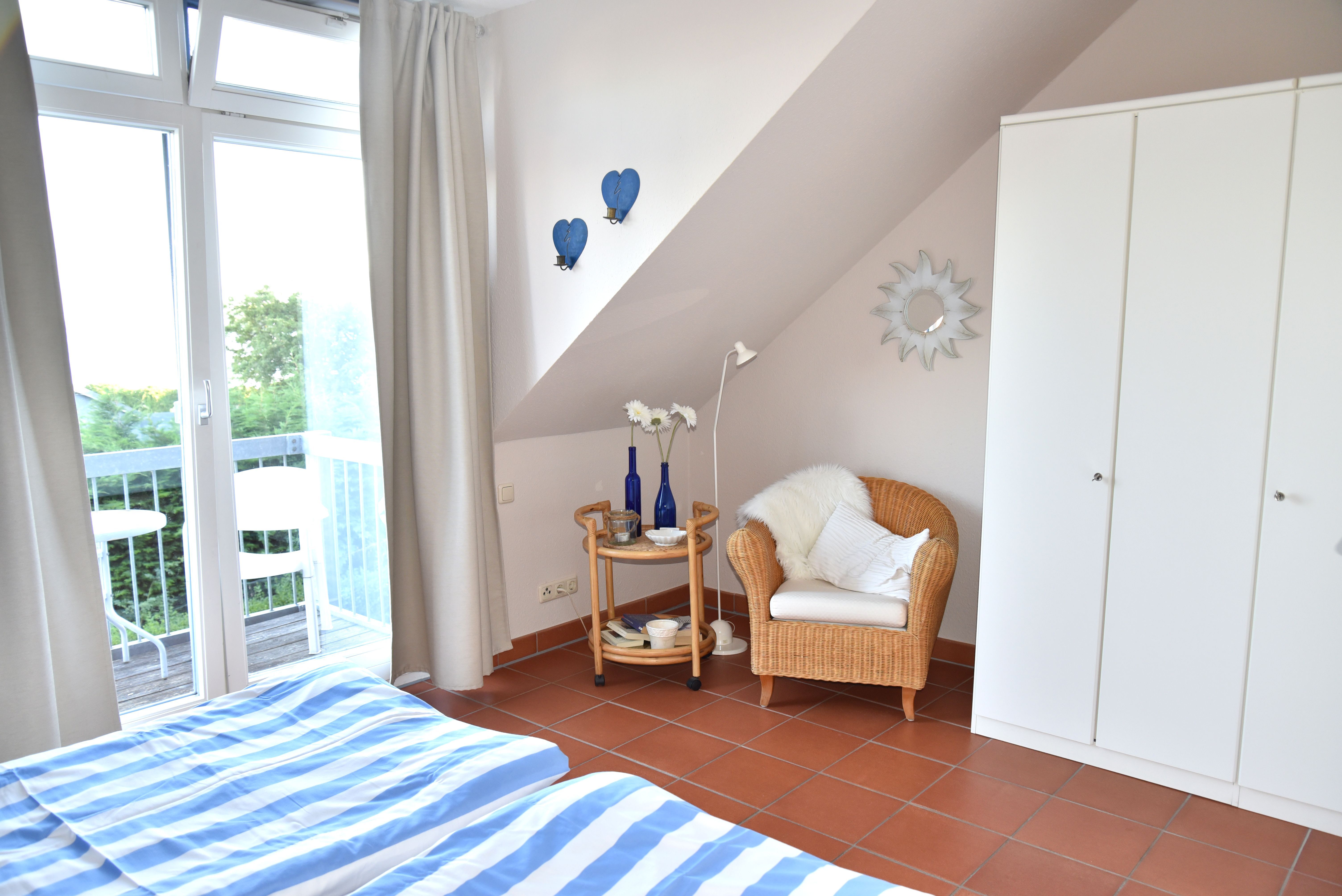 - Terrasse, Balkon/ Haffblick, Grill
