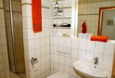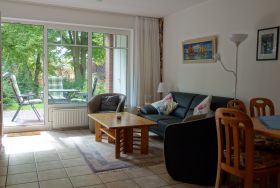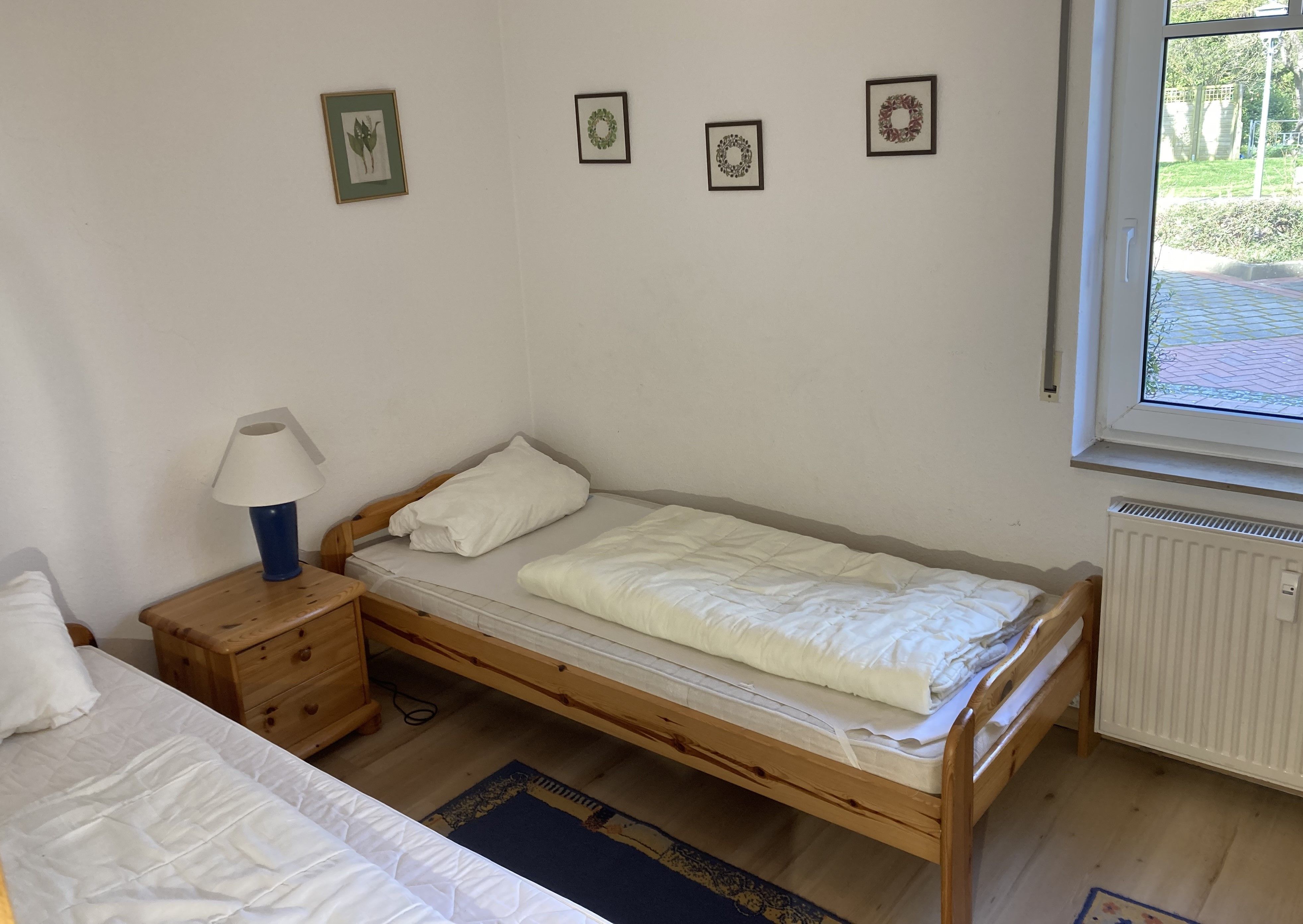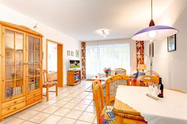 3-Zimmer Komfort-Ferienwohnung 63qm im Erdgeschoß mit Terrasse zur Südseite (mit Tisch und Stühlen), 1 gr. EWZ mit komplett eingerichteter Küche, 1 Schlafz. mit Doppelbett, 1 Schlafzimmer mit 2 Einzelbetten, 1 DU/WC, 1 WC, Kinderbett und -hochstuhl, eigenes kostenfreies WLAN. Damit Sie es sich richtig gutgehen lassen können, haben wir die Betten bezogen und Ihnen Handtücher hingelegt.