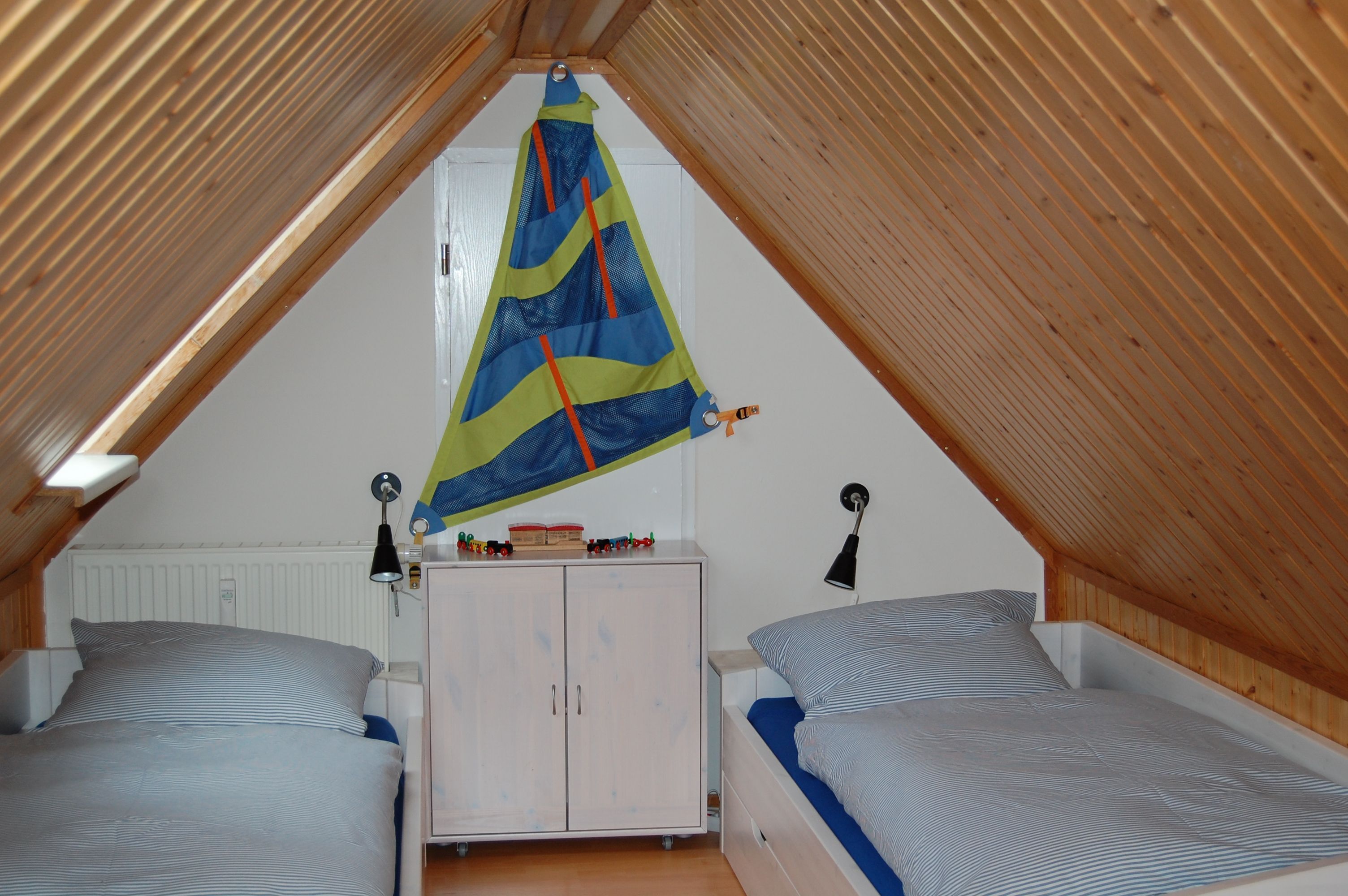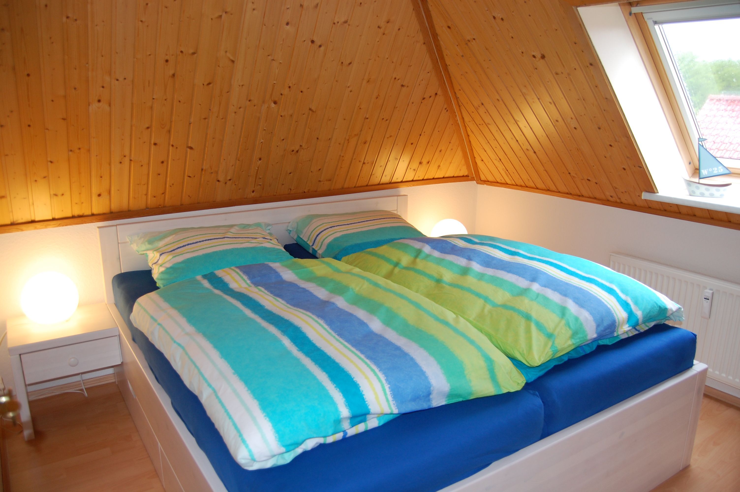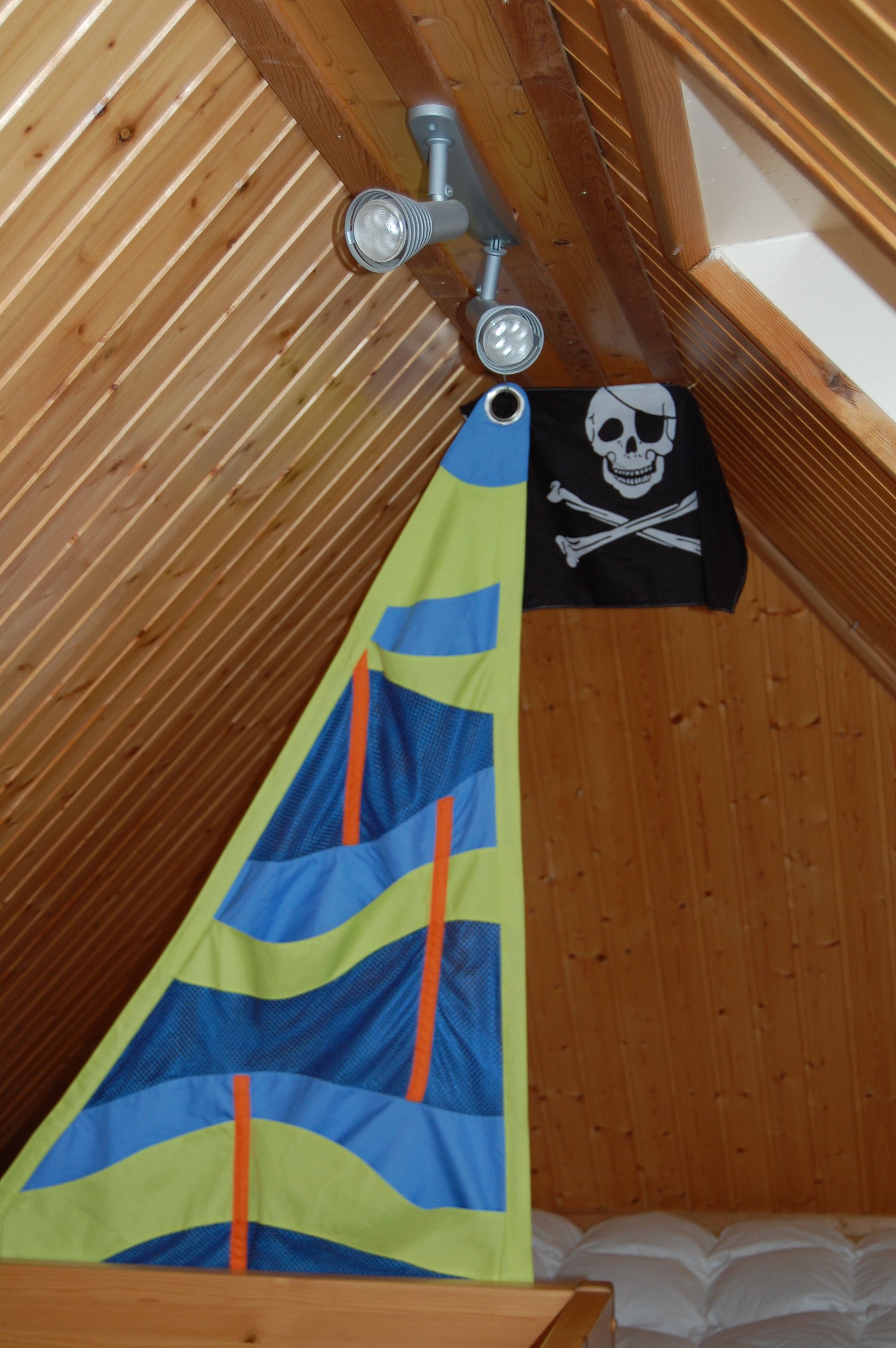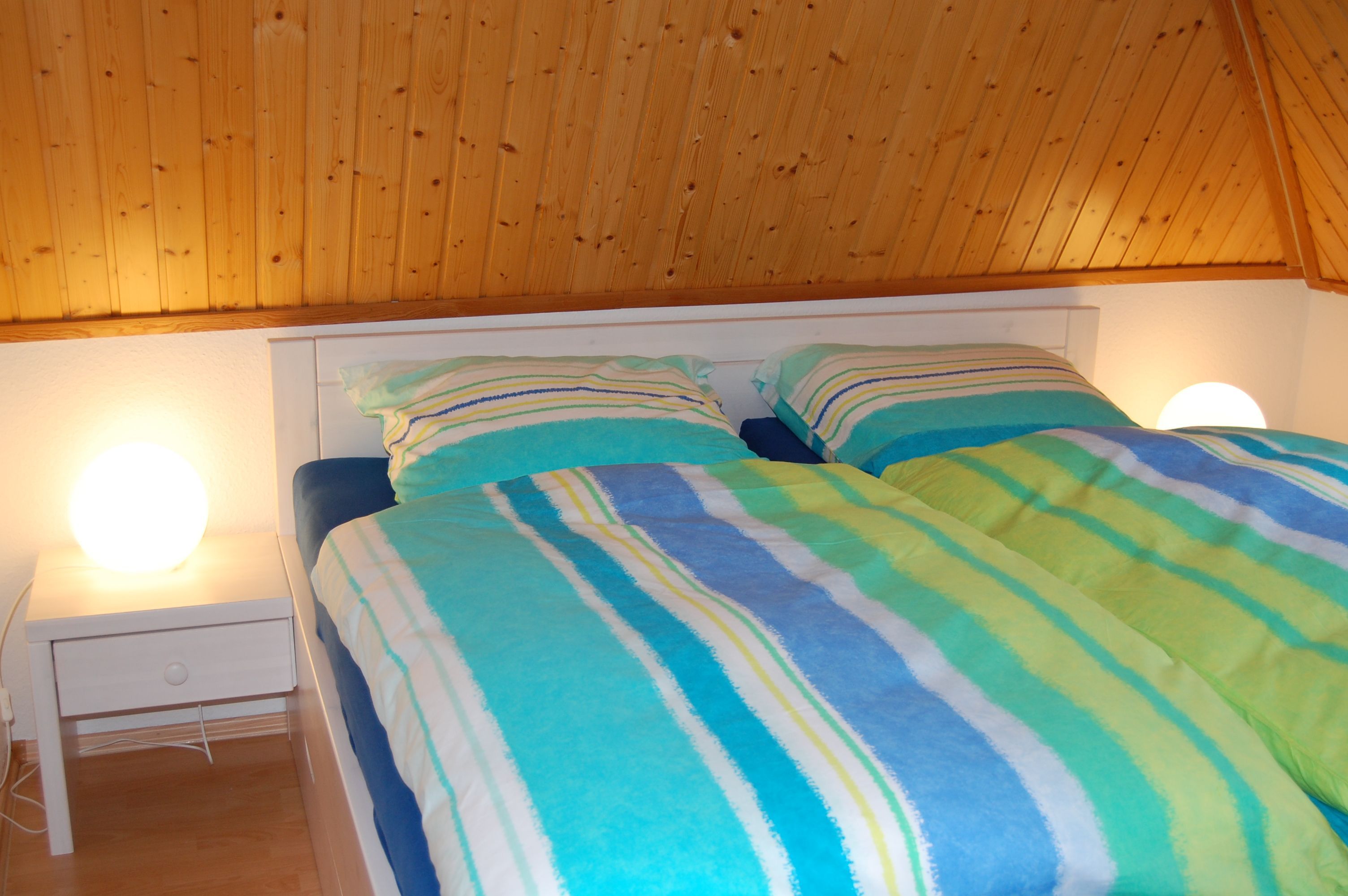 Unser, über die im Wohnzimmer befindliche Wendeltreppe erreichbares, Piratennest bietet Platz für 3 Personen in Einzelbetten - ob Groß oder Klein. Das untere Schlafzimmer verfügt über ein komfortables Doppelbett mit höhenverstellbaren Kopf- und Fussteilen in den Lattenrosten.