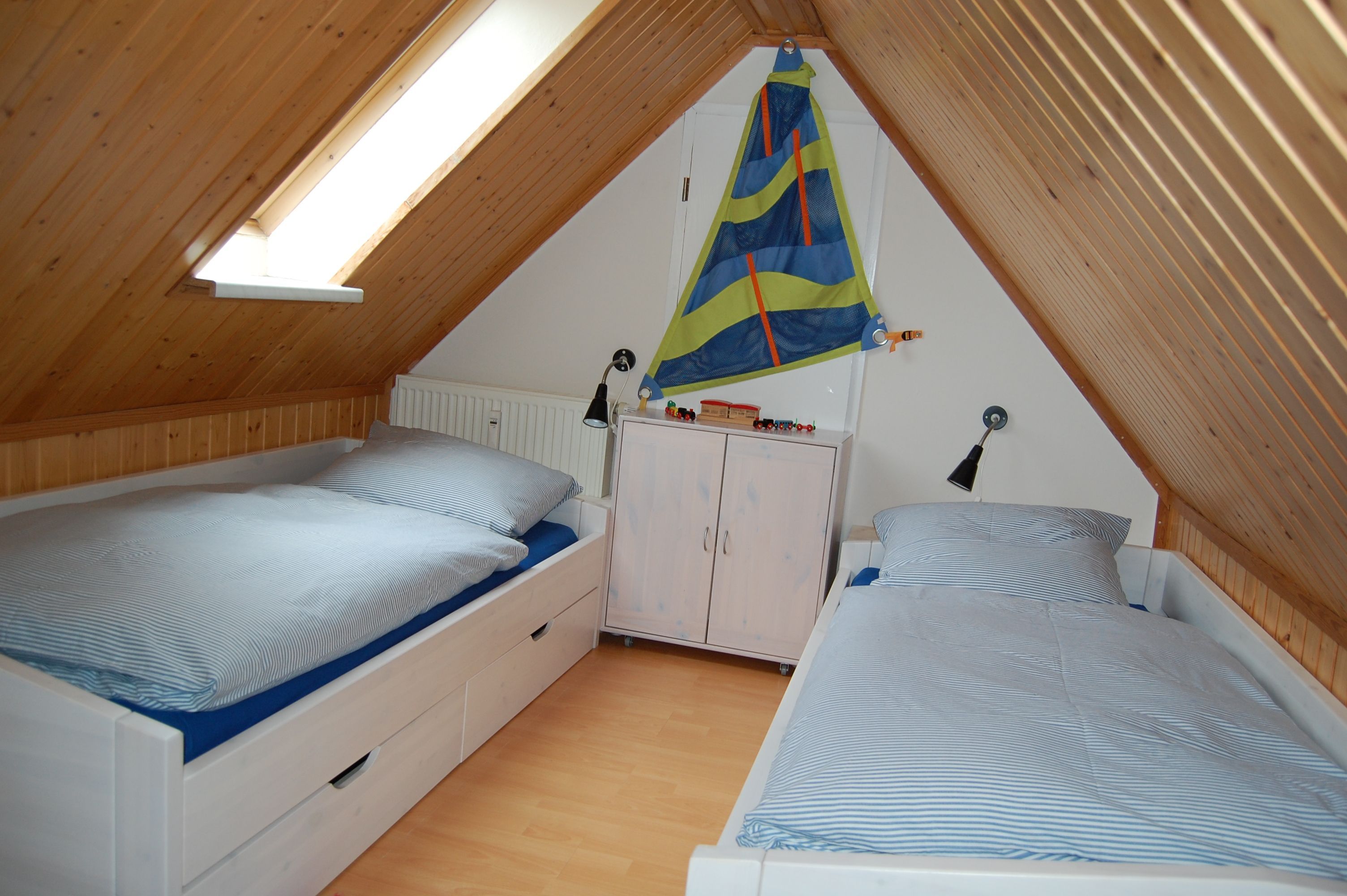 Mit den 2 separaten Schlafzimmern eignen sich die Ferienwohnungen auch hervorragend für Familien mit Kindern. In einem Schlafraum befindet sich ein Doppelbett. Das andere Schlafzimmer ist über eine attraktive Wendeltreppe vom Wohnbereich aus erreichbar und ist mit 3 Einzelbetten ausgestattet.