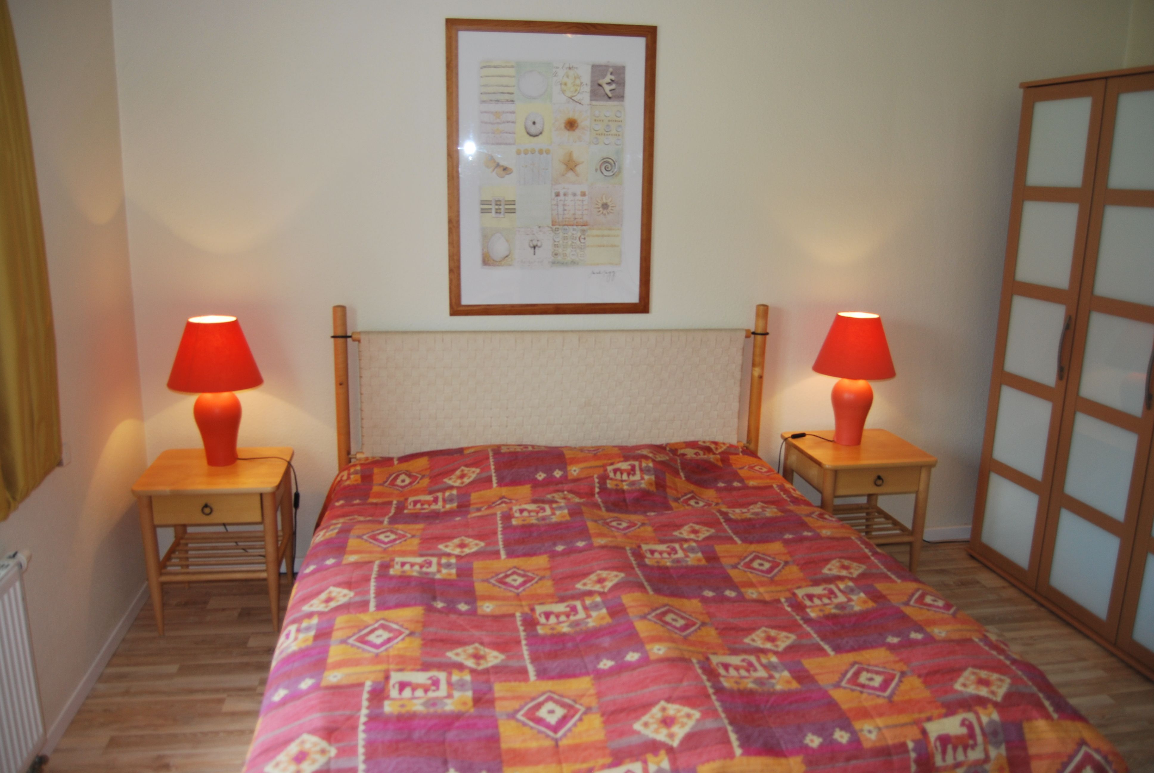 Das Schlafzimmer mit einem reellen Doppelbett (2x1,8m) bietet ausreichend Schrankraum und einem zum Zusatzbett verwandelbarer Sessel. Das WC / Duschbad ist bequem und, funktional.Die geschützte und teilweise überdachte Terrasse lädt zum Frühstück ein.