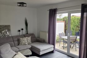 Im Erdgeschoss befindet sich der Wohnraum mit Couchecke, Flachbild-TV sowie dem Ausgang zur Süd- West- Terrasse mit Gartenmöbeln.