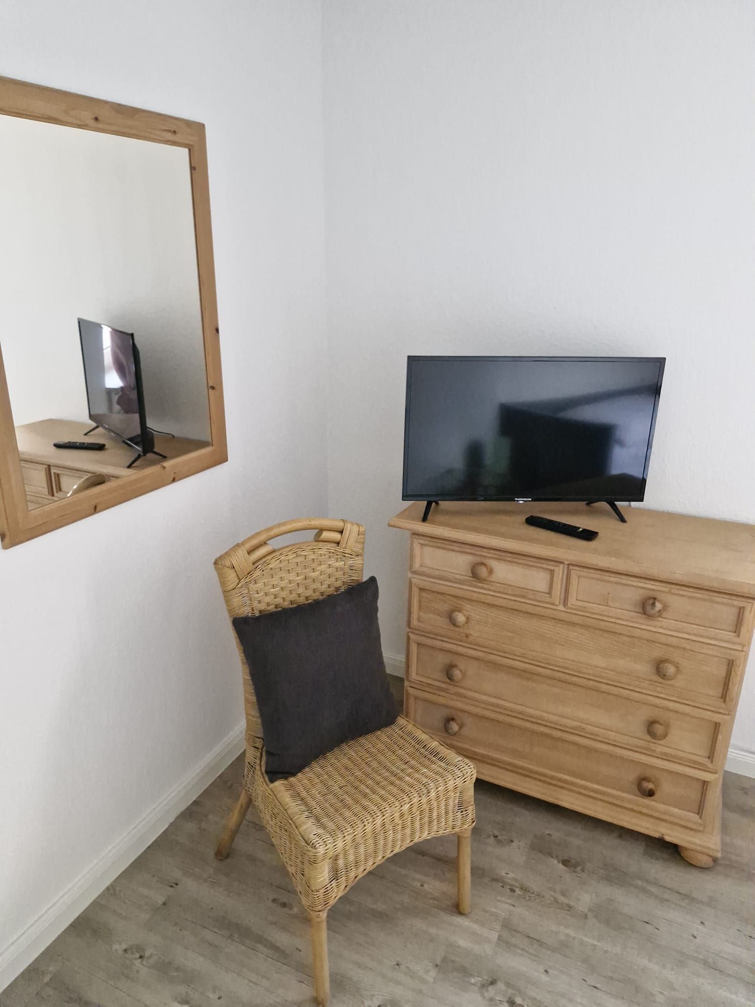 Im einem Schlafzimmer befindet sich ein Boxspringbett mit durchgehender Matratze und im zweiten Schlafzimmer zwei Einzelbetten und ein weiterer Flachbild-TV.