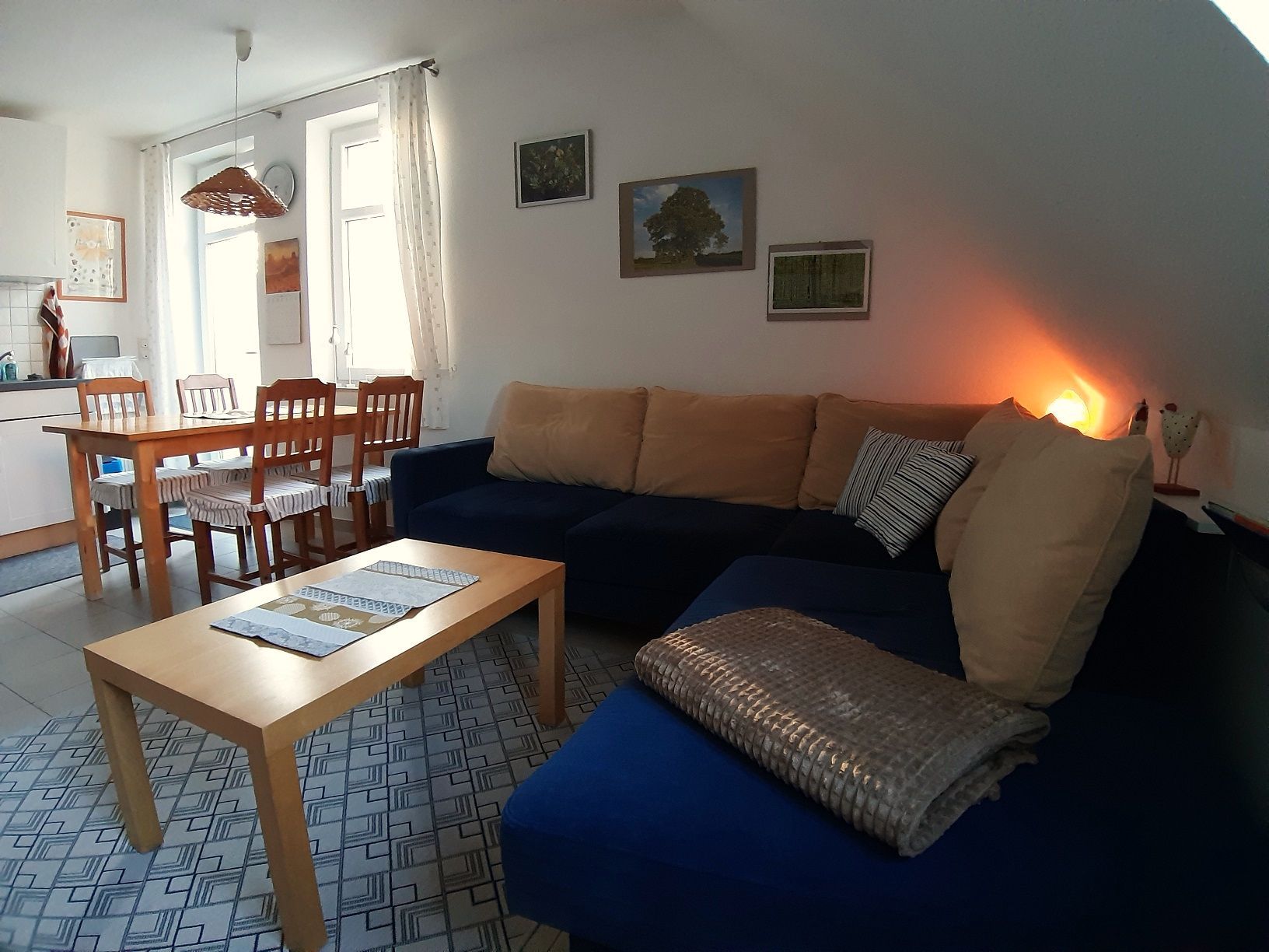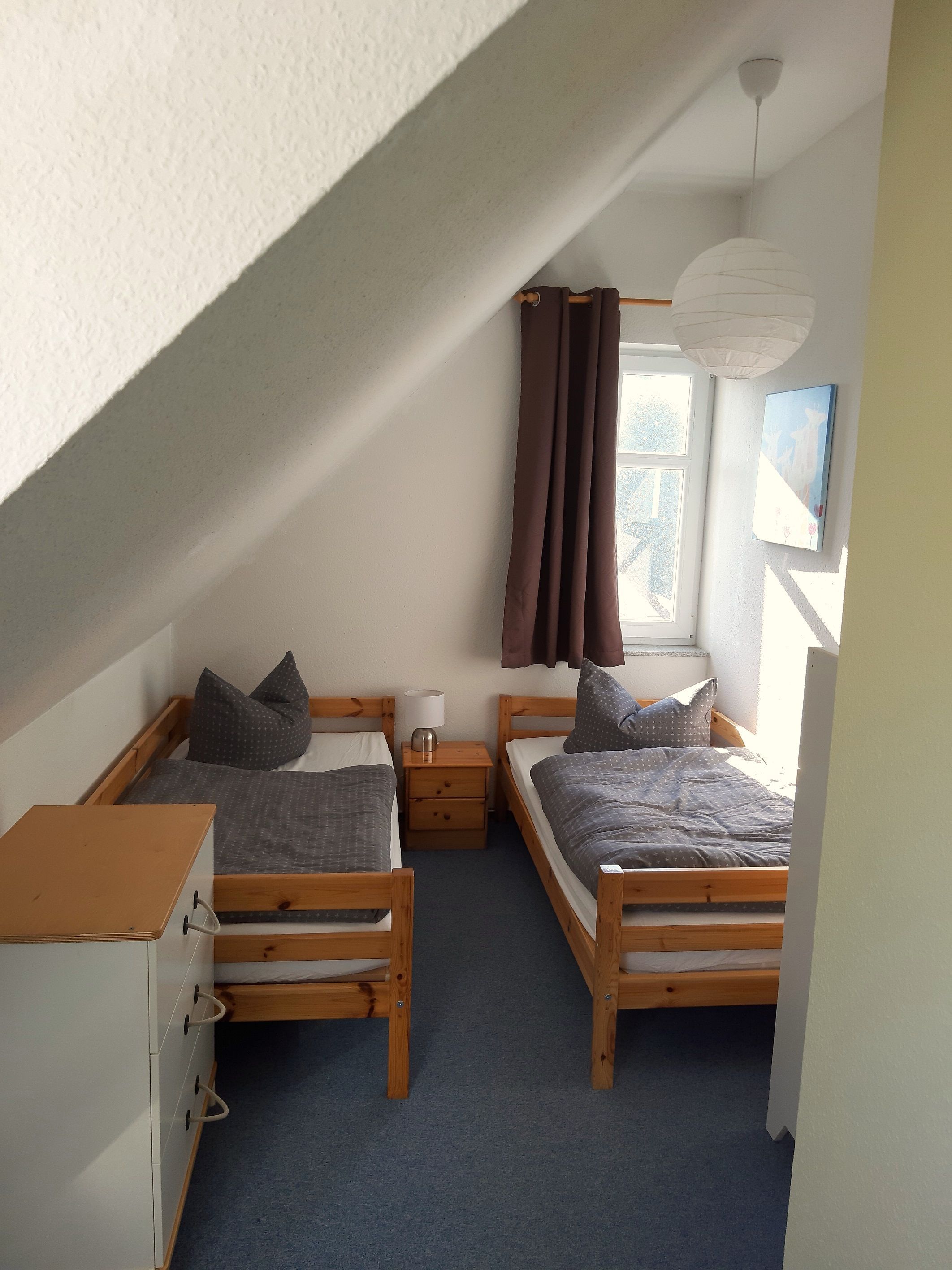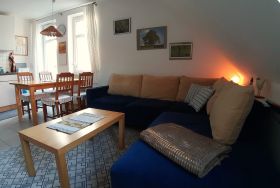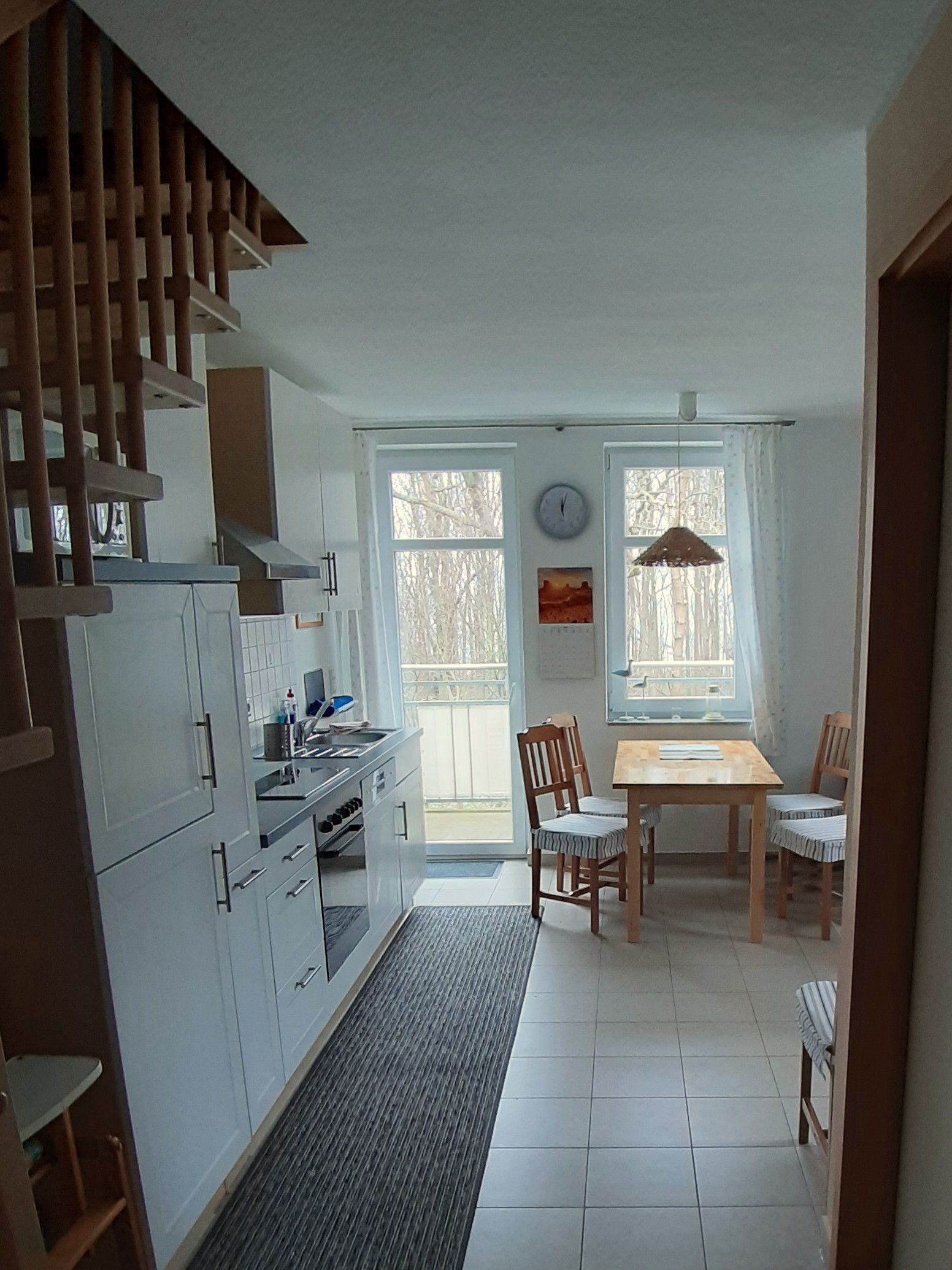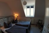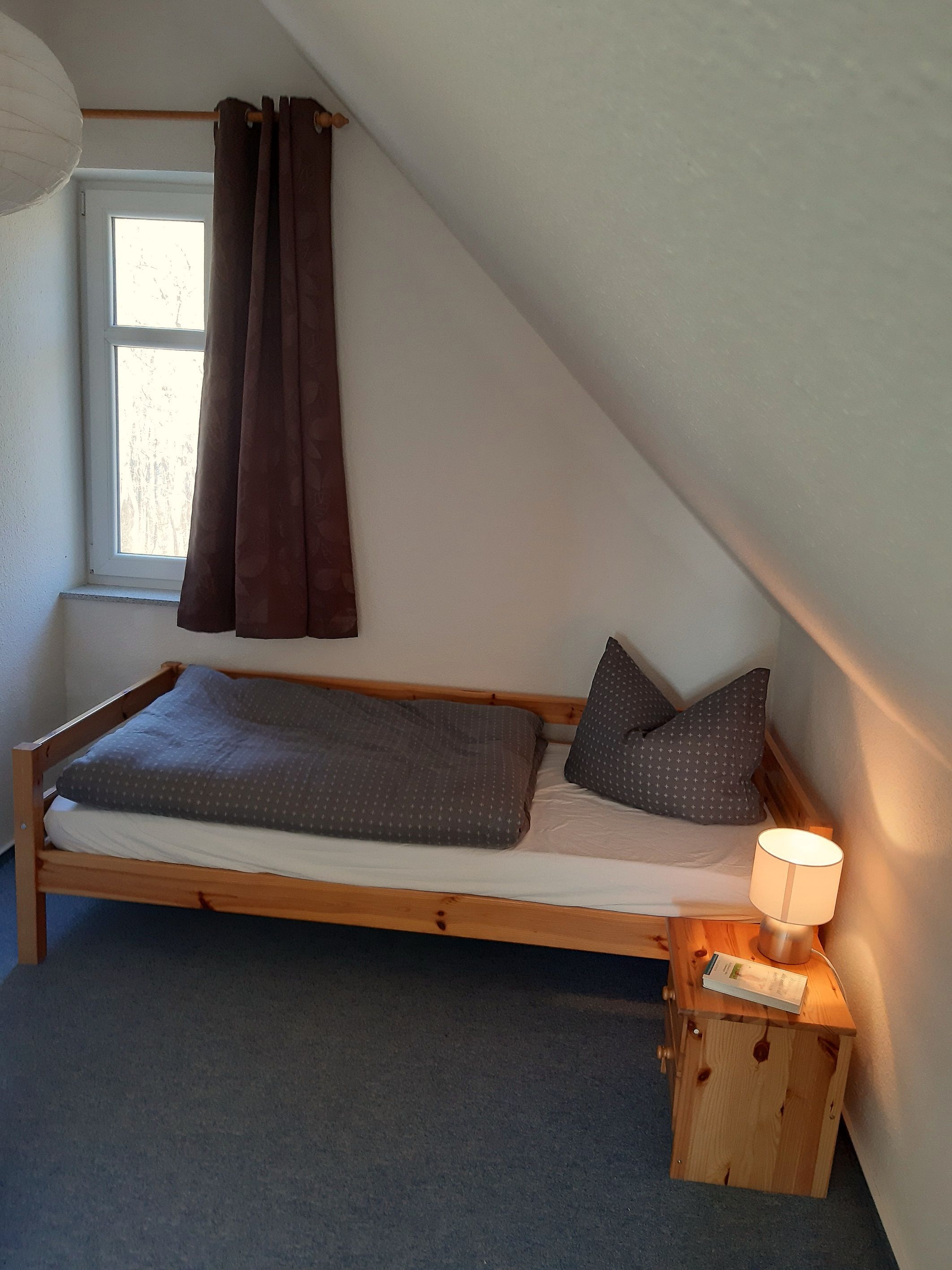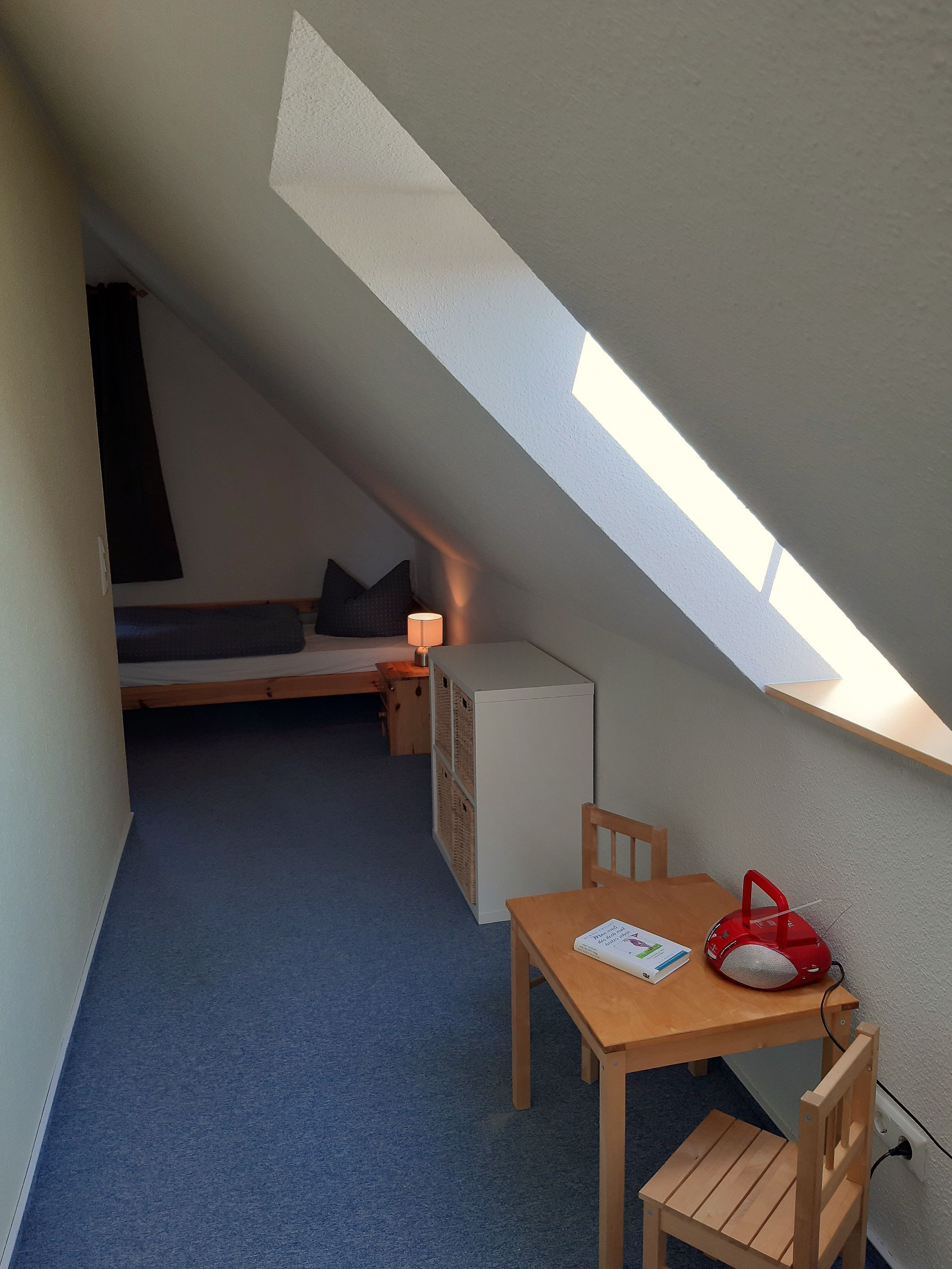Die Ferienwohnung liegt im 2.OG und verfügt neben dem nach Süd-Osten und Nord-Westen ausgerichteten Wohn-Kochbereich mit Balkon und dem Schlafzimmer über einen weiteren abgeschlossenen Schlaf- u. ggf. Spielbereich in der Empore. Die Wohnung verfügt insgesamt über fünf Betten.