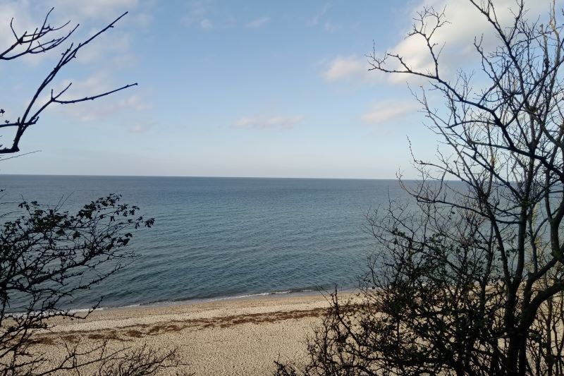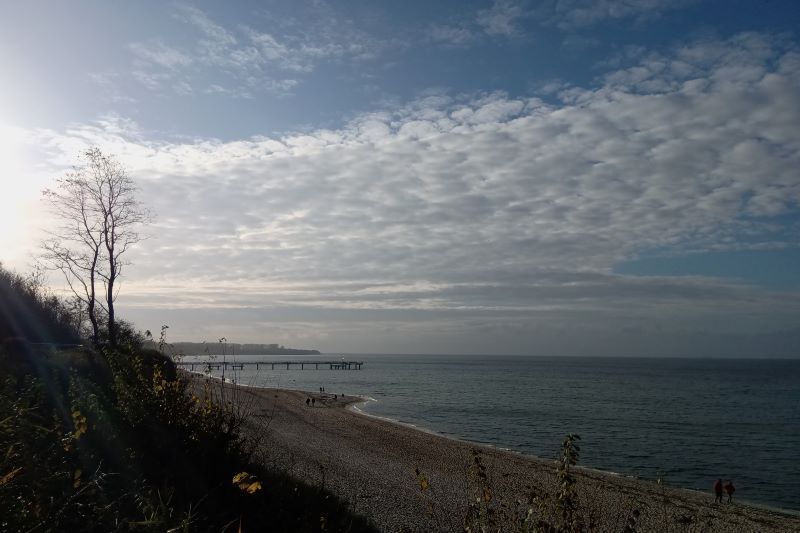 In der kalten Jahreszeit gibt der laubfreie Küstenschutzwald den Blick aus beiden Etagen auf die lebendige Ostsee frei.