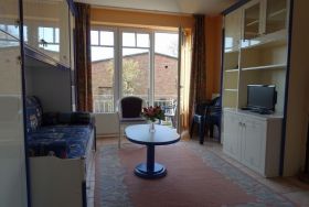 Weiterhin steht Ihnen ein Badezimmer mit Dusche und WC zur Verfügung sowie ein Balkon mit Blick zum Salzhaff.