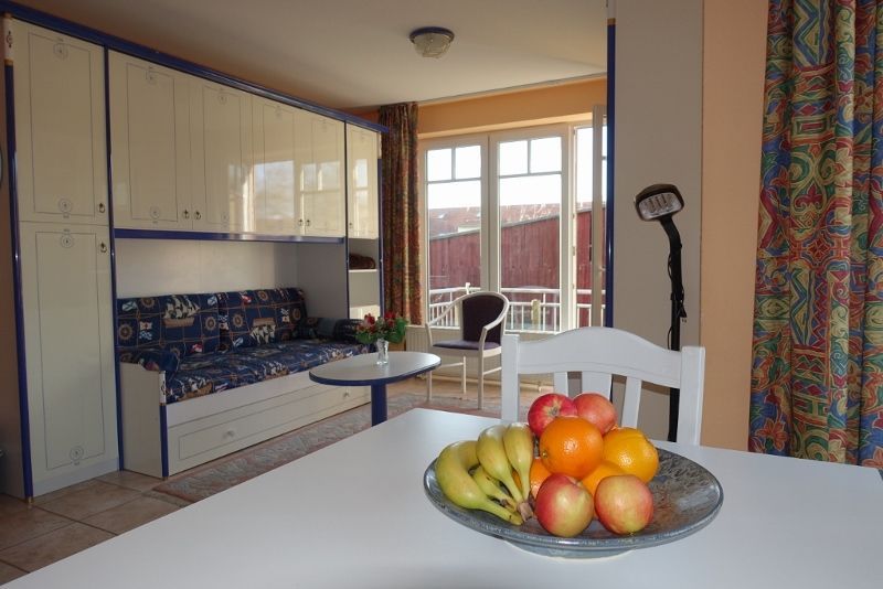 Die Wohnung liegt im ersten Stock, ist maritim eingerichtet und hat einen großen Parkplatz, auf den Sie blicken können.Die Wohnung verfügt über einen separaten Schlafraum mit Doppelbett, die Küchenzeile mit allen notwendigen Kleingeräten ist im Wohnraum integriert.