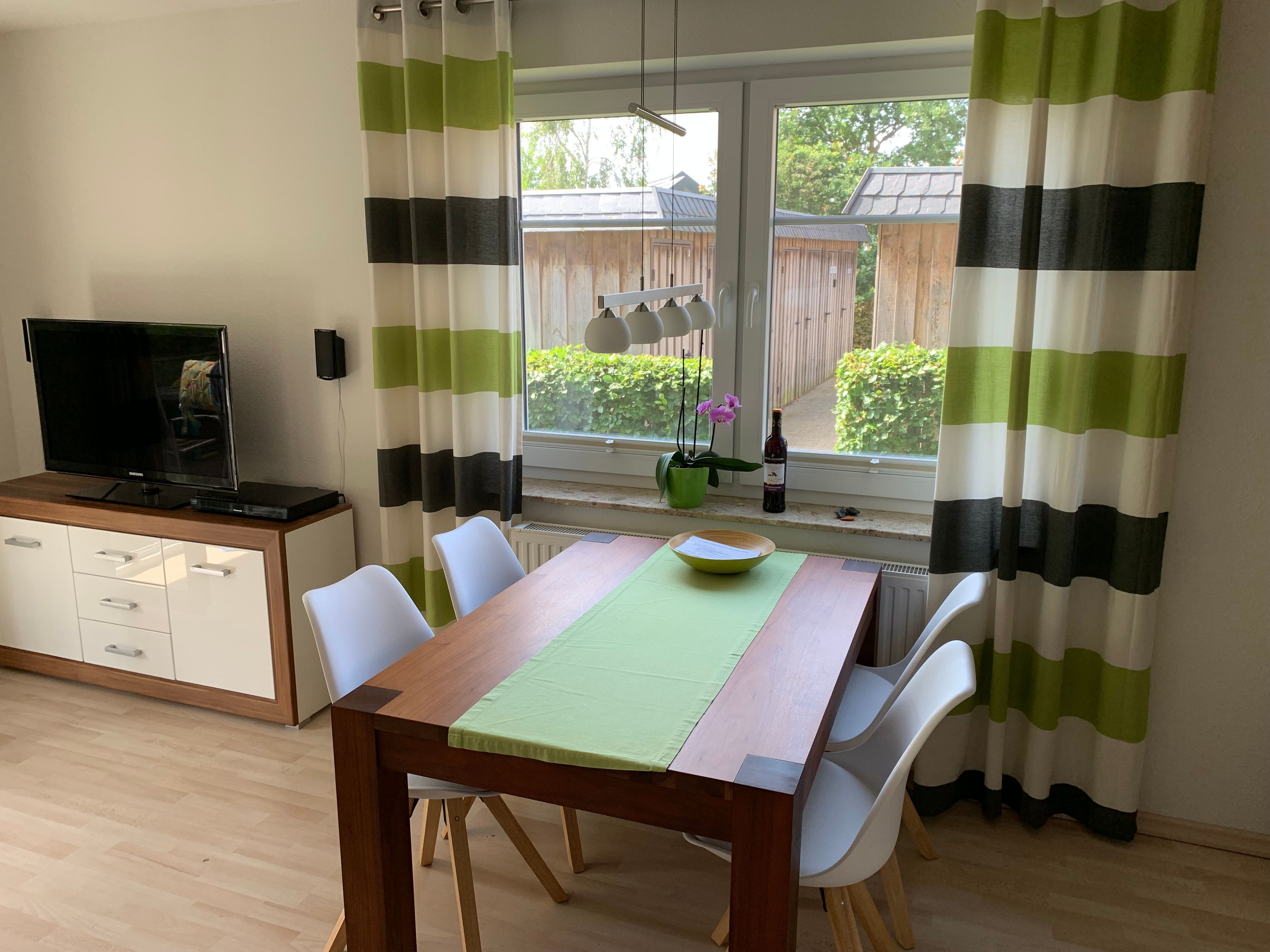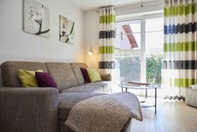 Die Nichtraucherwohnung verfügt über ein sonniges, modernes und komfortables eingerichtetes Wohnzimmer mit SAT-Anlage, 40'' LED-Flachbildschirm, Internet W-LAN, gemütlicher Sitzecke und Zugang zur Terrasse. Die voll ausgestattete Küche lässt keine Wünsche offen.