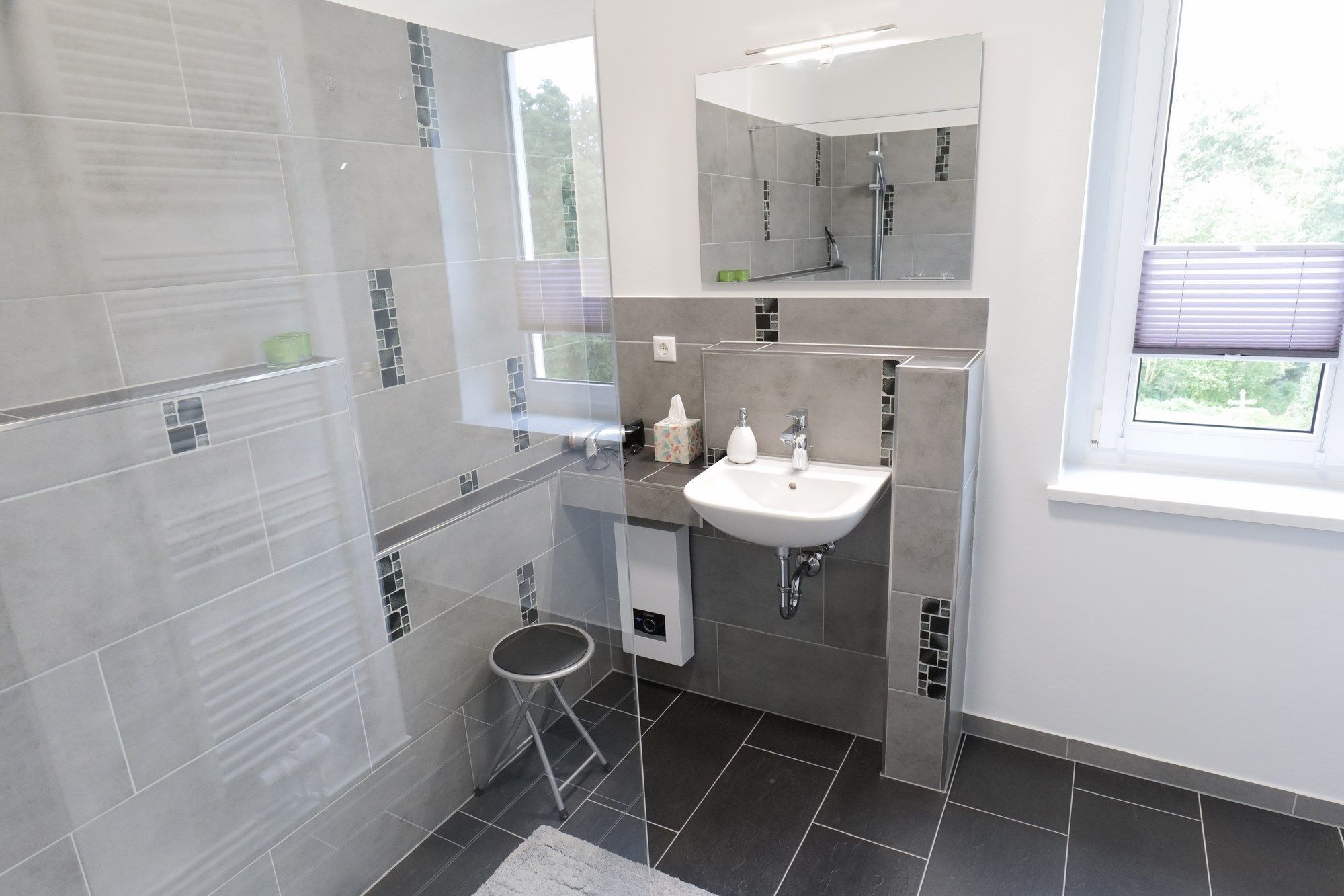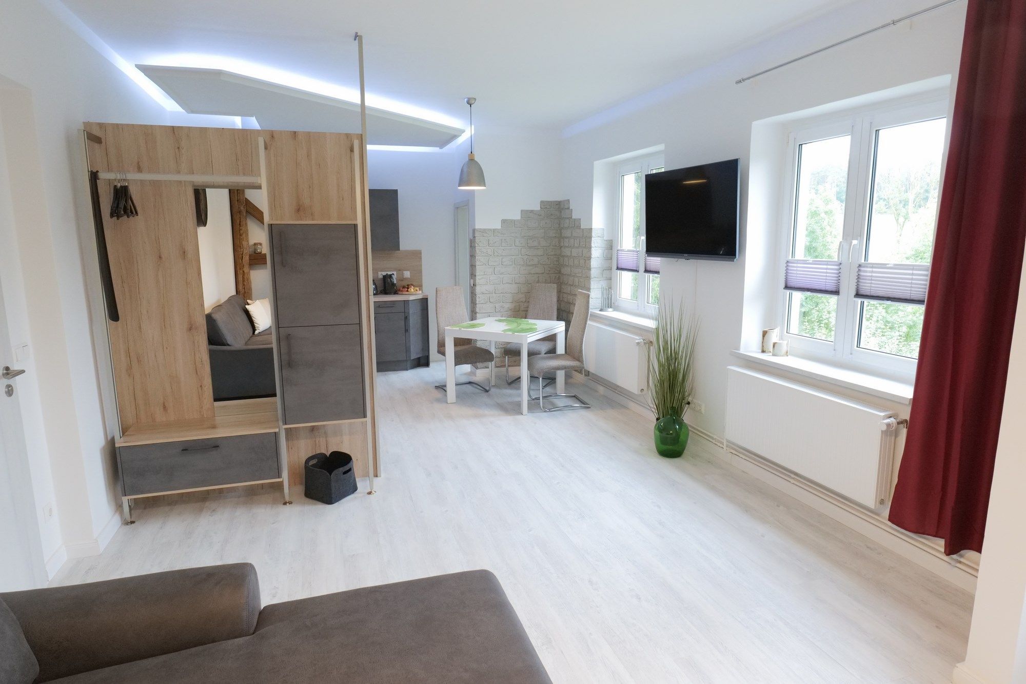 Es werden zwei, in Bezug auf Größe und Ausstattung, gleichwertige Ferienwohnungen angeboten, welche erstmals im Frühjahr 2023 bezugsfertig geworden sind. Jede der Wohnungen ist 51 qm groß, für zwei Personen konzipiert, verfügt über einen allgemeinen Wohnbereich mit Essecke, ein Schlafzimmer, ein Bad mit Dusche und eine moderne, offene Küche.