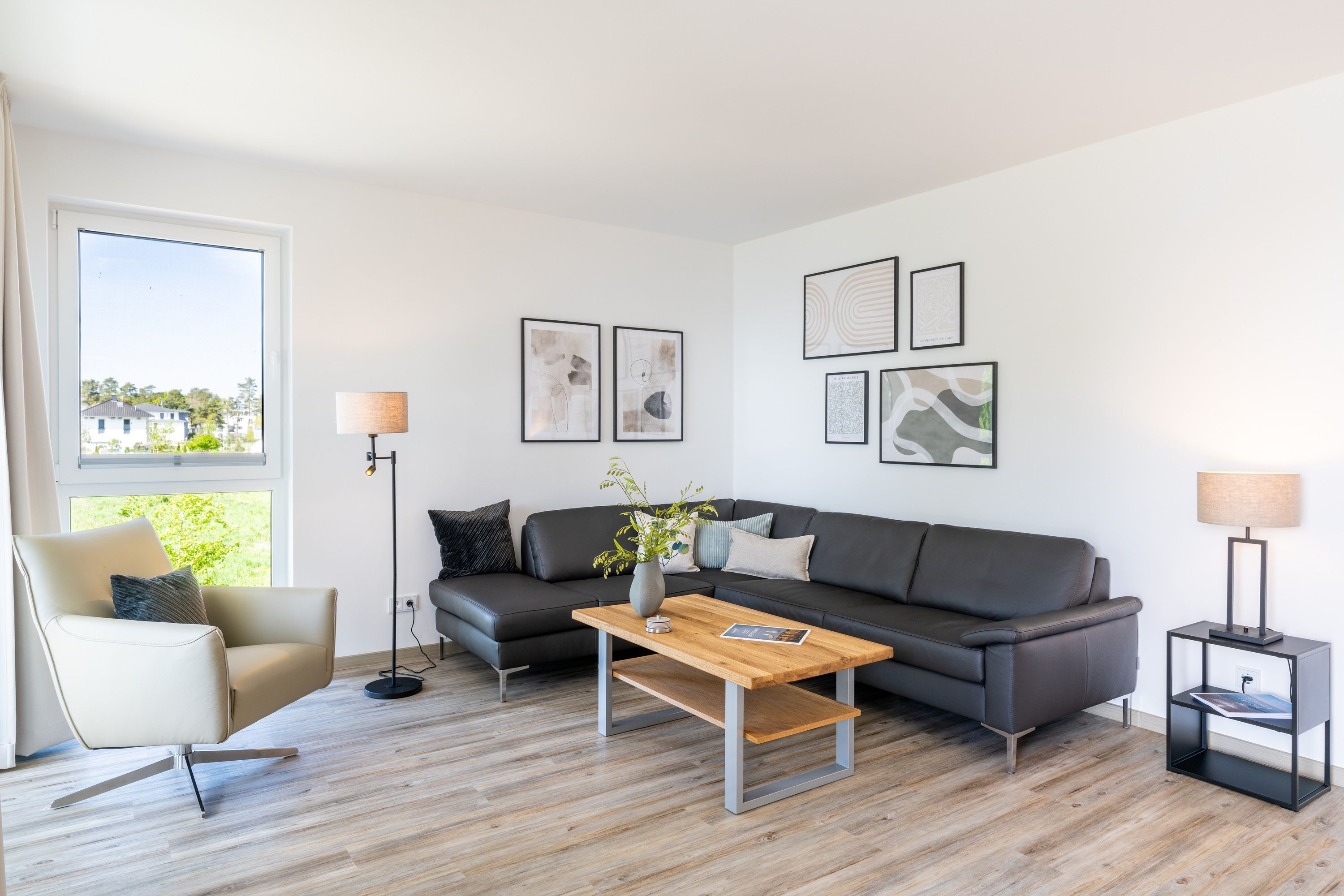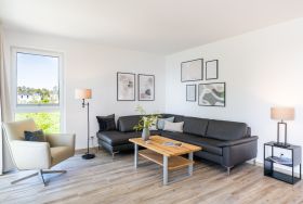 Diese im Jahr 2024 fertiggestellte Ferienwohnung verfügt über eine Wohnfläche von 115 m² und befindet sich im Haus 8, das etwa 400 Meter von den anderen „Oase am Haff“-Häusern entfernt auf einem separaten Grundstück in gleicher Südlage liegt.
