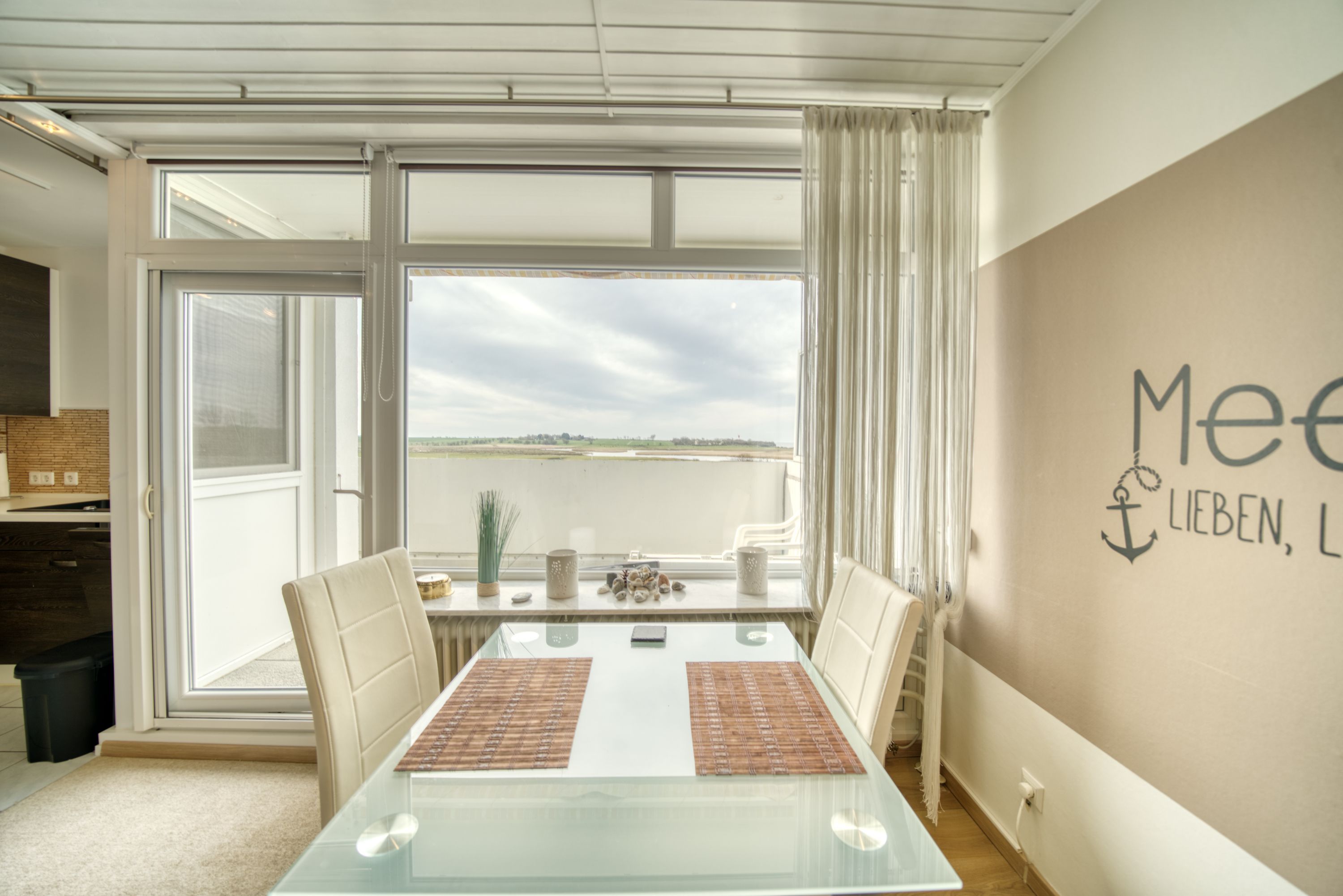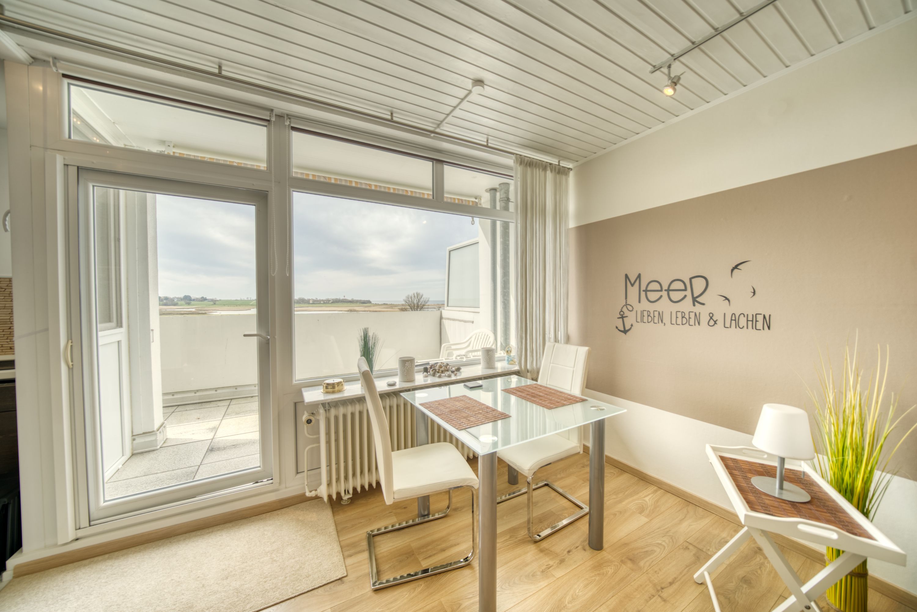 Heller Essplatz im Wohnbereich mit Balkonzugang