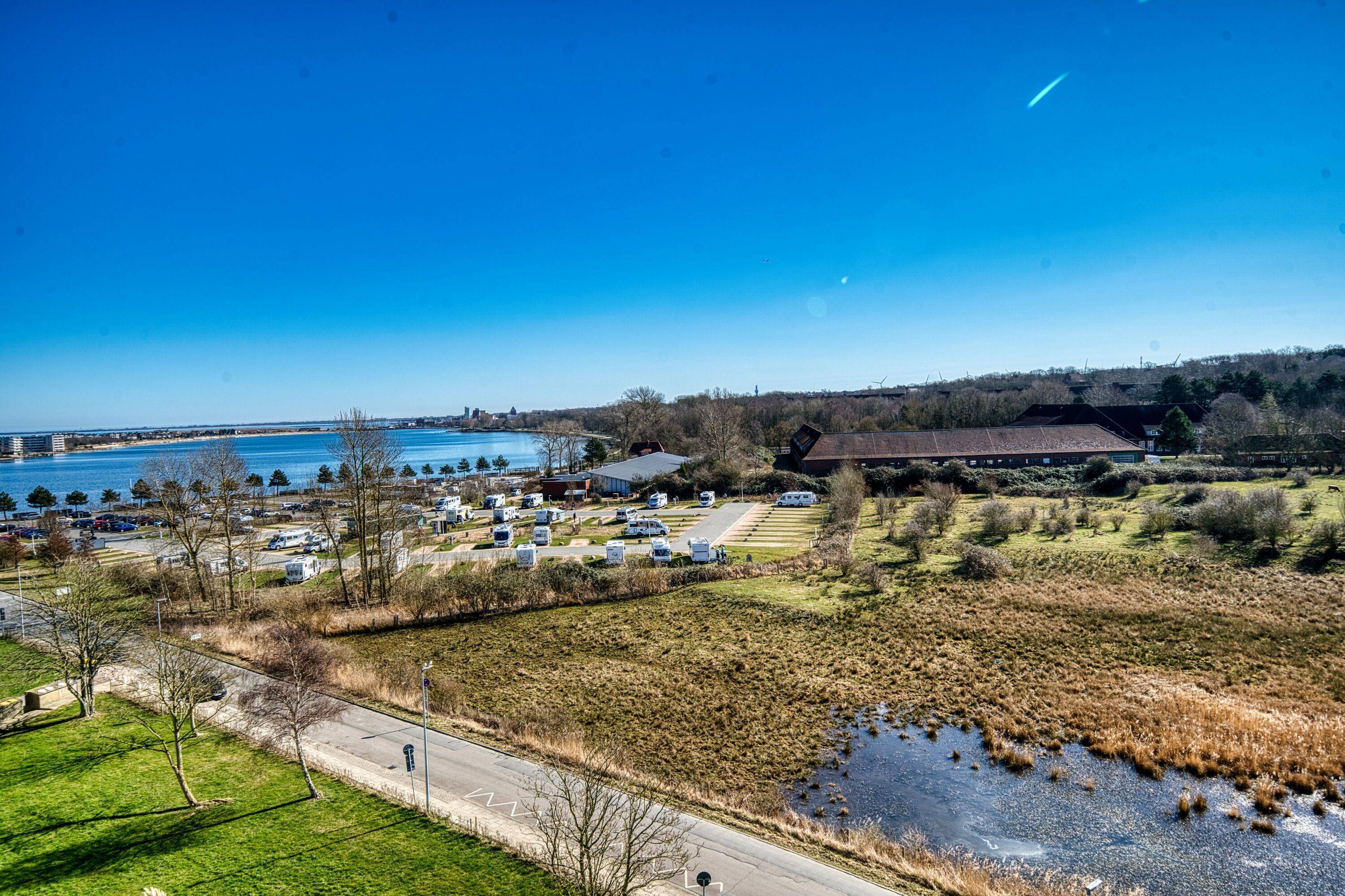 Sie können beim gemütlichen Frühstück über den Binnensee bis zur Fehmarn Sundbrücke schauen.