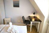 - Schlafzimmer mit einem Boxspringbett (180 x 200 cm), Kleiderschrank und Arbeitsplatz mit LAN-Dose