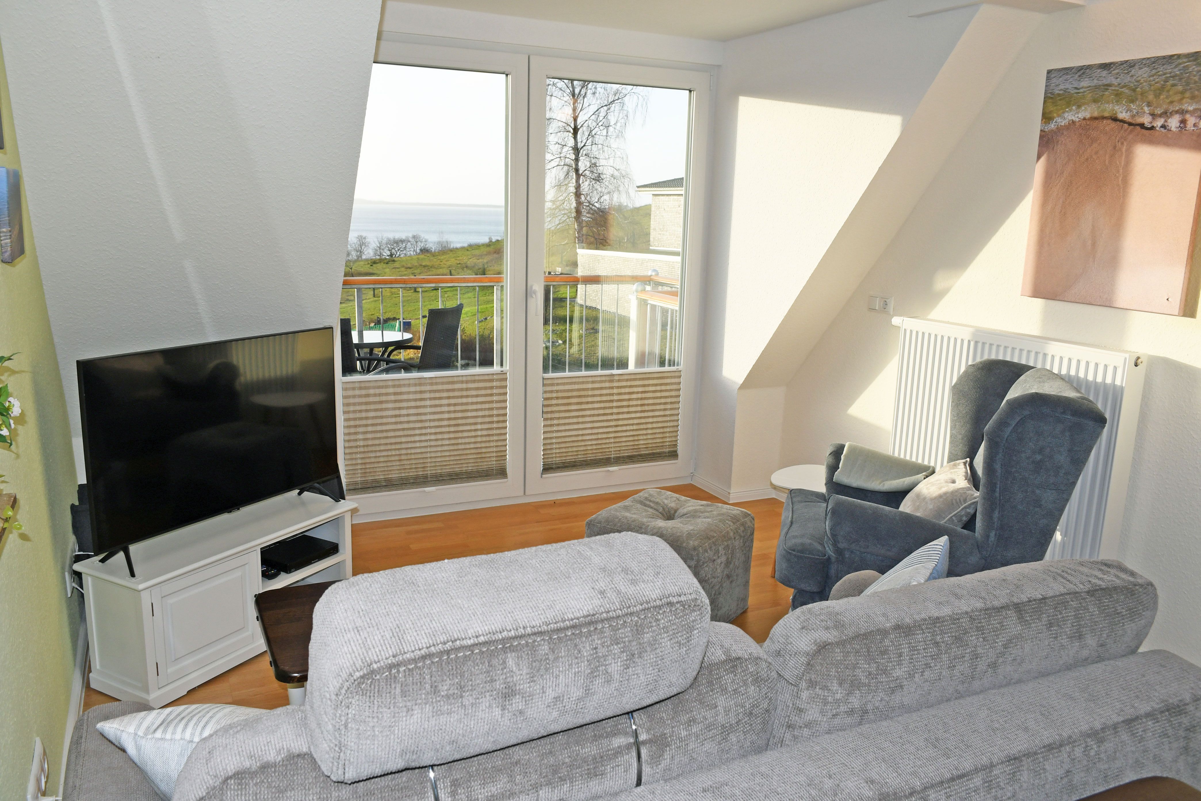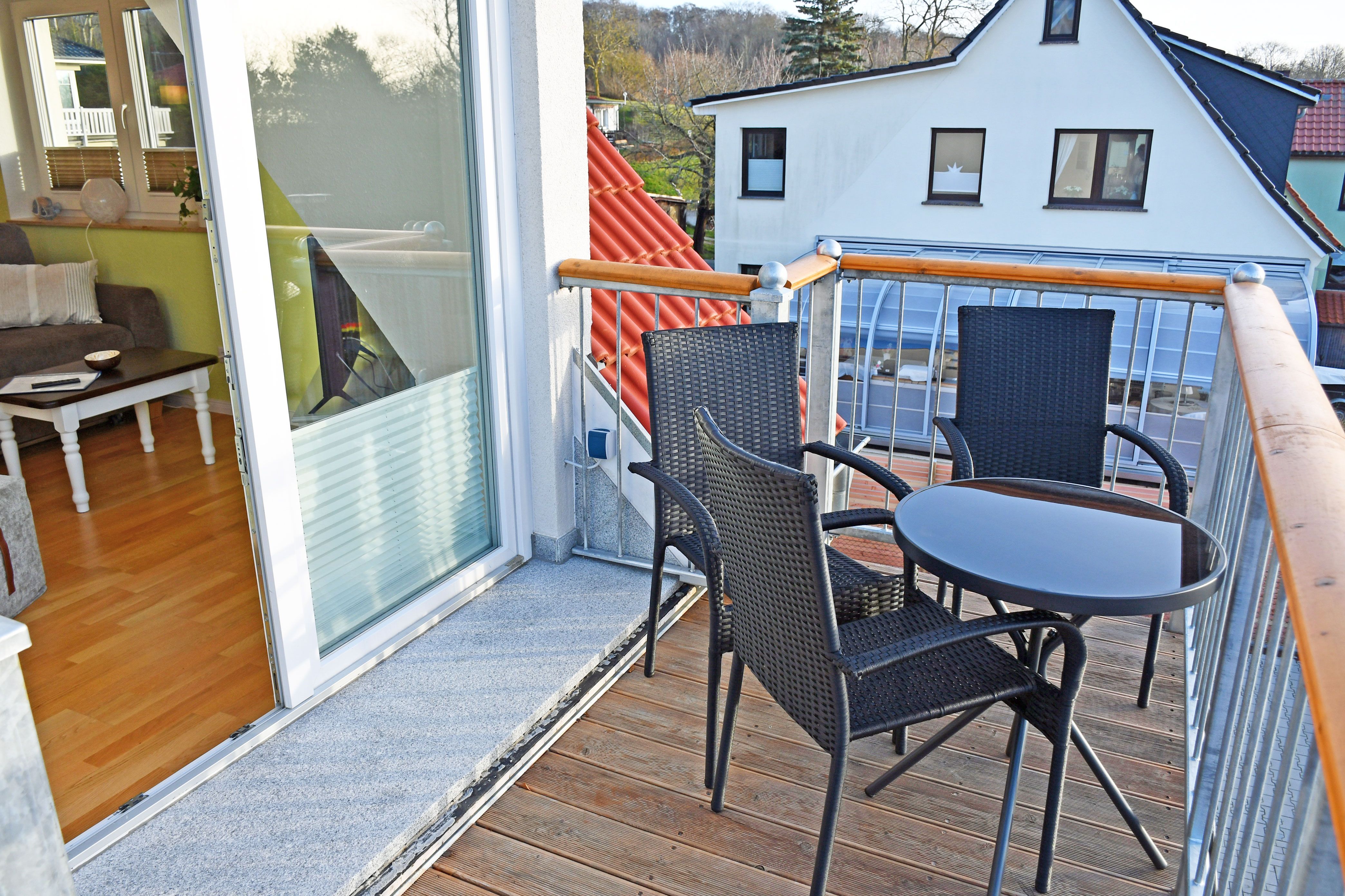 Der schöne Balkon mit Gartenmöbeln lädt zu gemütlichen Stunden ein. Hier können Sie die Abende bei einem Glas Wein ausklingen lassen und jederzeit die gute Ostseeluft und Sonne auf Rügen genießen.