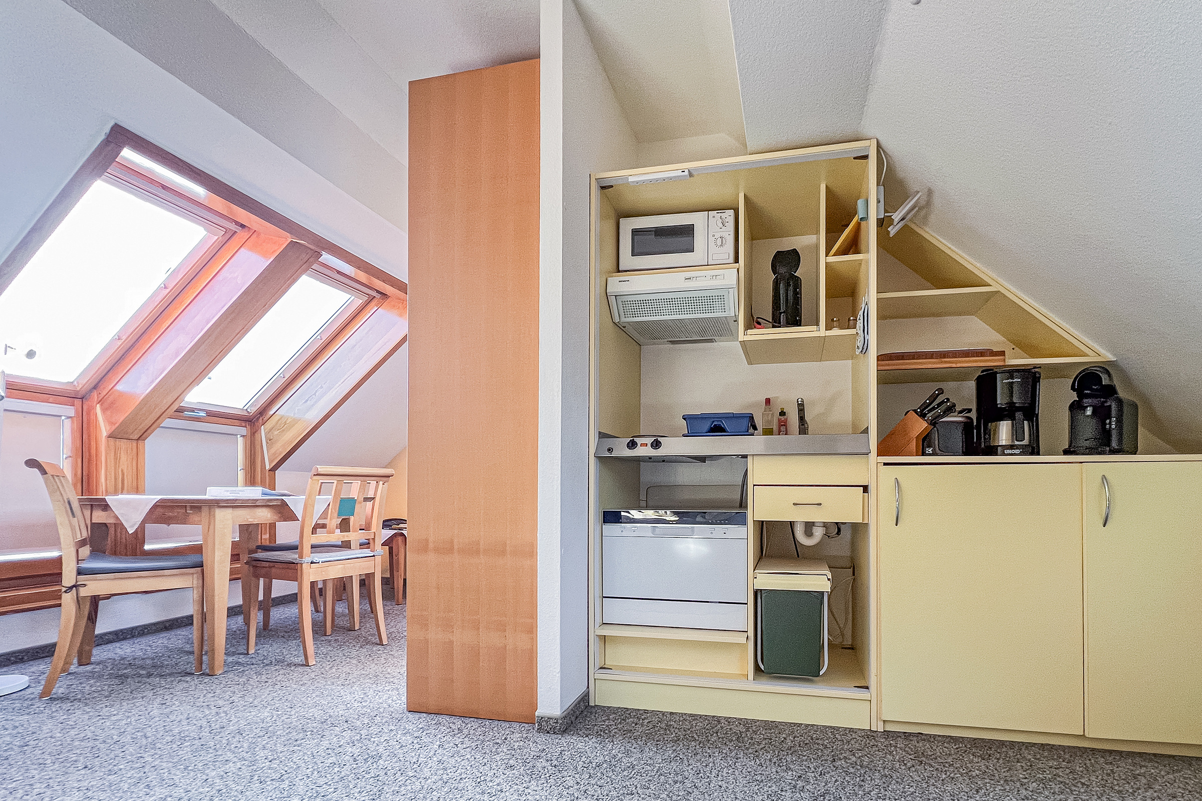 Lassen Sie sich in Ihrer kleinen, gut ausgestatteten Ferienwohnung verzaubern. Mit Dachterrasse und Französischem Balkon können Sie Ihr perfektes Urlaubswetter in vollen Zügen genießen.