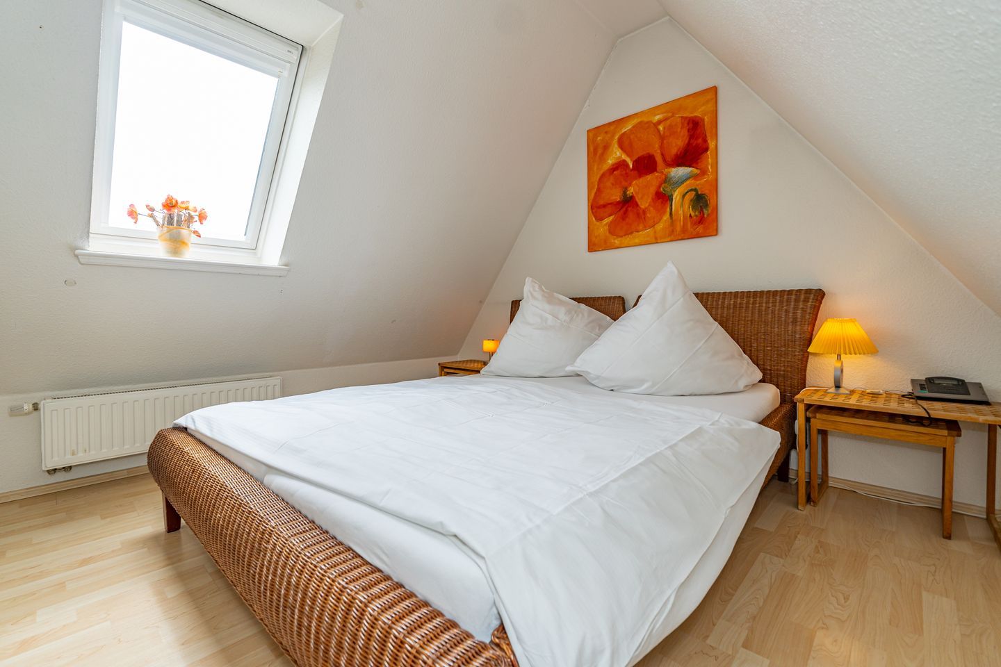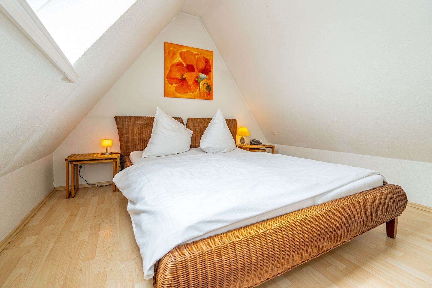 Im Erdgeschoss befindet sich eine gemütliche Sitzecke mit zwei Sesseln, einer bequemen Couch und einem großen Fernseher. Von dort aus erreichen Sie die Terrasse, umgeben von einem traditionellen Friesenwall mit seinen Sylter Rosen, mit komfortablen Sitzmöbeln und selbstverständlich fehlt auch der typische Sylter Strandkorb nicht (saisonal). Eine voll ausgestattete, offene Küchenzeile mit 4 Platten Ceranfeld, Backofen, Spülmaschine, Toaster, Wasserkocher, Kaffeemaschine, Mikrowelle und Dolce Gusto- Kaffeekapselmaschine, sowie eine Essecke, befindet sich ebenfalls in dem offen gestalteten Wohnbereich. Ein Gäste WC befindet sich im Eingangsbereich des Hauses. Im ersten Obergeschoss finden Sie ein helles, großzügiges Schlafzimmer mit Doppelbett, TV, Kleiderschrank und einem Zugang zu Ihrem Balkon. Neben dem Schlafzimmer liegt das großzügige Badezimmer mit Dusche und Badewanne. Das zweite Schlafzimmer liegt im Dachgeschoss und ist im offene Galeriestil ohne Zimmertür. Außerdem stehen Ihnen in der Unterkunft ein Radio, ein CD-Player und ein Blue-Ray-Player zur Verfügung. Der kostenlose Internetzugang mit WLAN ist ebenso wie ein Parkplatz vorhanden.