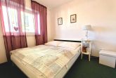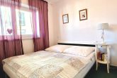 Das separate Schlafzimmer ist mit einem gemütlichen Doppelbett ausgestattet. Zusätzlich stehen ein Doppelstockbett für zwei weitere Personen zur Verfügung – ideal für Kinder oder Freunde.