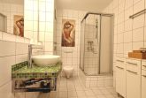 Das Badezimmer bietet eine Dusche, WC sowie praktische Ablagemöglichkeiten für Ihre persönlichen Utensilien.